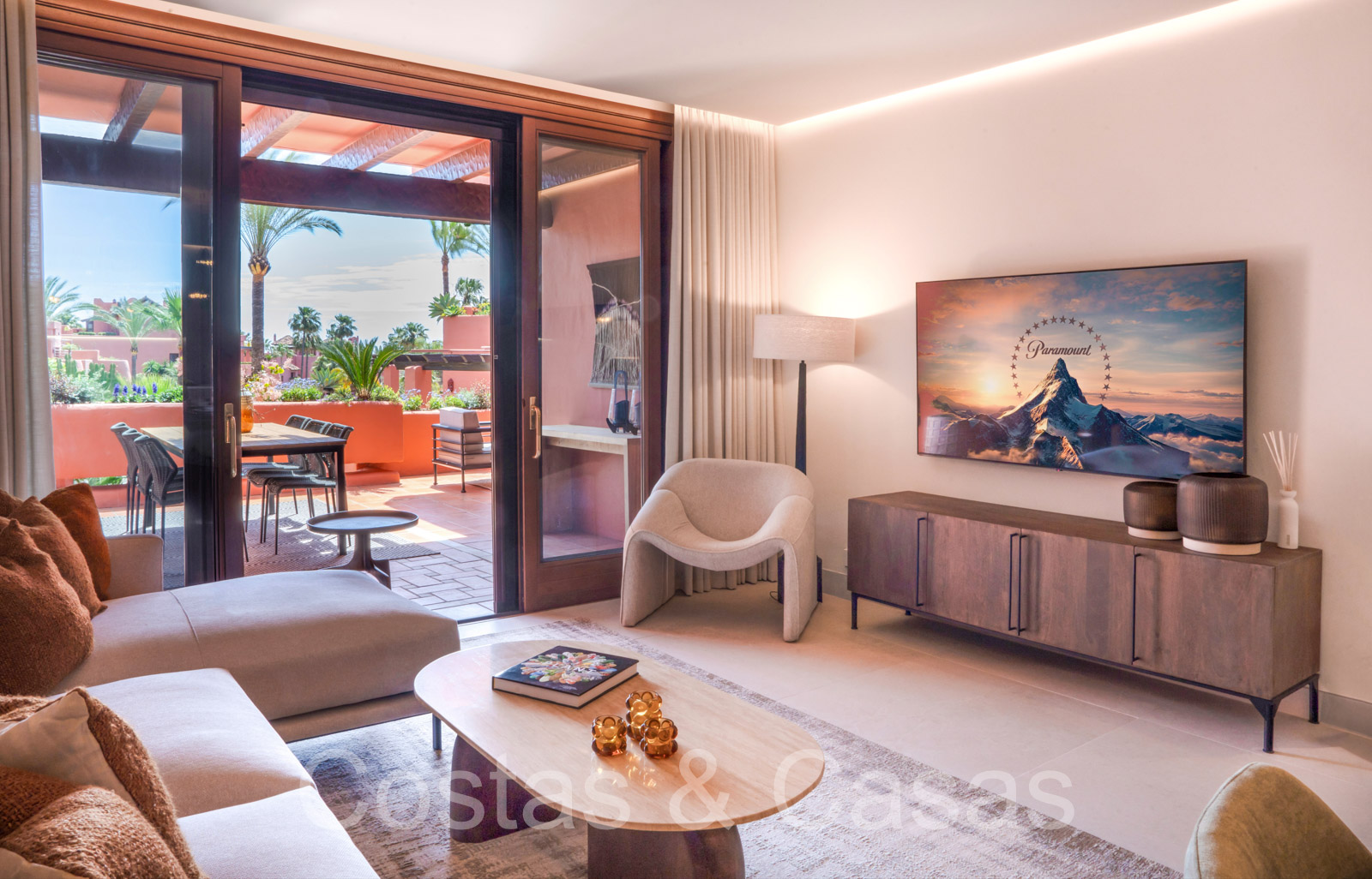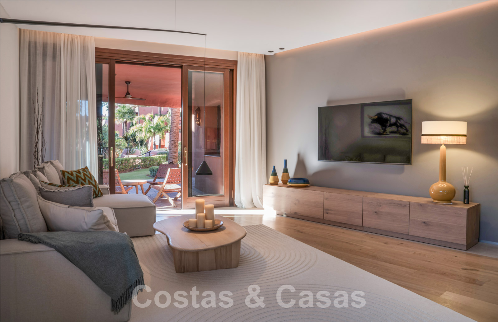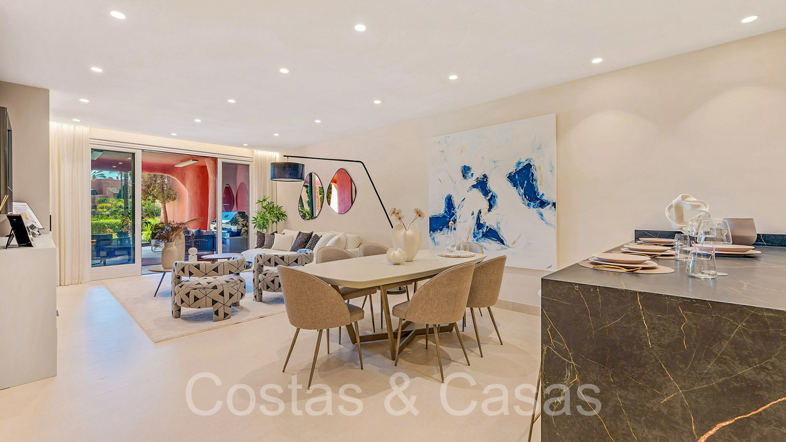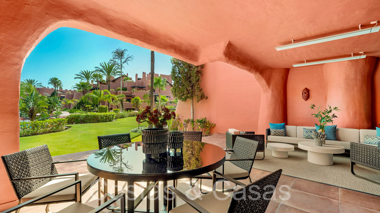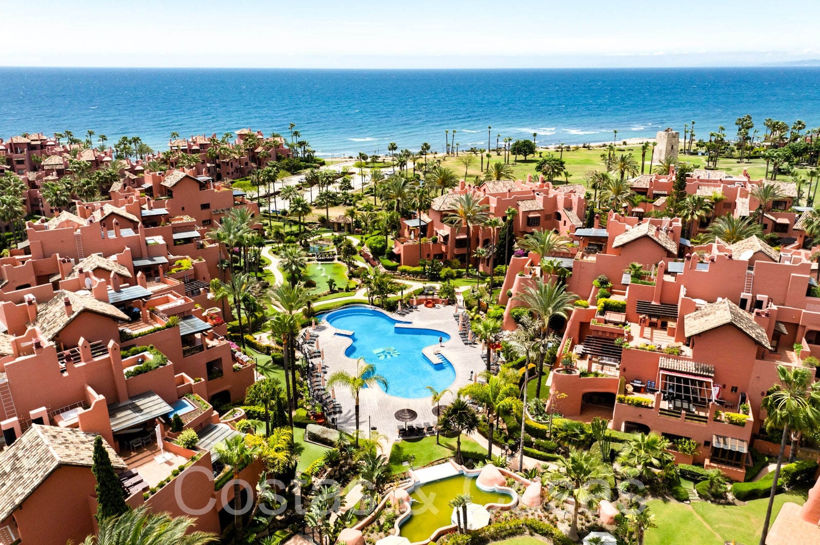 Vistas a los jardines subtropicales y, en las propiedades de gama más alta, al mar y a la sierra Bermeja.