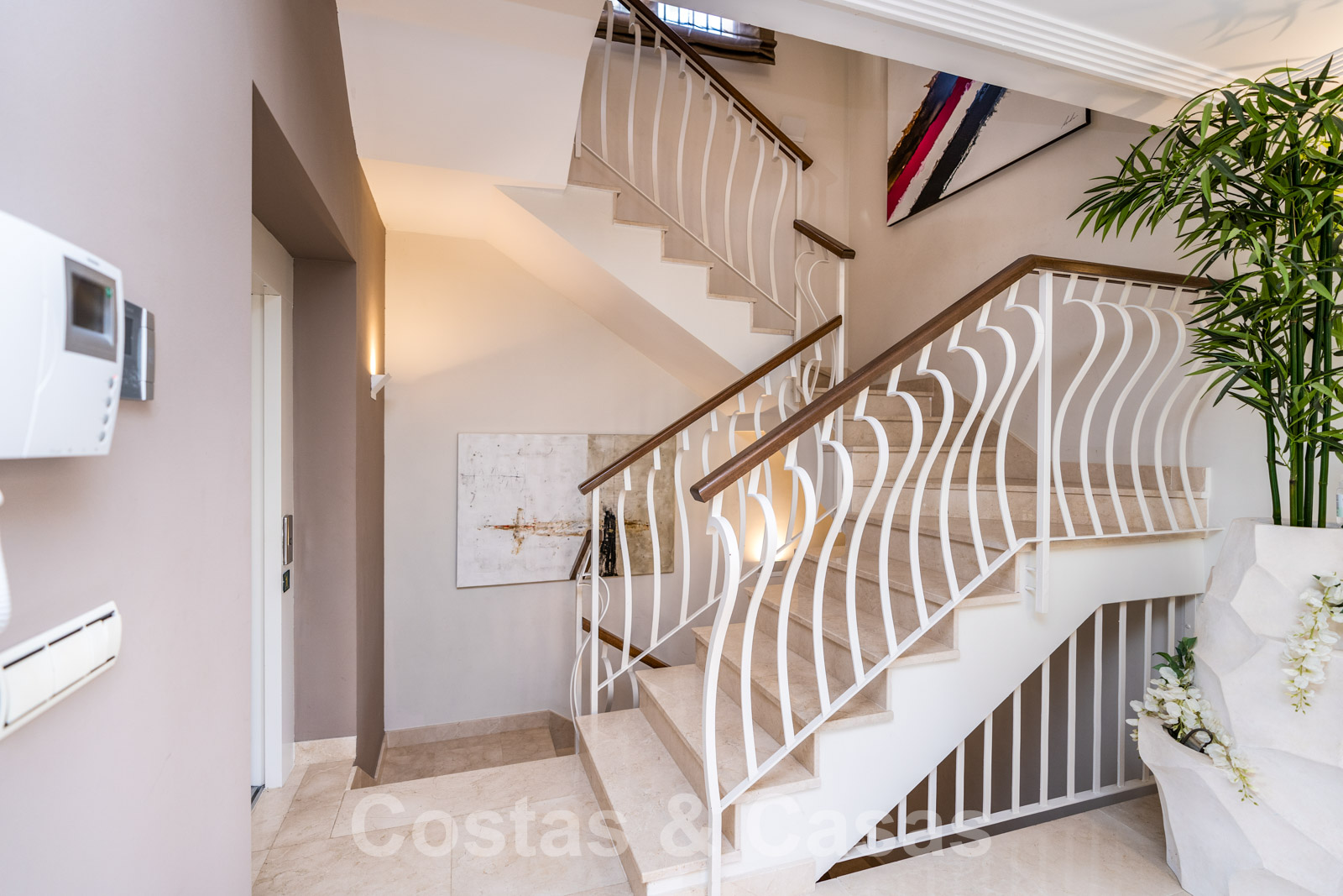 Ascensor a todas las plantas. Aire acondicionado para refrigeración y calefacción. Suelo radiante en los baños. Chimenea. Suelo de mármol crema. Armarios empotrados.