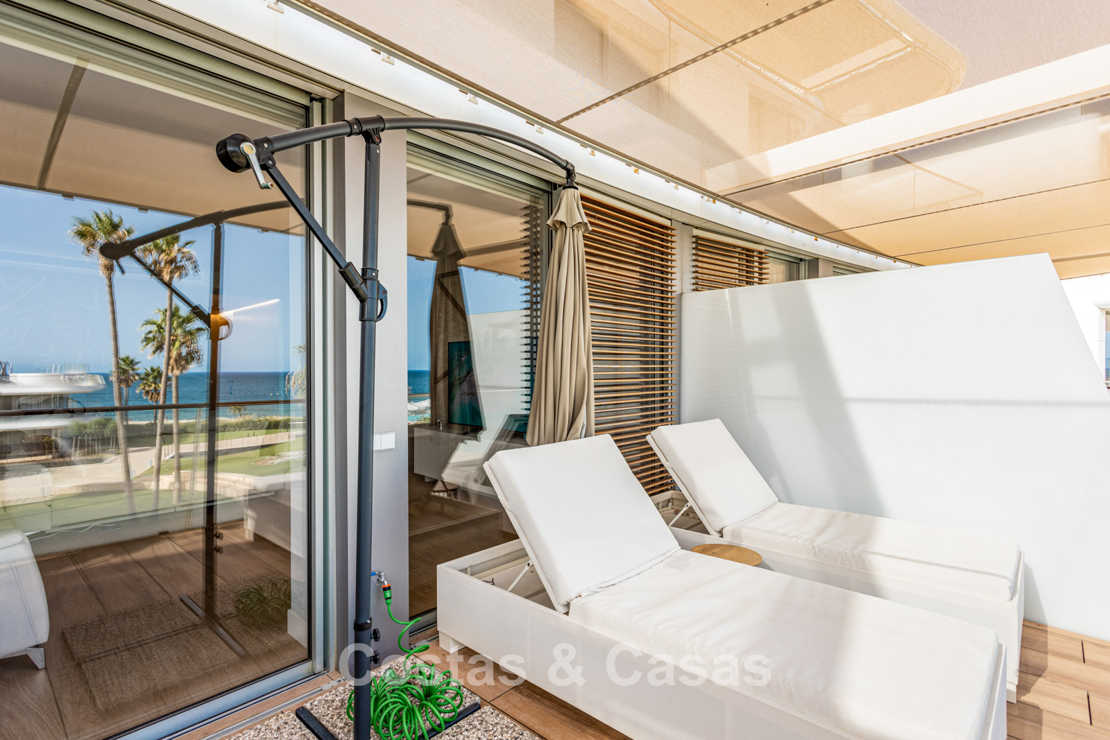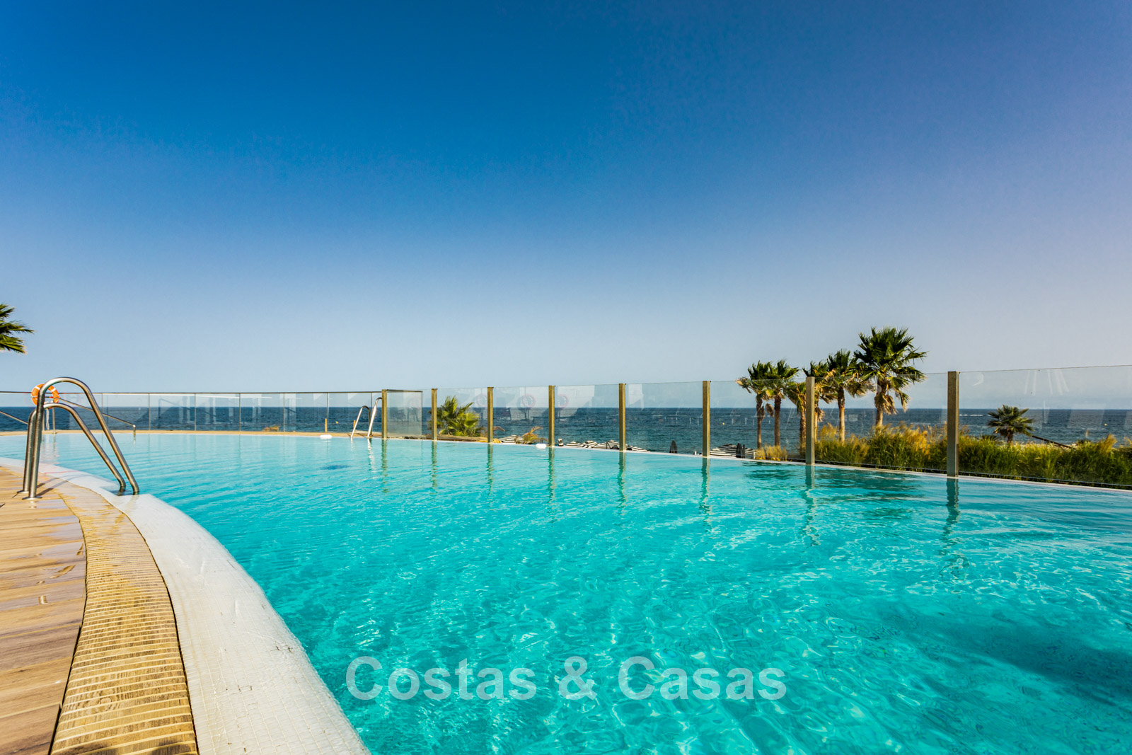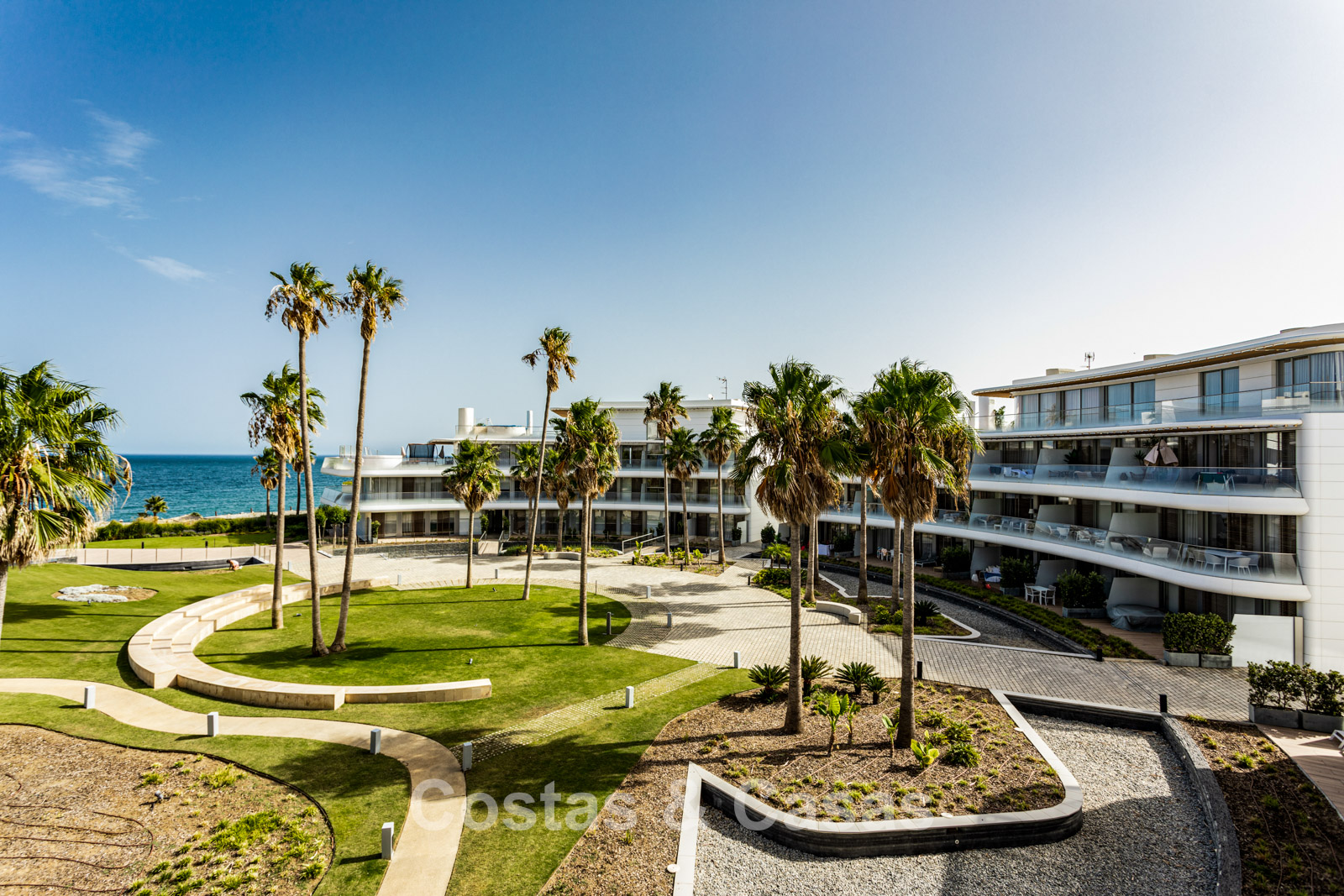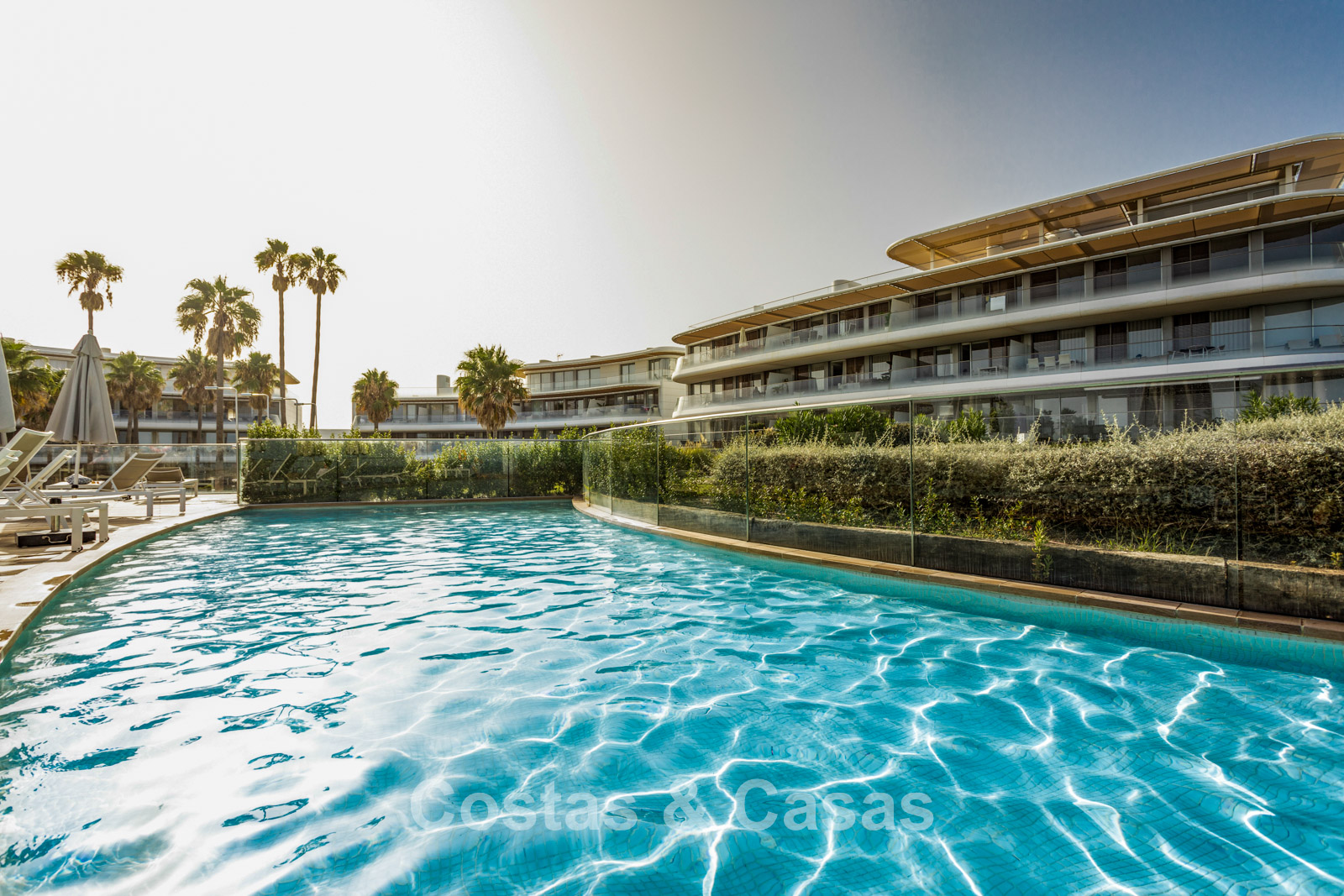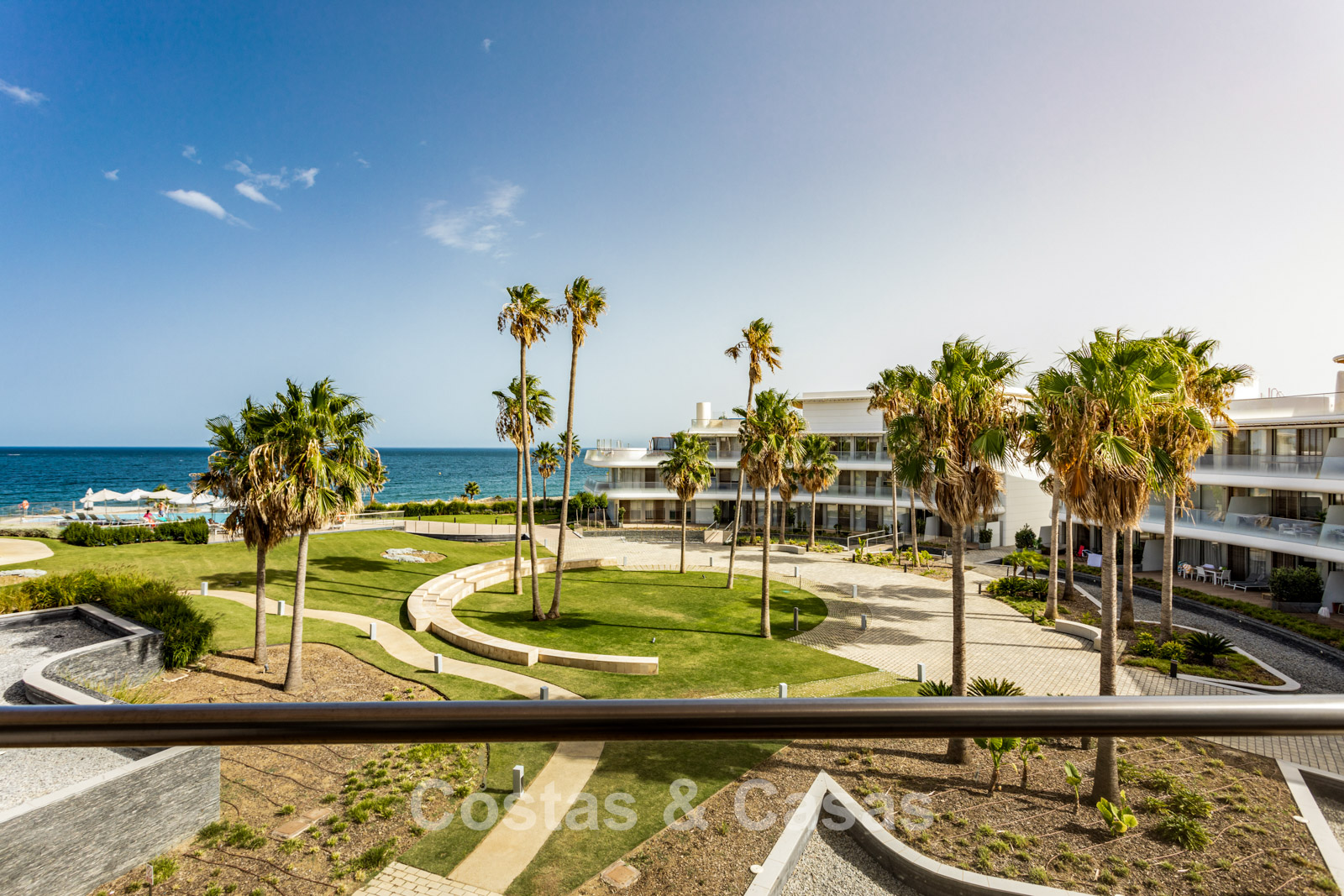Moderno apartamento listo para entrar a vivir en venta en un complejo en primera línea de playa en Estepona, Costa del Sol