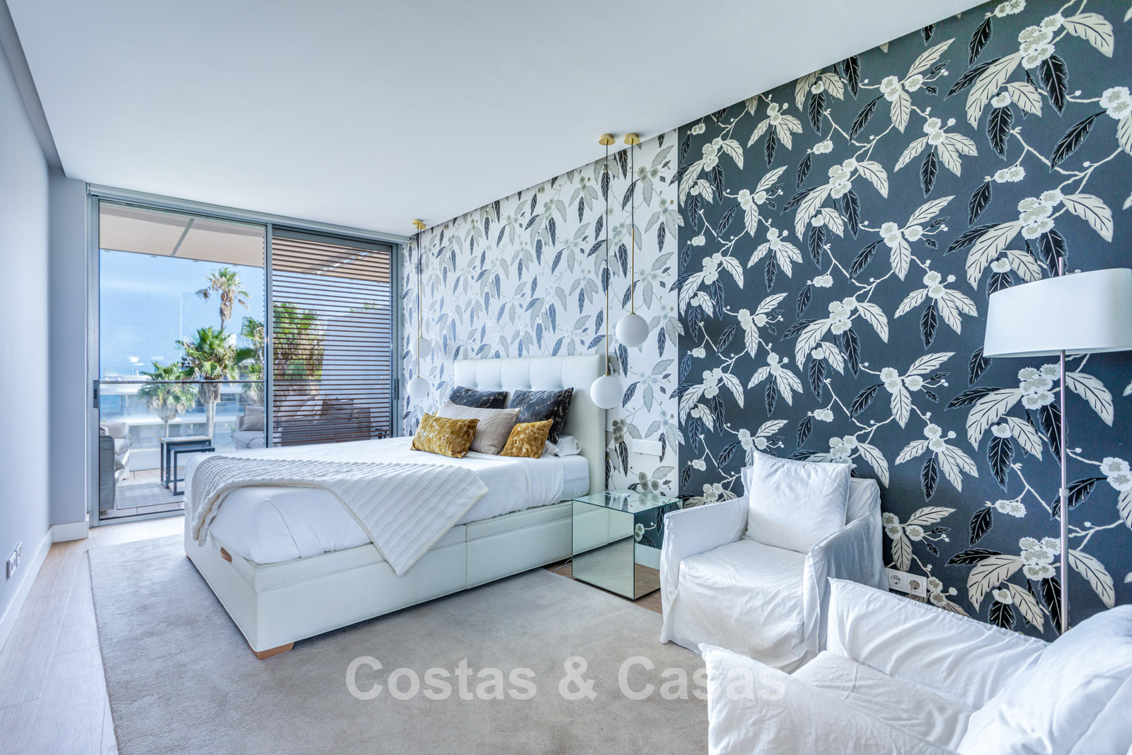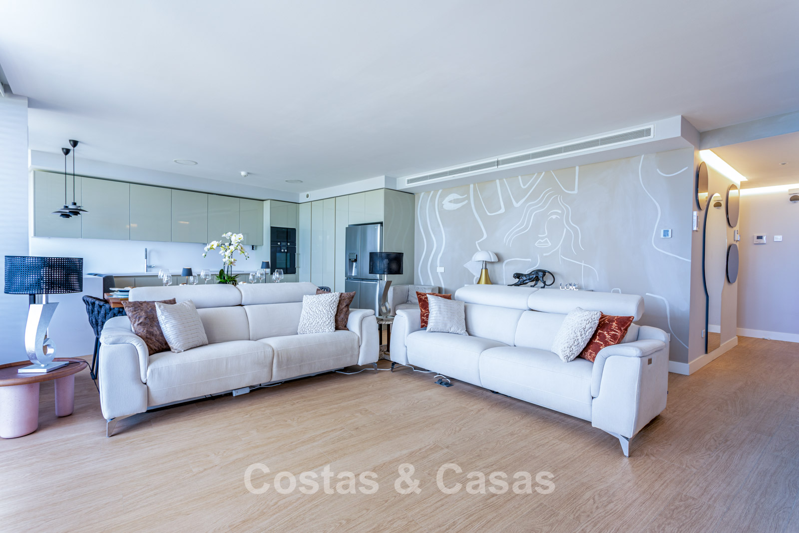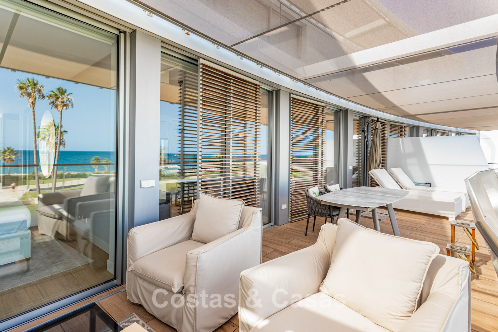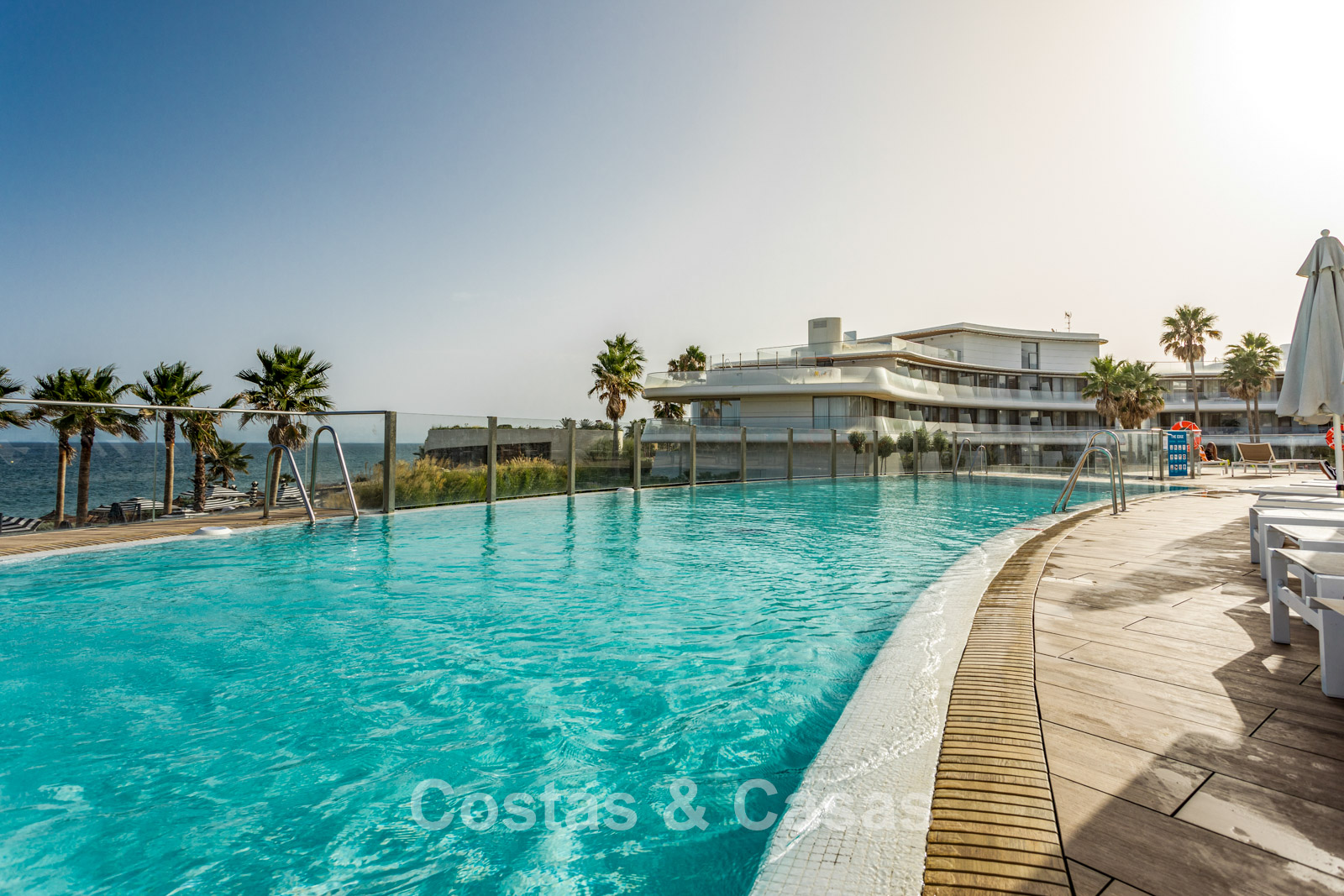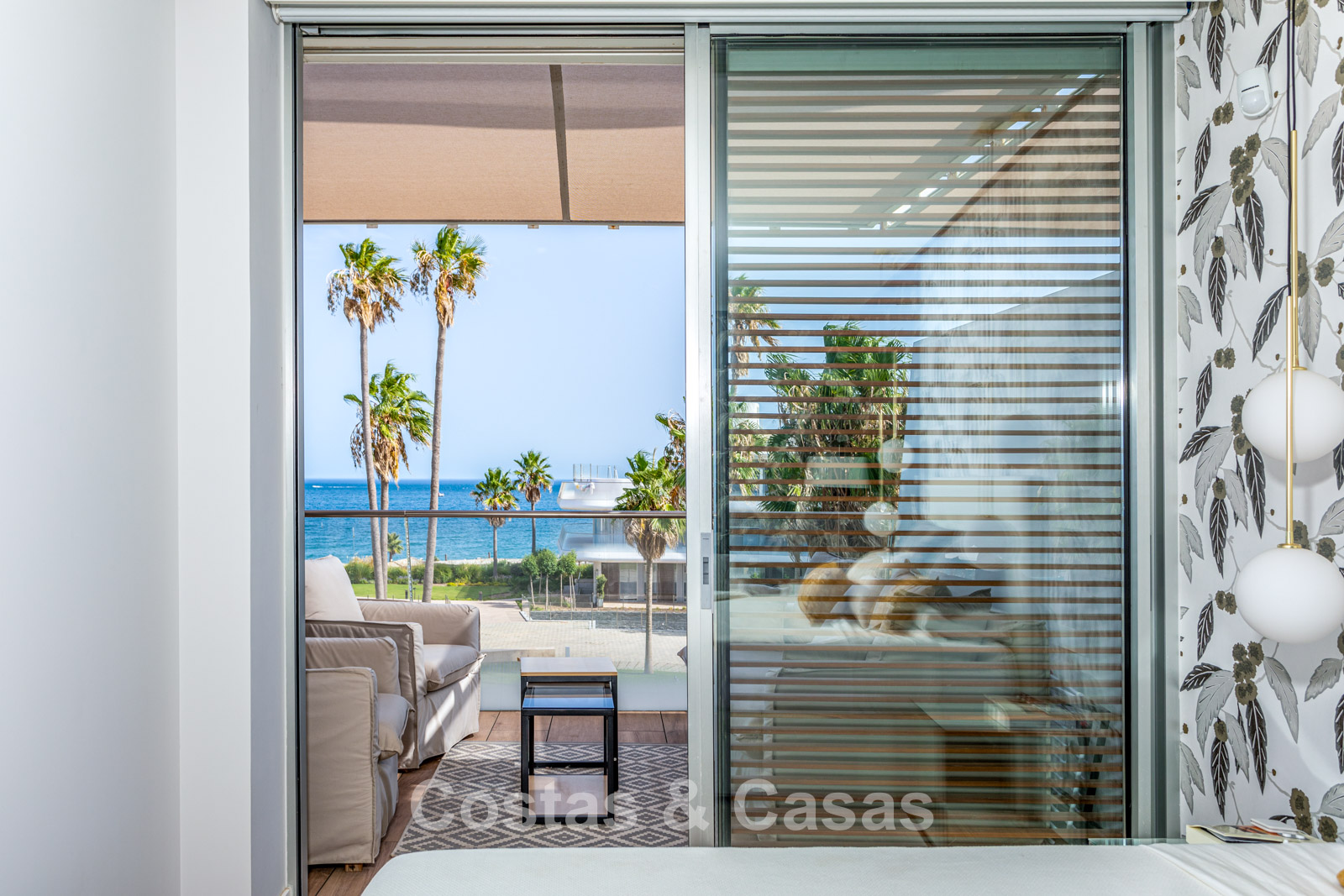 Moderno apartamento listo para entrar a vivir en venta en un complejo en primera línea de playa en Estepona, Costa del Sol