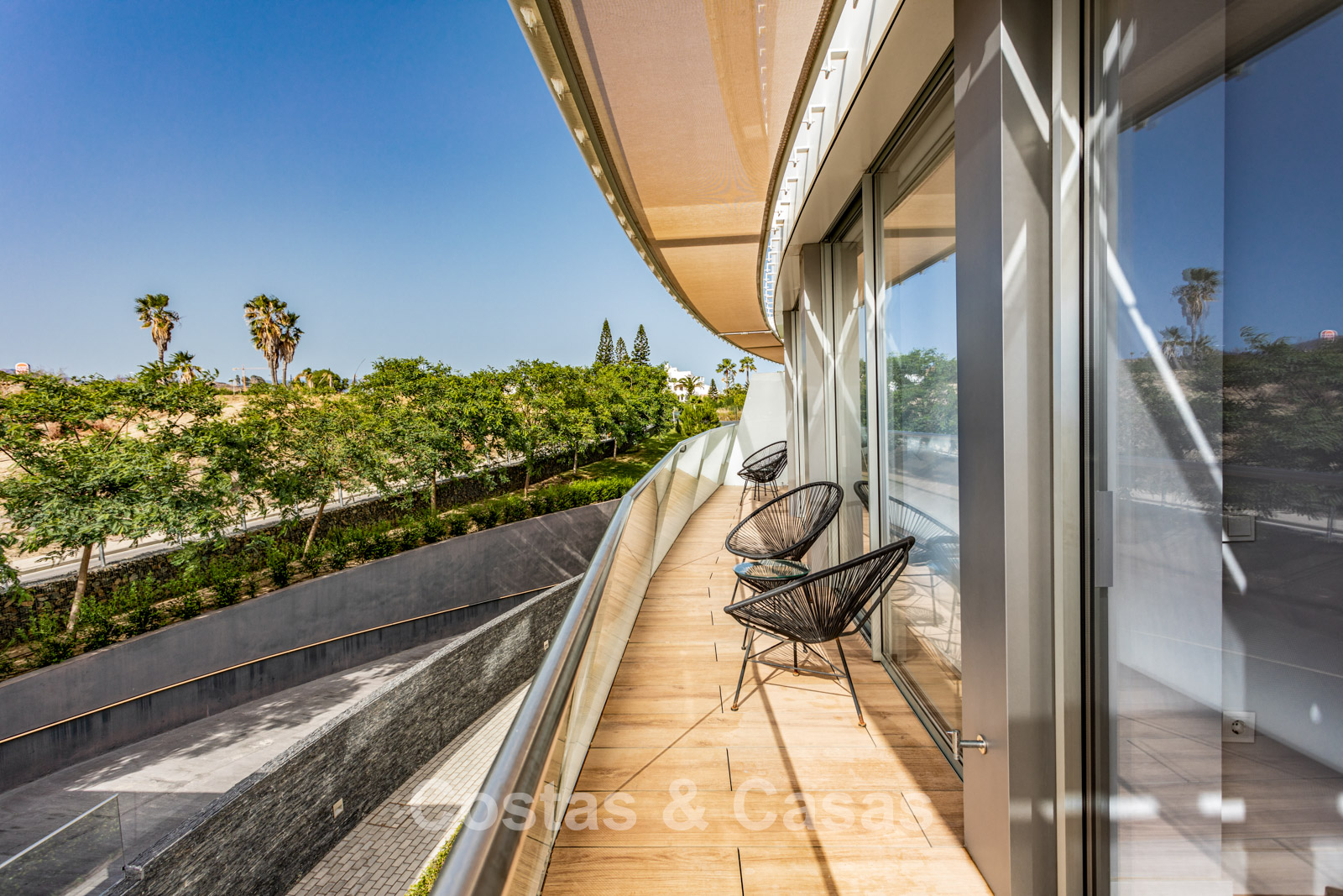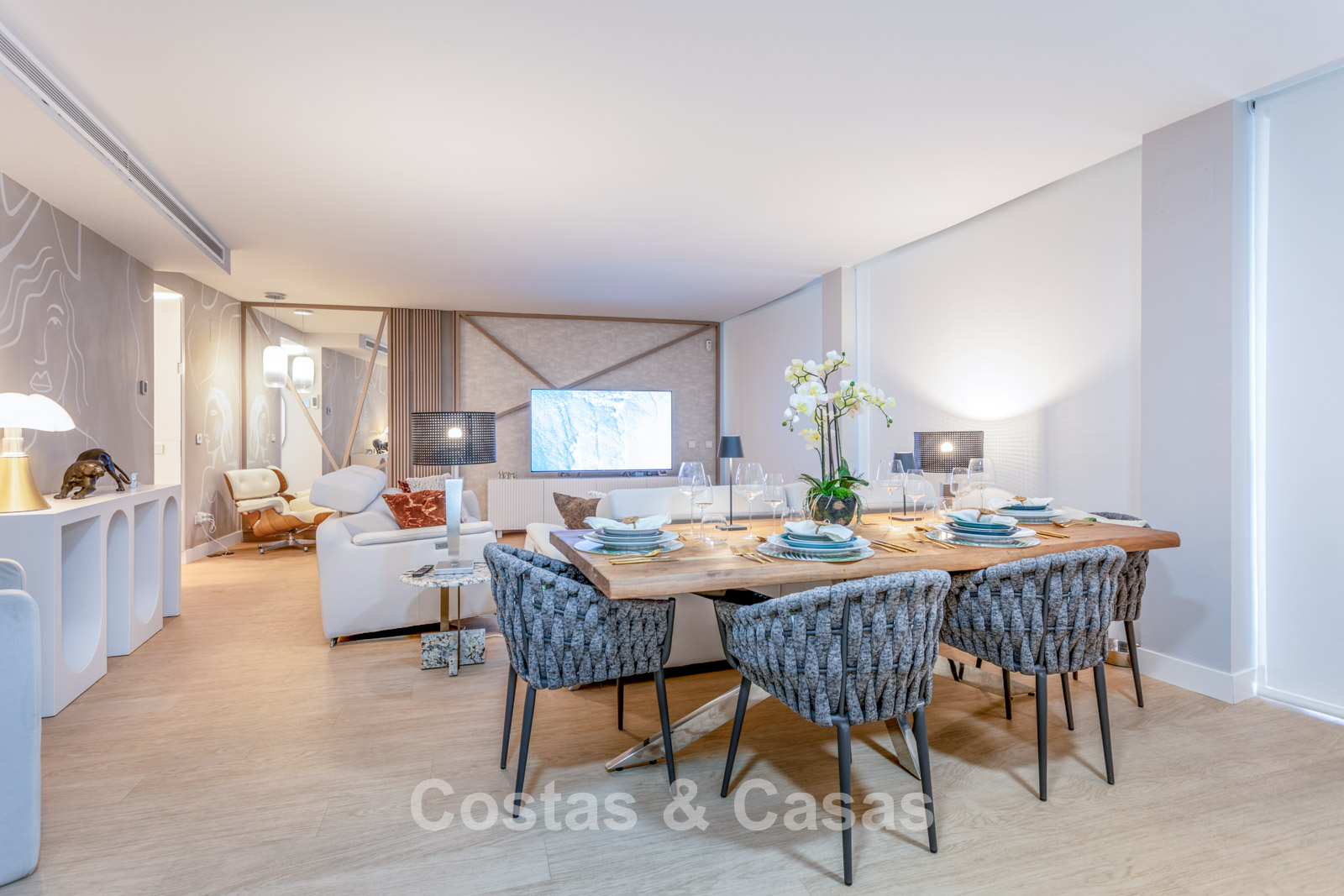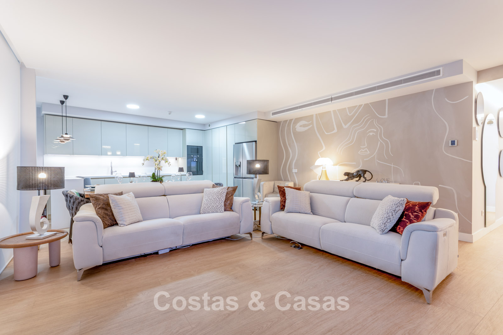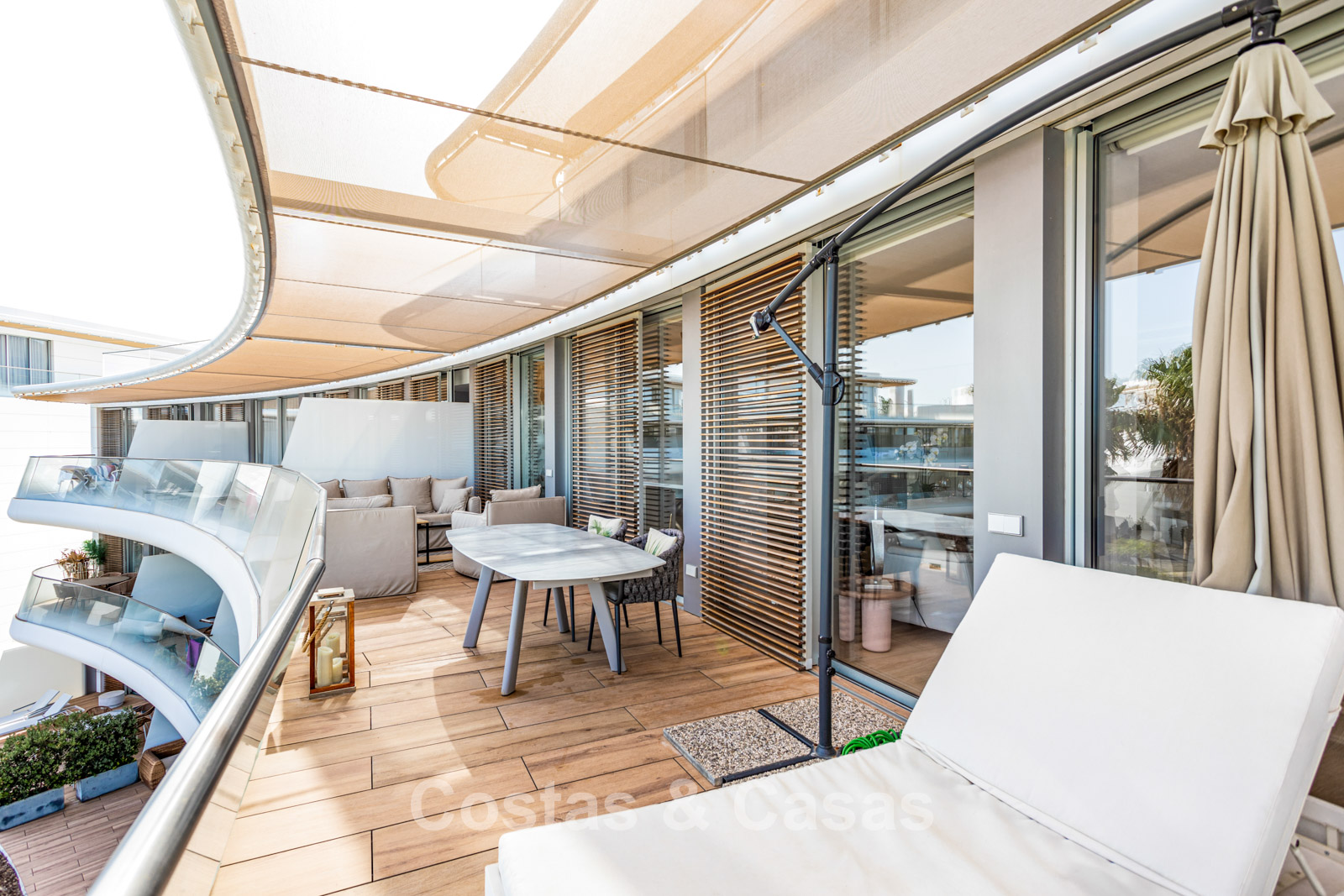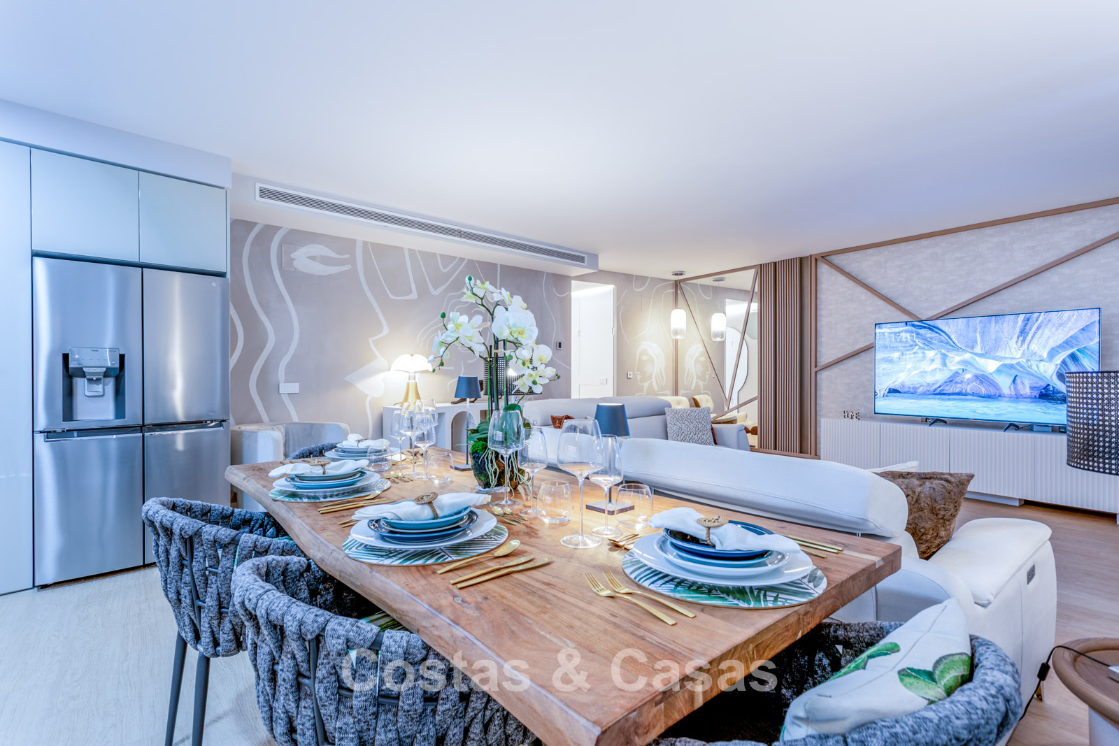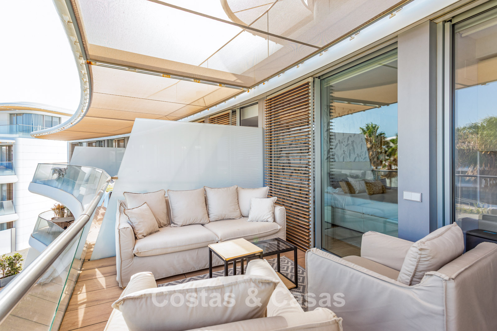 Moderno apartamento listo para entrar a vivir en venta en un complejo en primera línea de playa en Estepona, Costa del Sol