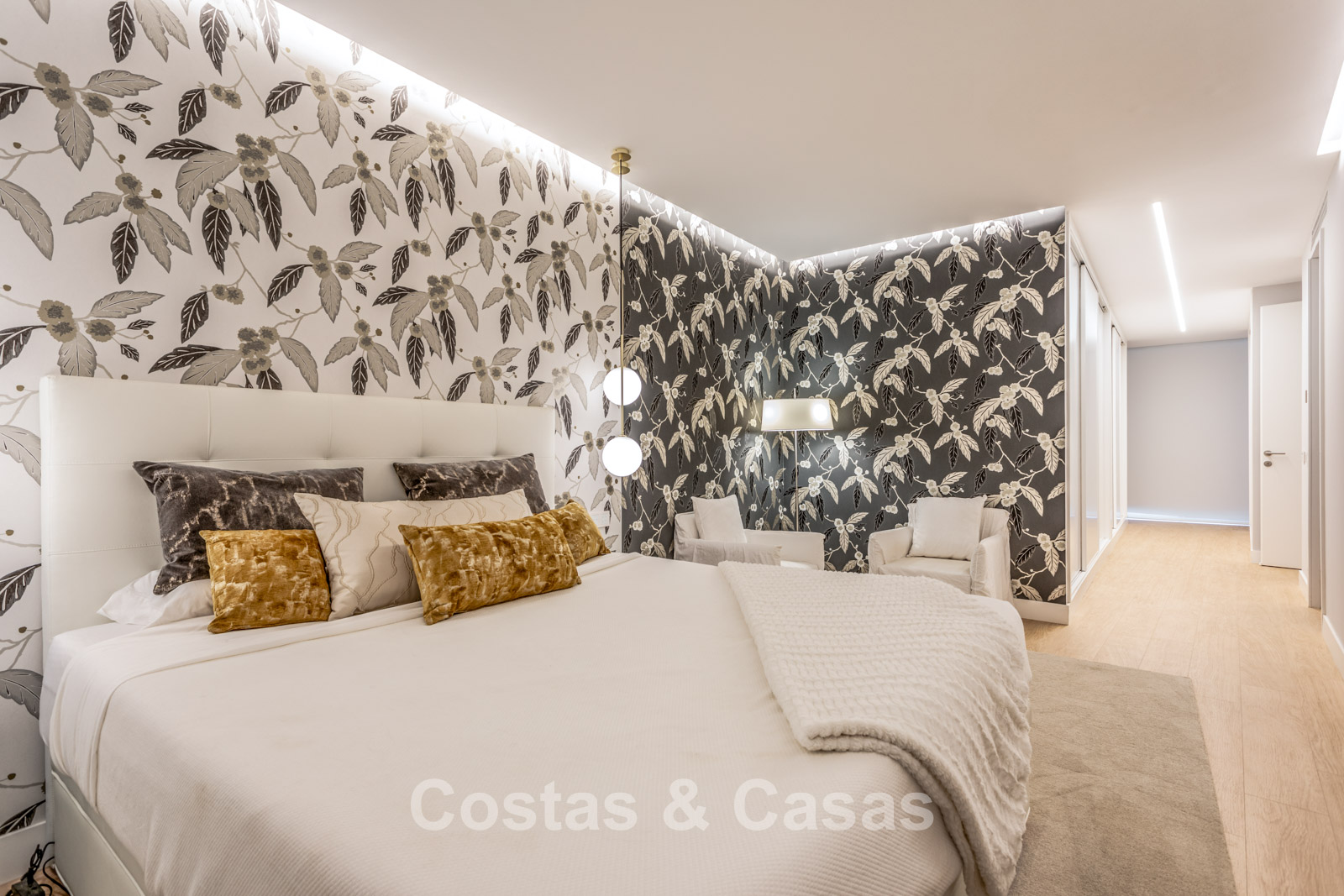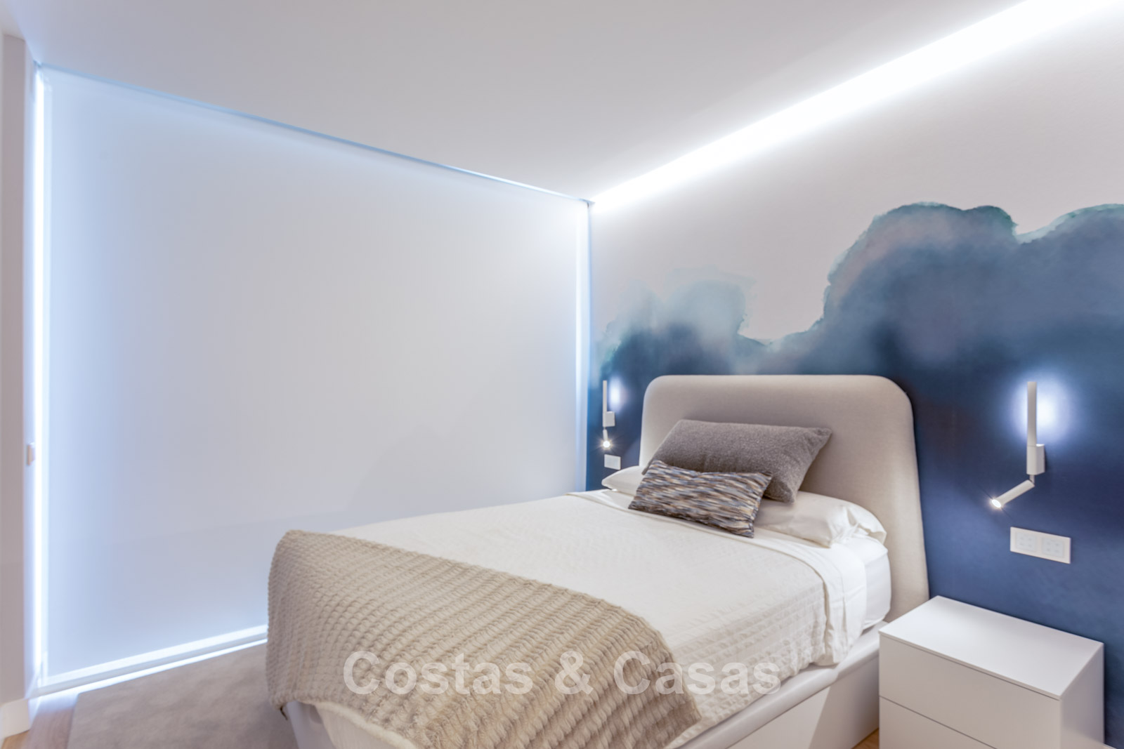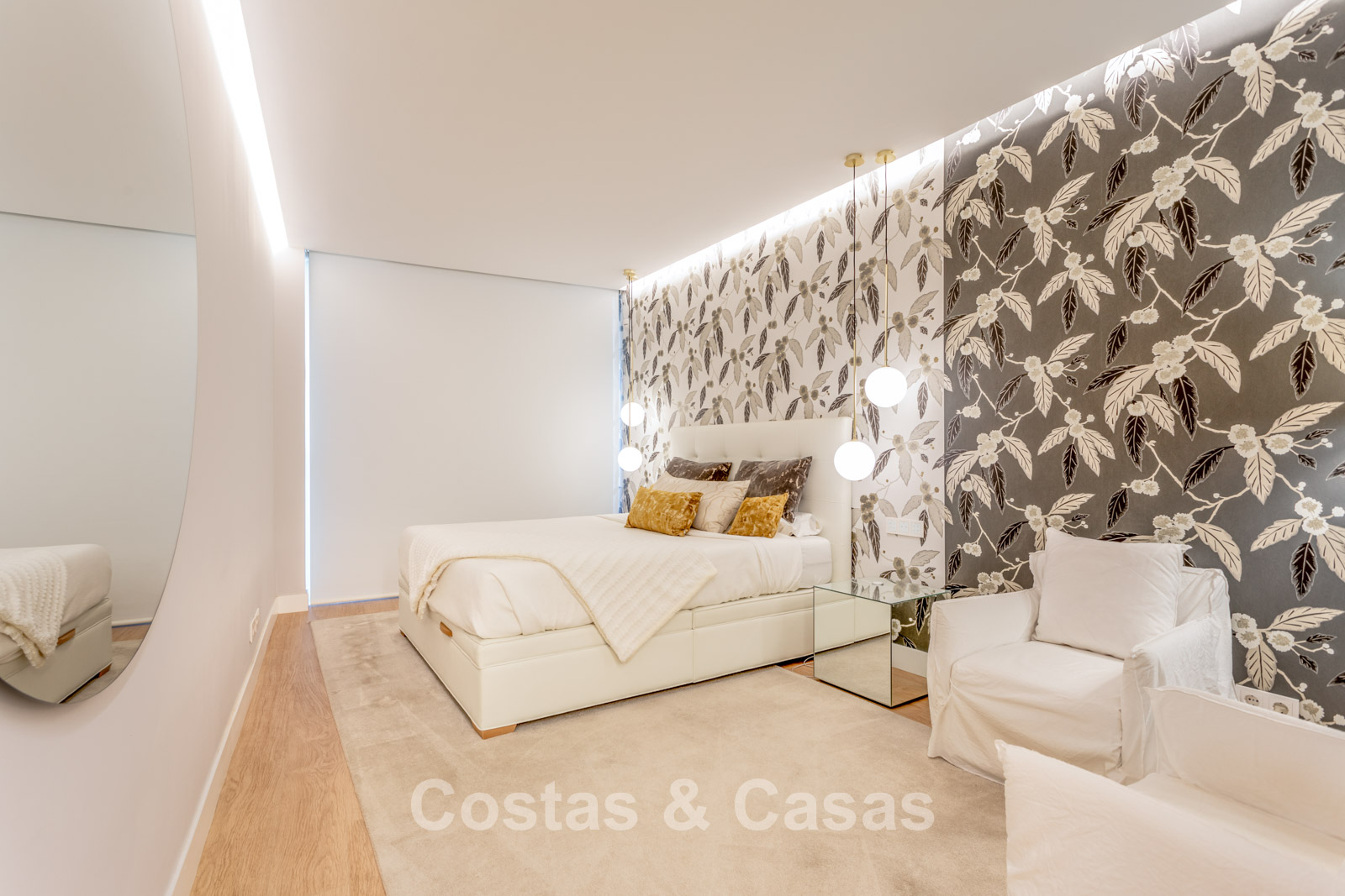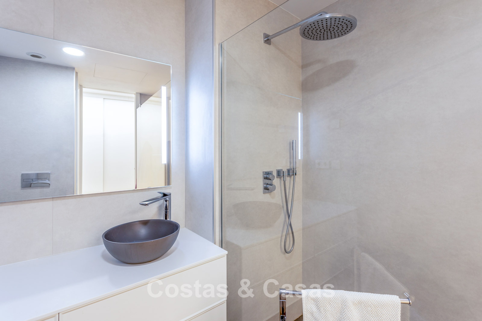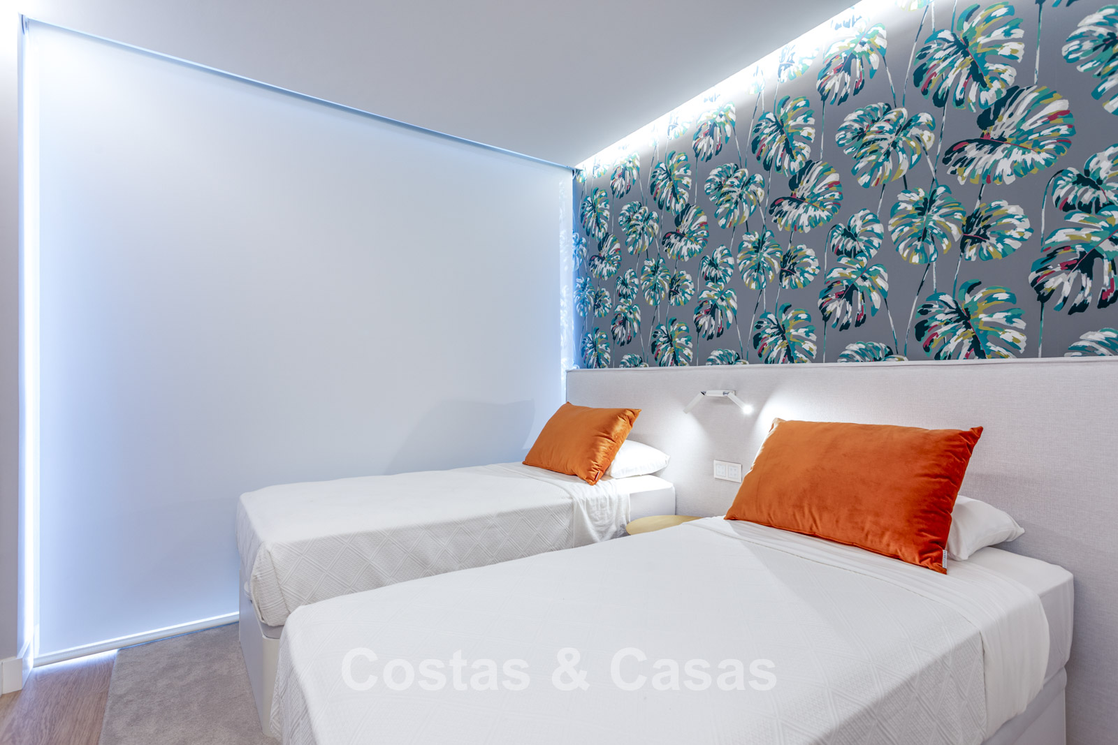 Moderno apartamento listo para entrar a vivir en venta en un complejo en primera línea de playa en Estepona, Costa del Sol