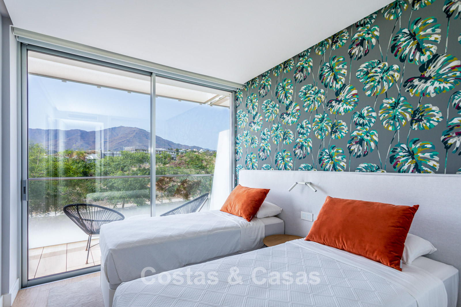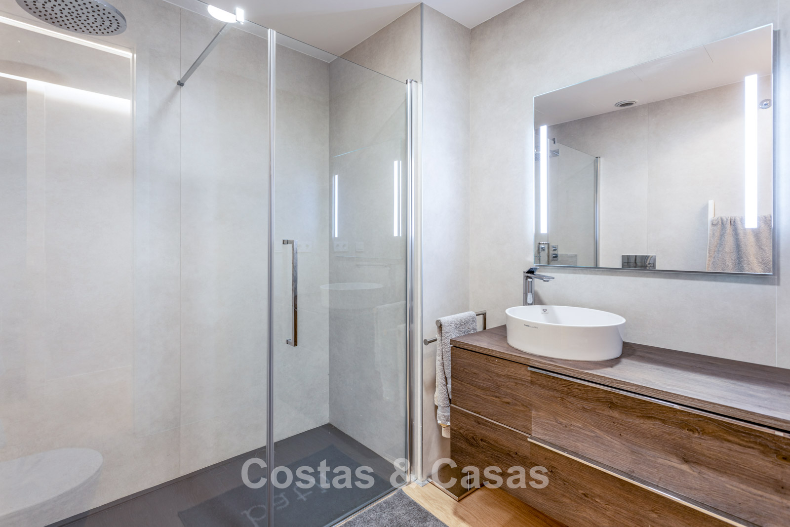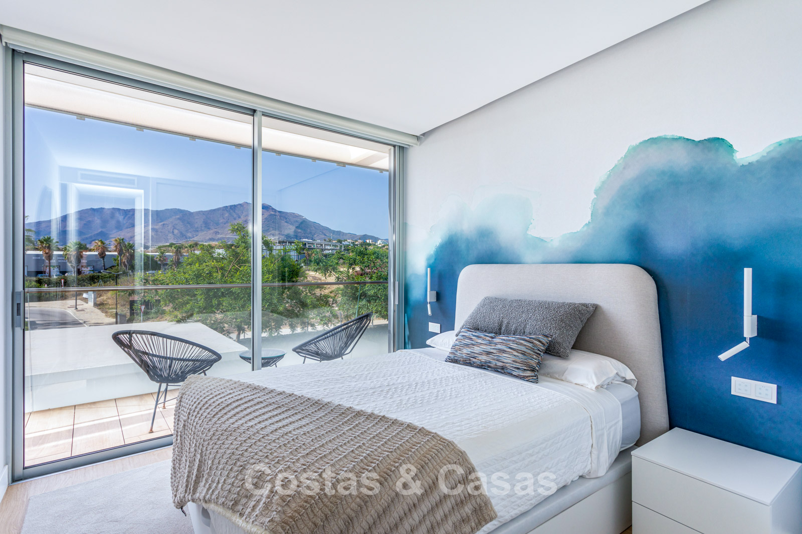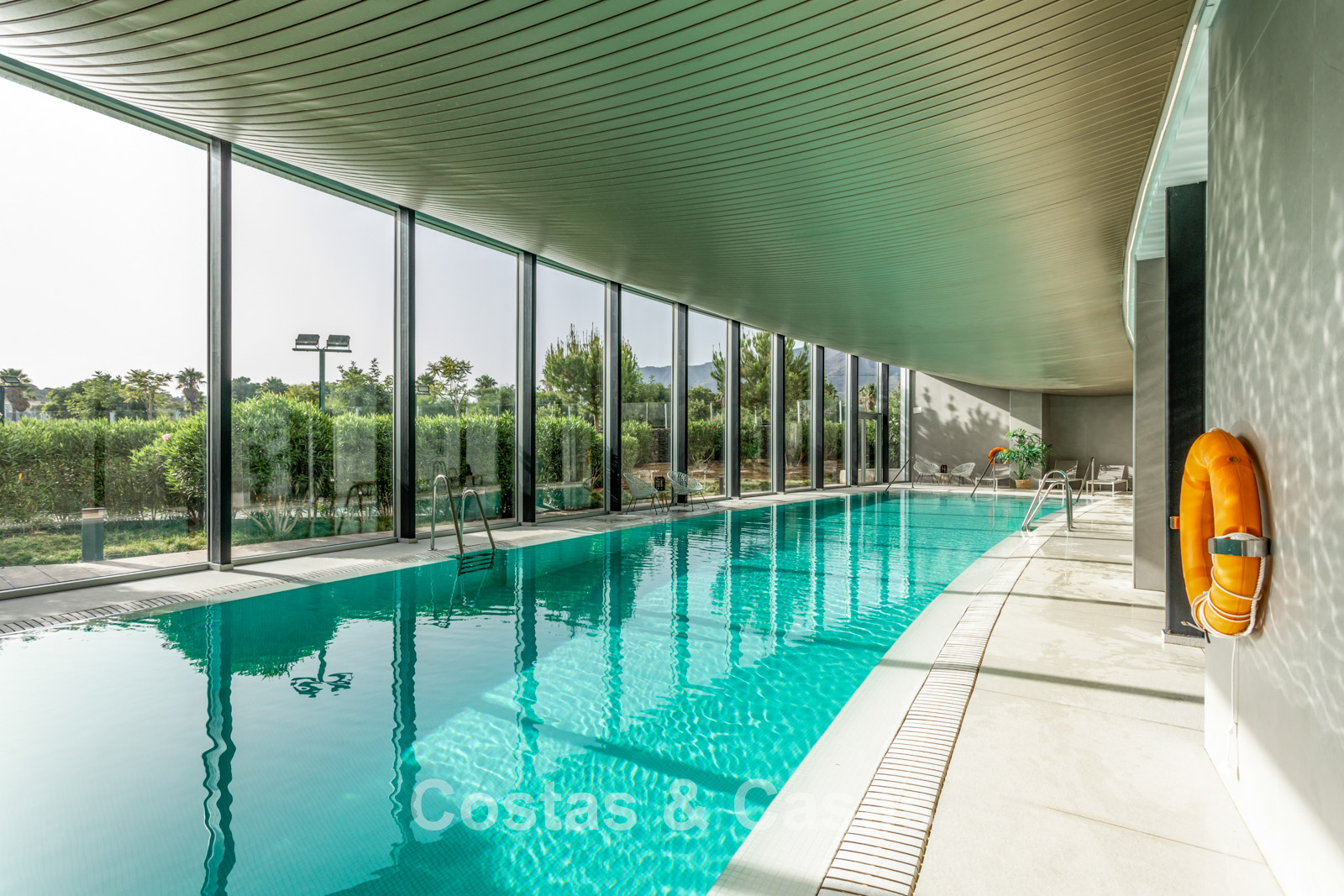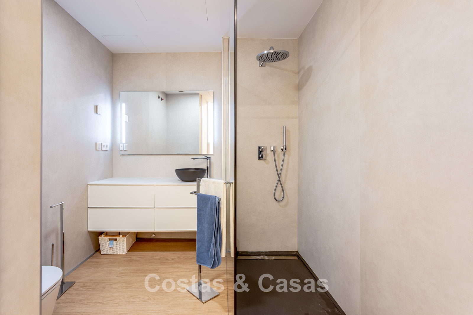 Moderno apartamento listo para entrar a vivir en venta en un complejo en primera línea de playa en Estepona, Costa del Sol
