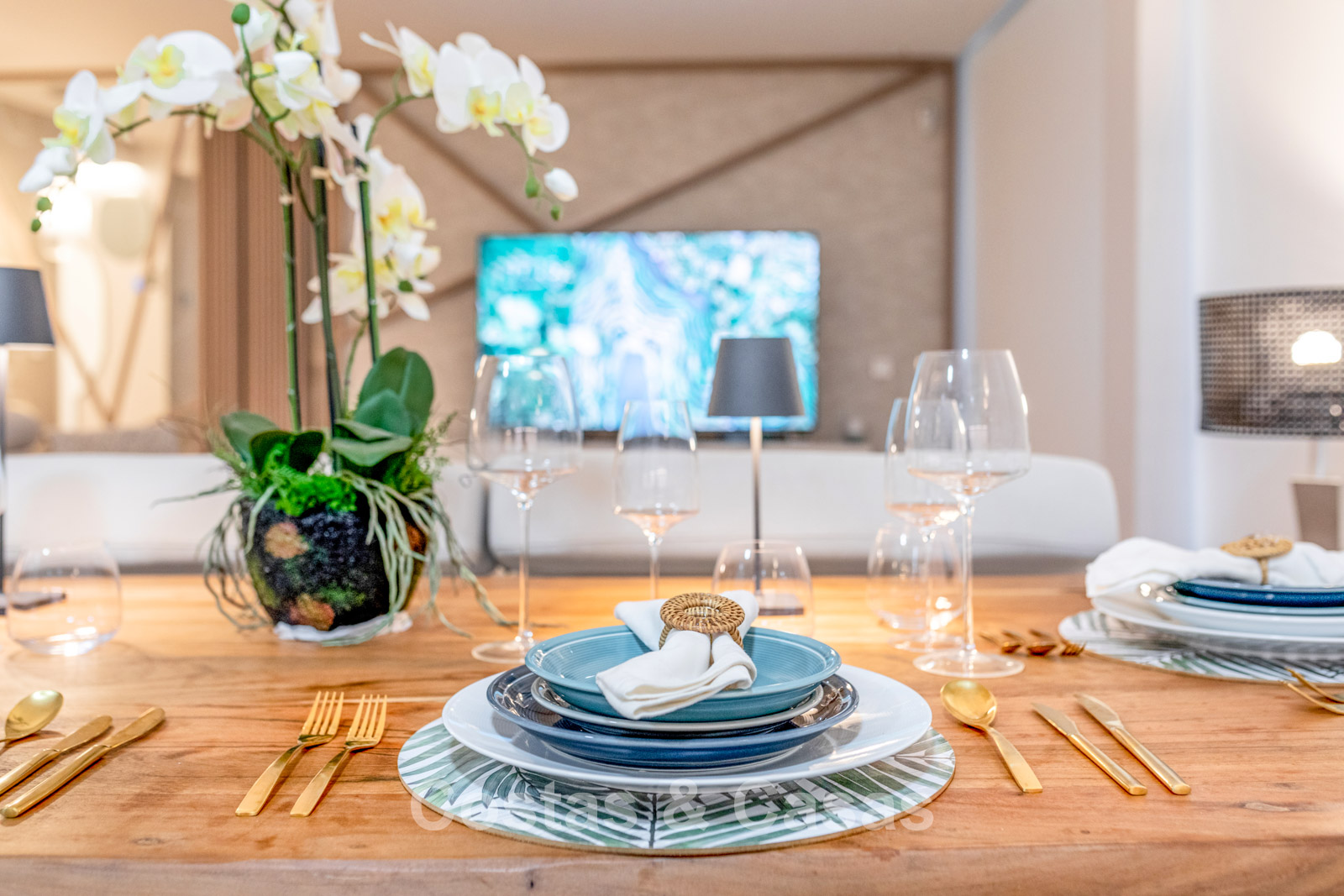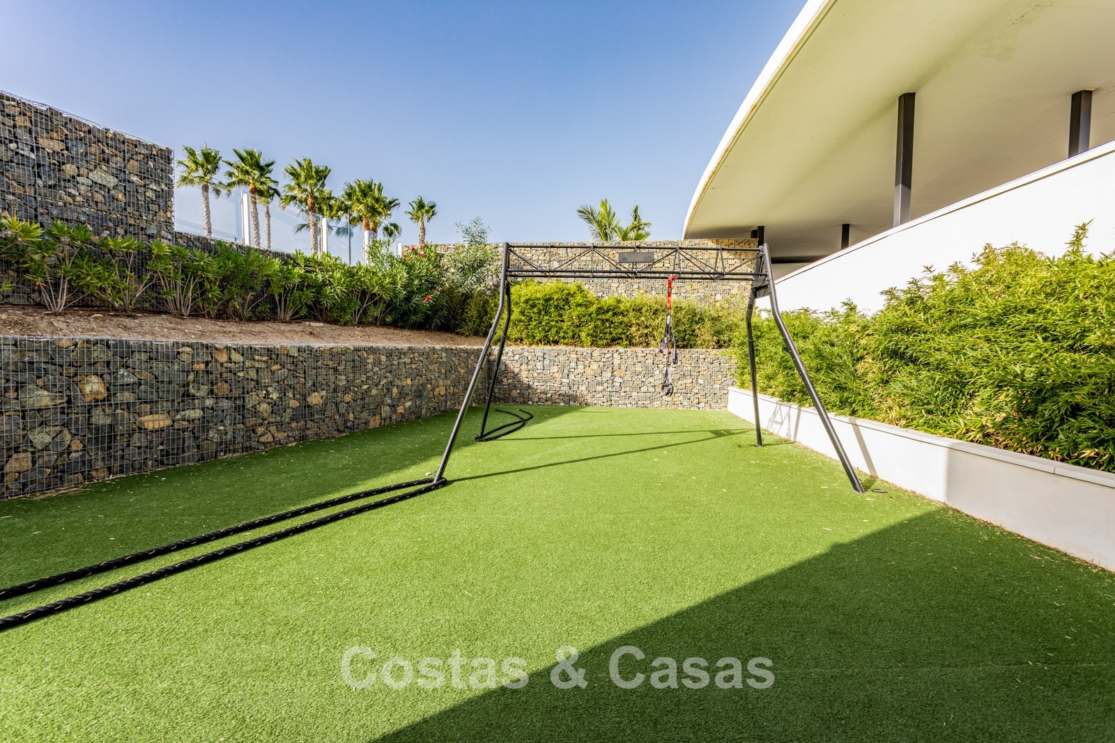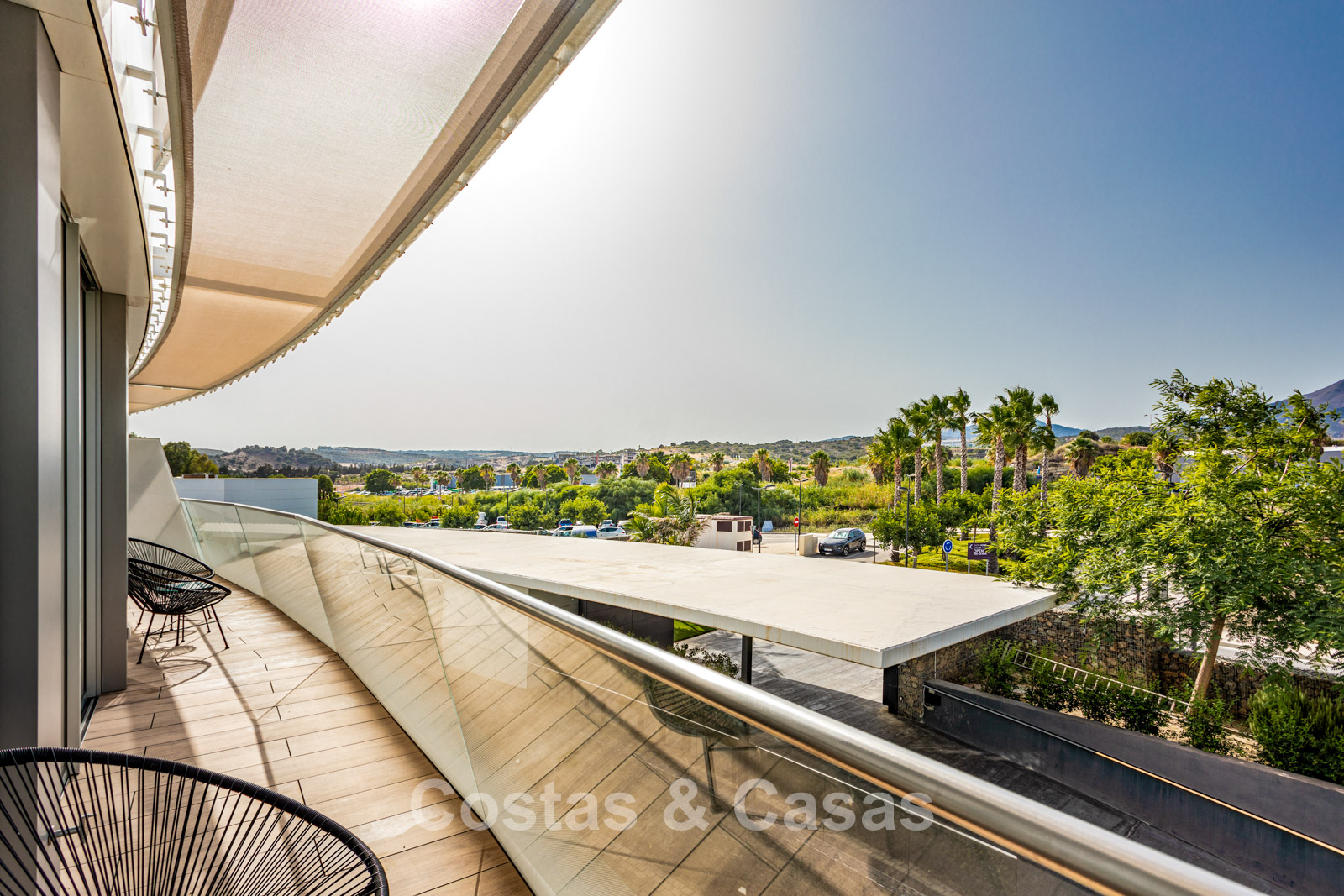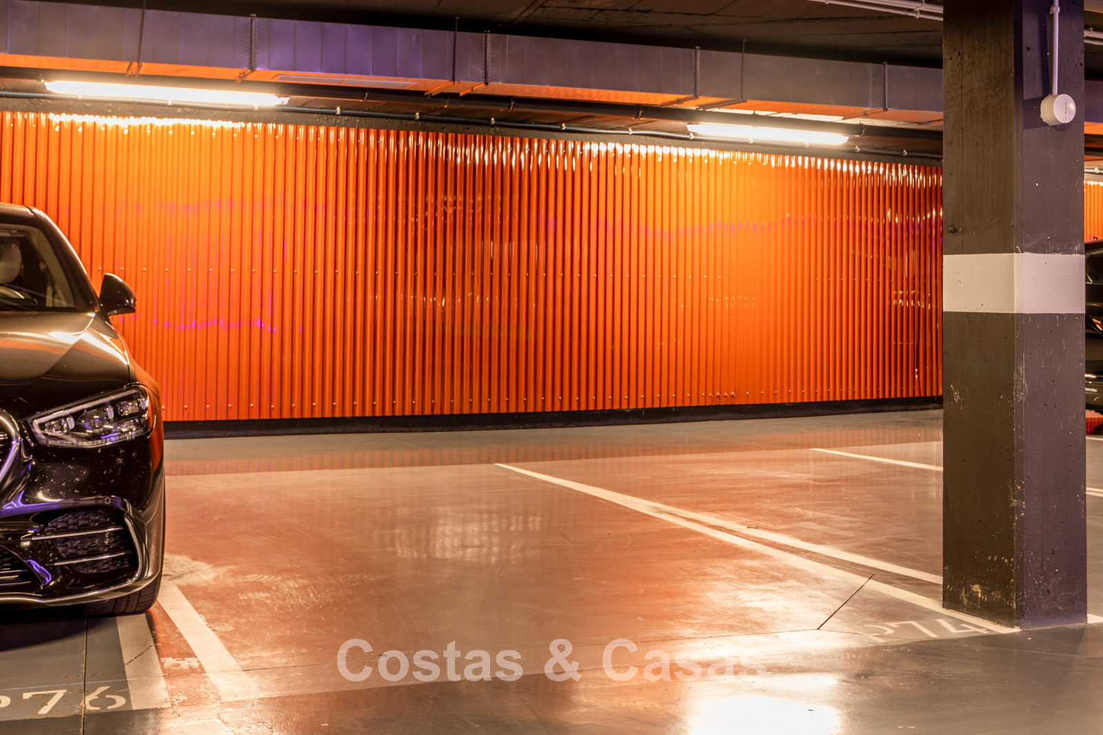 Lujoso apartamento en segunda planta. Con materiales de primera calidad y acabados de alta calidad. Orientación sur. Vistas a los cuidados jardines del complejo, hacia el mar Mediterráneo. Las ventanas correderas de suelo a techo proporcionan abundante luz natural y crean una transición fluida hacia la terraza. La terraza estará equipada con una zona de estar y un comedor al aire libre. Distribución abierta. Salón con zona de TV y comedor. Cocina a medida con electrodomésticos de alta calidad. 4 dormitorios, 3 baños. En la parte trasera, hay 3 dormitorios conectados por una segunda terraza que comparten dos baños. El dormitorio principal, con acceso directo a ambas terrazas, cuenta con un amplio vestidor y baño en suite. Suelos de madera de alta calidad. 2 trasteros. 2 plazas de aparcamiento amplias.