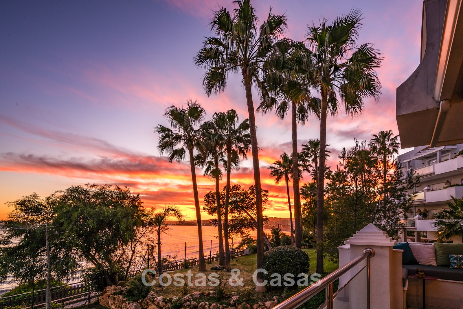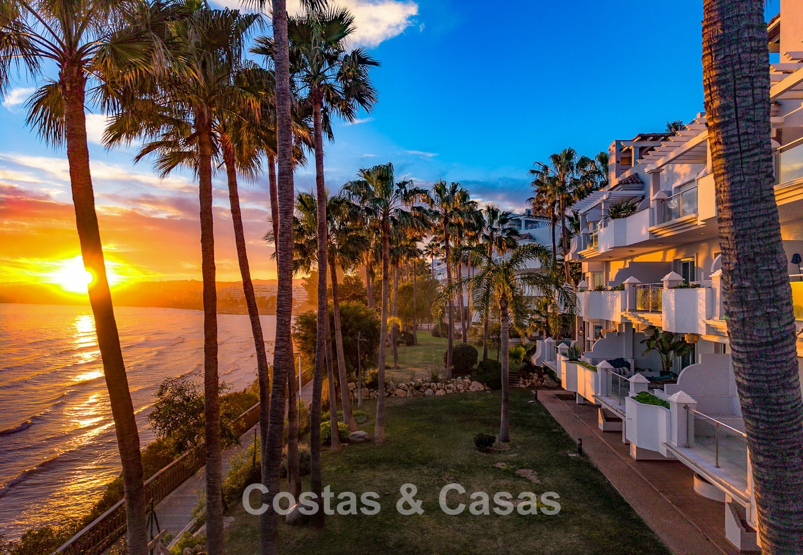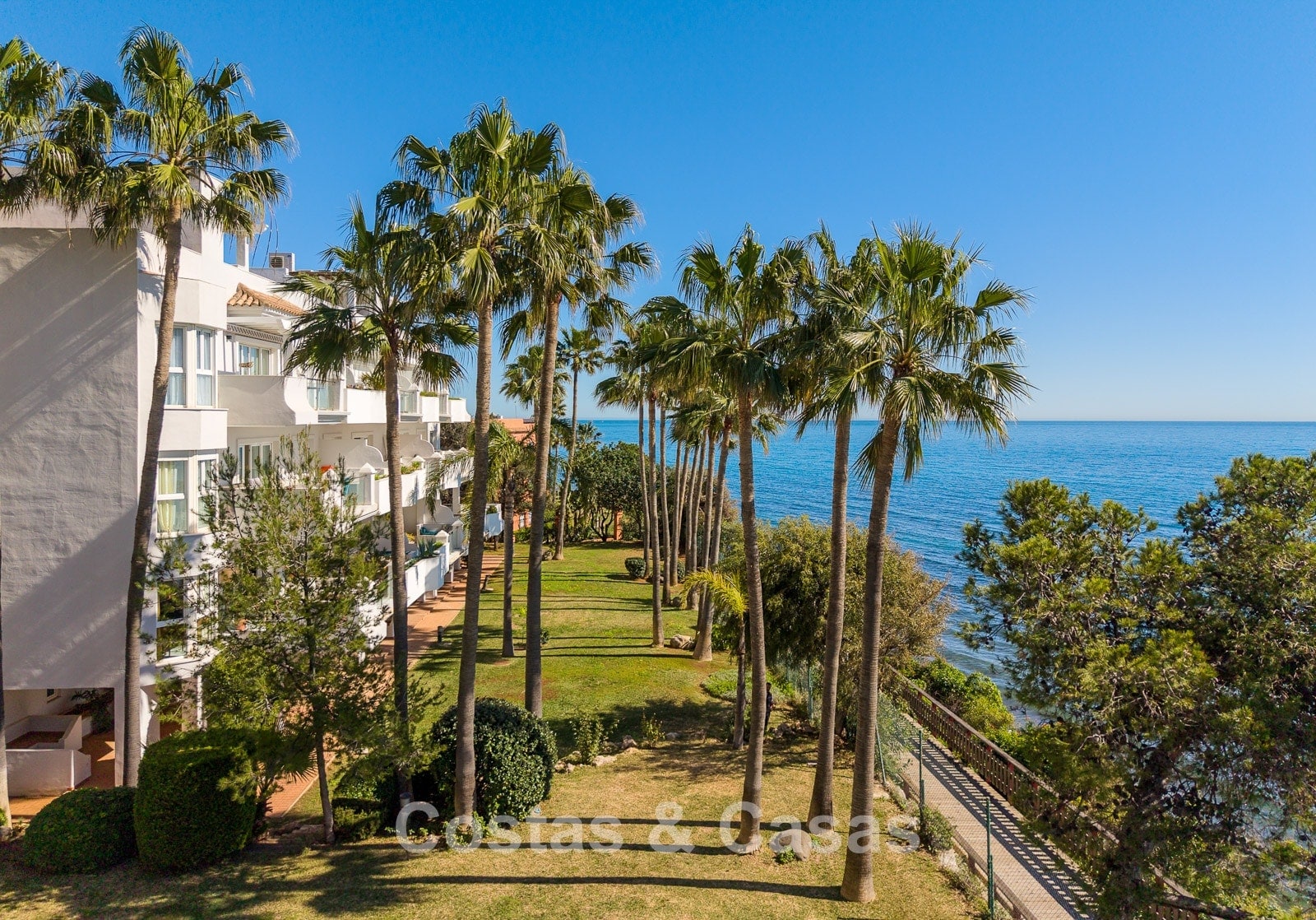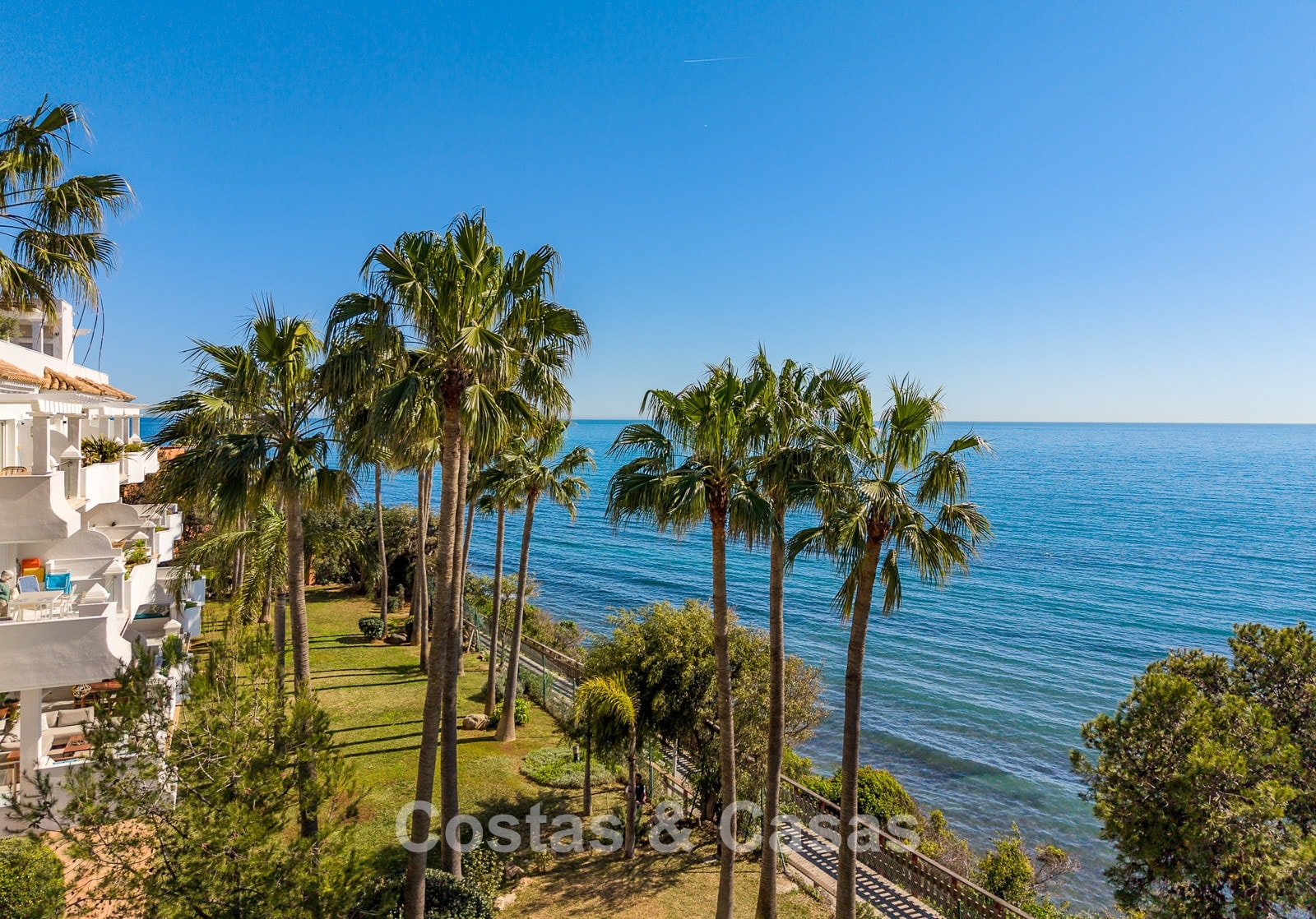 Este exclusivo complejo disfruta de una ubicación inmejorable en primera línea de playa, en una posición elevada, justo en uno de los mejores tramos del paseo marítimo de Estepona. El paseo marítimo, de varios kilómetros, ha sido completamente renovado en los últimos años y es uno de los más modernos y animados de España. A solo 10–15 minutos a pie se encuentra el encantador casco antiguo, con calles llenas de flores, bares de tapas gourmet, boutiques y el animado puerto deportivo. Para mayor comodidad, un gran supermercado Carrefour está a pocos pasos, permitiendo cubrir todas las necesidades sin necesidad de coche. También hay un reconocido restaurante de playa cercano, además de varios chiringuitos a poca distancia. Los amantes del golf disfrutarán de campos como Valle Romano a poca distancia en coche, mientras que Marbella y Puerto Banús están a solo 20 minutos.