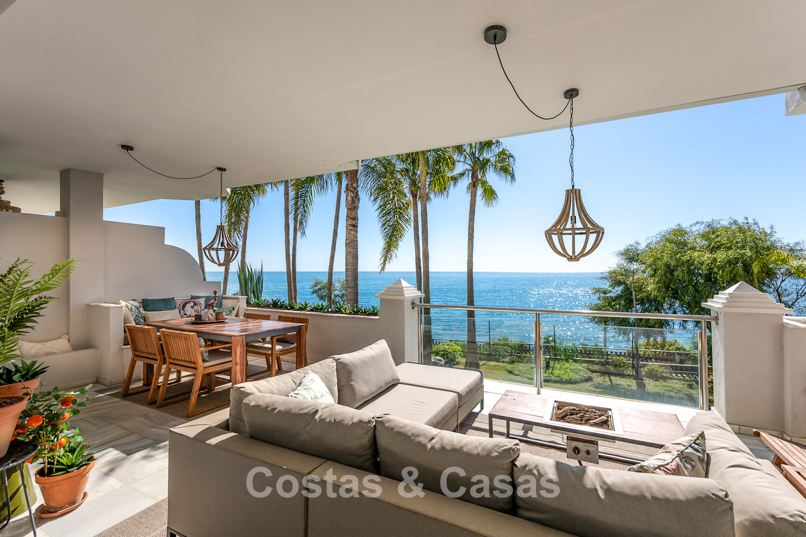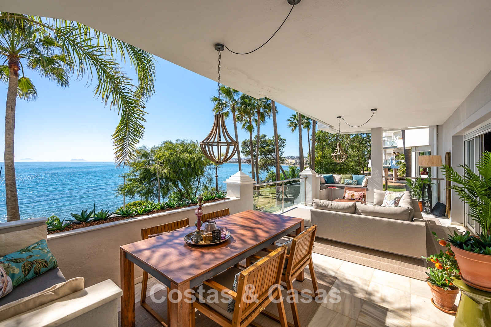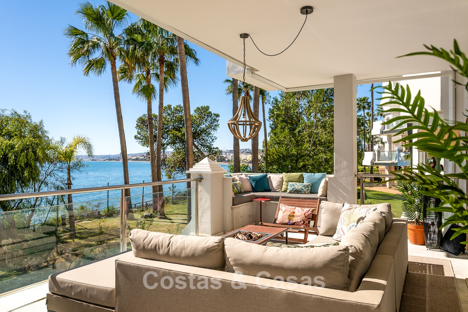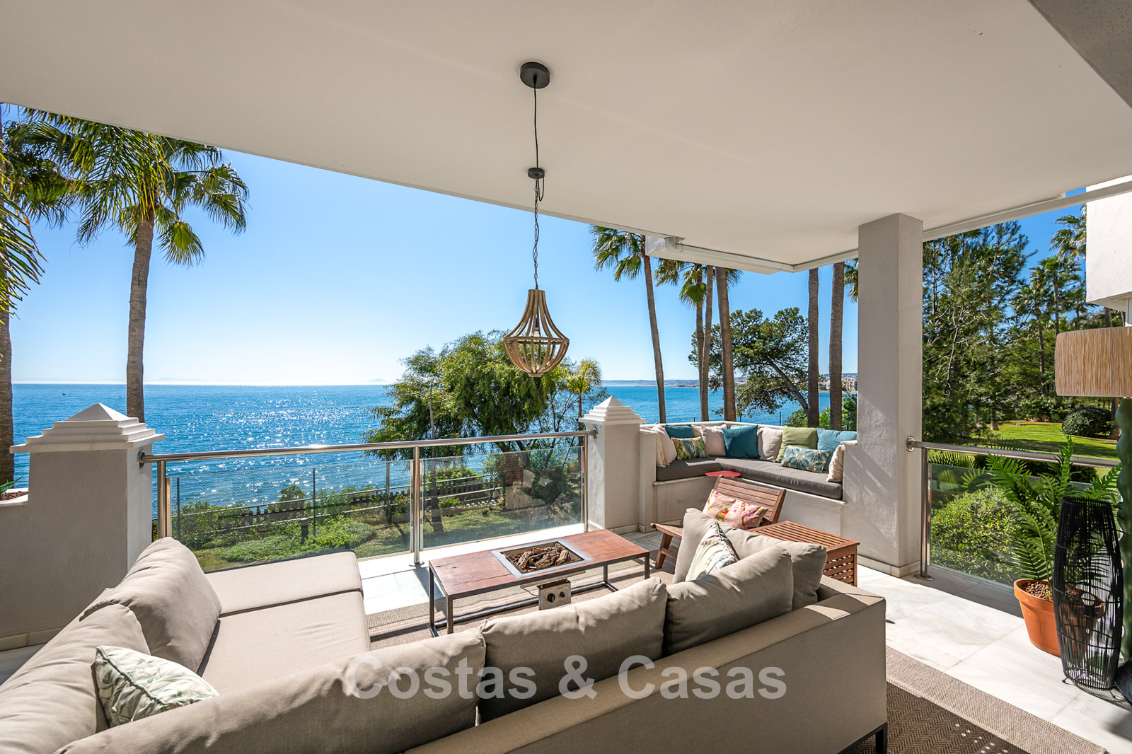 Este impresionante apartamento ha sido completamente renovado y se encuentra en excelentes condiciones. Su diseño interior destaca por un estilo moderno y acogedor. Gracias a su orientación suroeste, la vivienda disfruta de luz natural durante todo el día. El punto fuerte es la espectacular vista panorámica al mar, visible desde casi todos los espacios. La amplia terraza cubierta de 40 m² es ideal para cenas al atardecer y cuenta con cortinas de cristal que conectan perfectamente el interior con el exterior. Los grandes ventanales aportan amplitud y mantienen una conexión constante con el mar. El salón de concepto abierto ofrece un diseño elegante y moderno. La cocina está completamente equipada con electrodomésticos de alta calidad. Dispone de dos amplios dormitorios con acabados refinados y dos baños de lujo. Suelos de mármol de alta calidad en toda la vivienda. Incluye trastero y plaza de aparcamiento en carport.