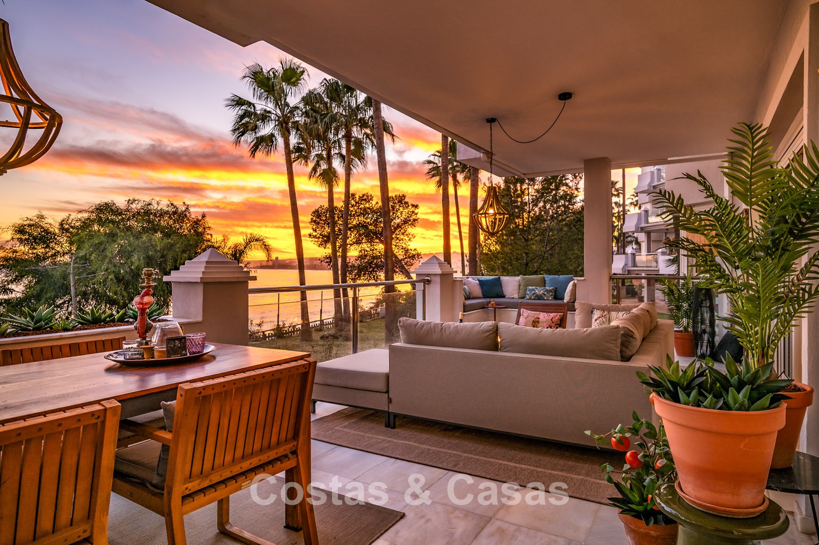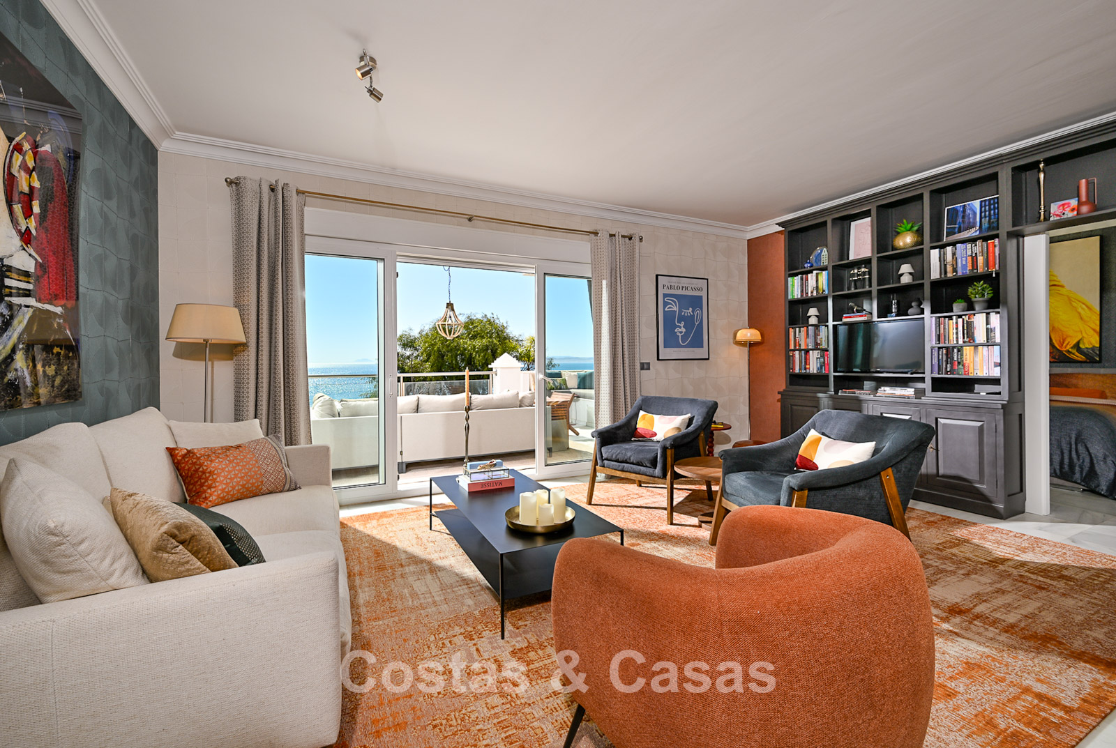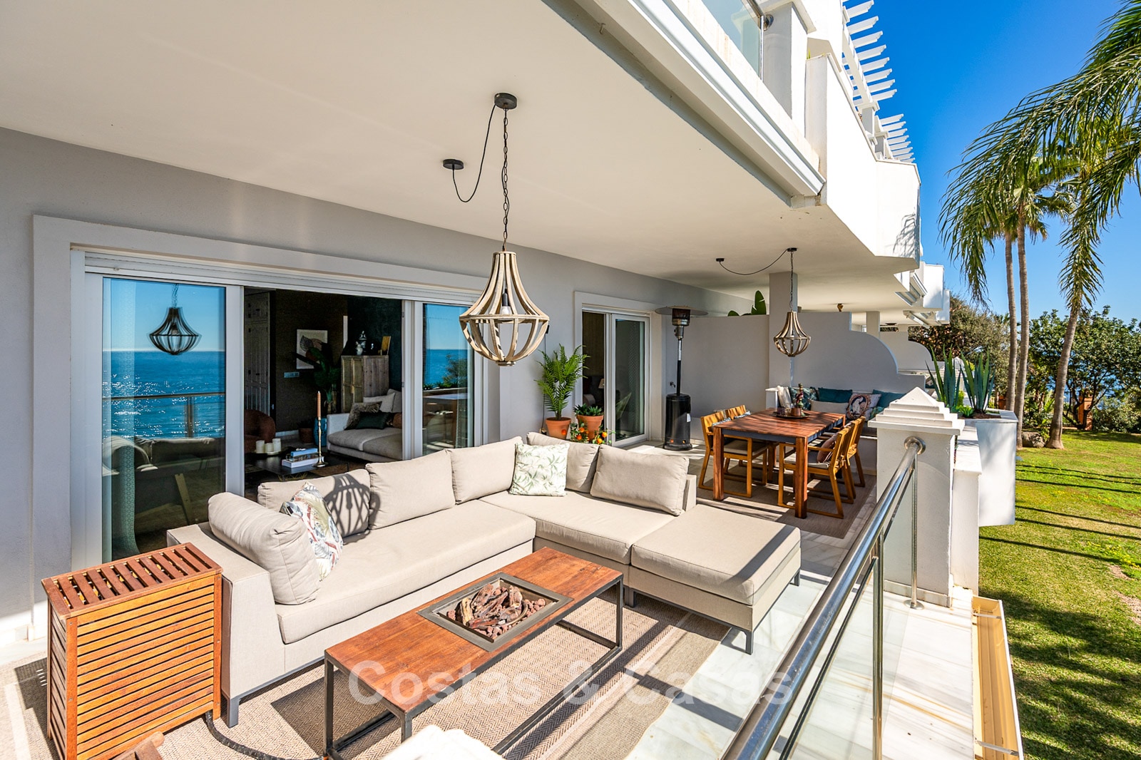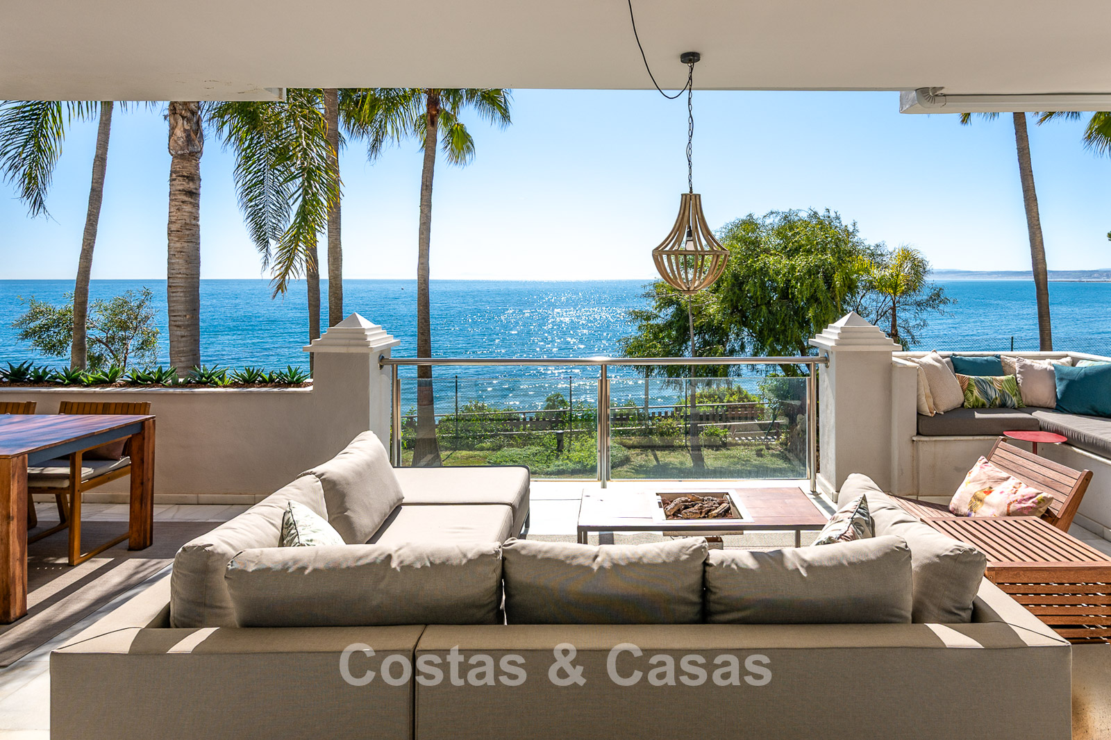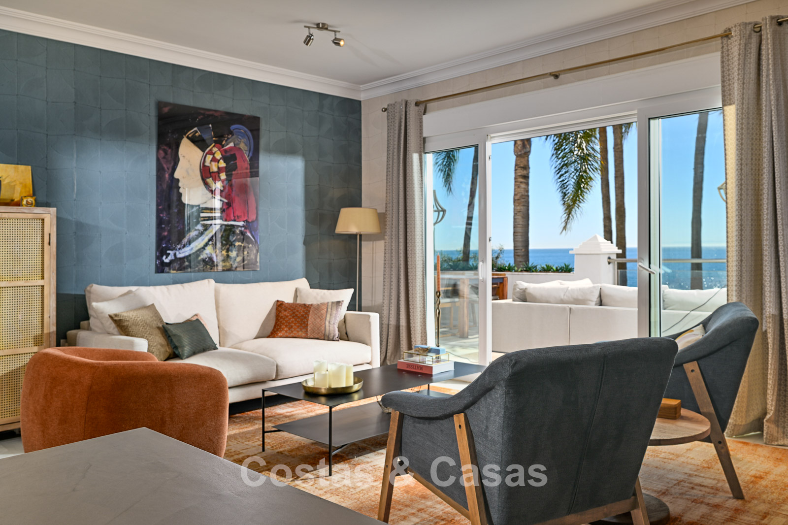 Este impresionante apartamento ha sido completamente renovado y se encuentra en excelentes condiciones. Su diseño interior destaca por un estilo moderno y acogedor. Gracias a su orientación suroeste, la vivienda disfruta de luz natural durante todo el día. El punto fuerte es la espectacular vista panorámica al mar, visible desde casi todos los espacios. La amplia terraza cubierta de 40 m² es ideal para cenas al atardecer y cuenta con cortinas de cristal que conectan perfectamente el interior con el exterior. Los grandes ventanales aportan amplitud y mantienen una conexión constante con el mar. El salón de concepto abierto ofrece un diseño elegante y moderno. La cocina está completamente equipada con electrodomésticos de alta calidad. Dispone de dos amplios dormitorios con acabados refinados y dos baños de lujo. Suelos de mármol de alta calidad en toda la vivienda. Incluye trastero y plaza de aparcamiento en carport.