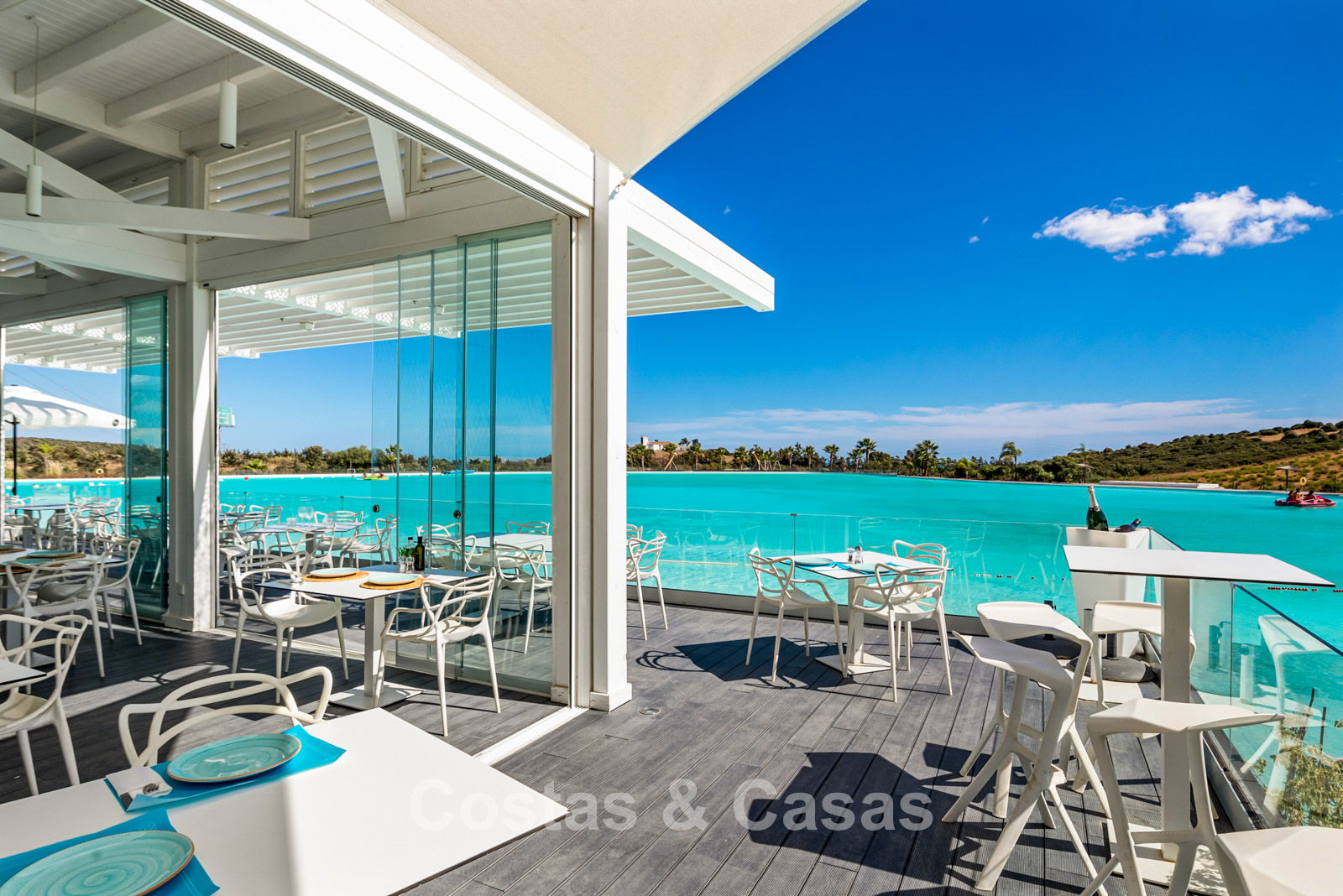La laguna ofrece, entre otras cosas, un restaurante con zona de baño, un gimnasio y una zona de juegos infantiles independiente.