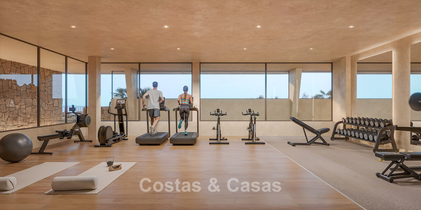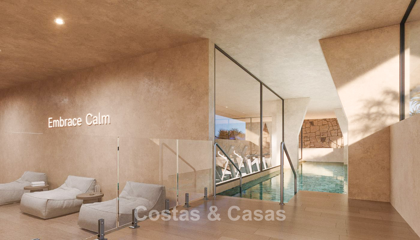 El complejo dispone de dos piscinas: una exterior y una interior climatizada, integradas armoniosamente en los jardines. Además, cuenta con spa, gimnasio profesional totalmente equipado y un acogedor espacio de coworking con cocina.