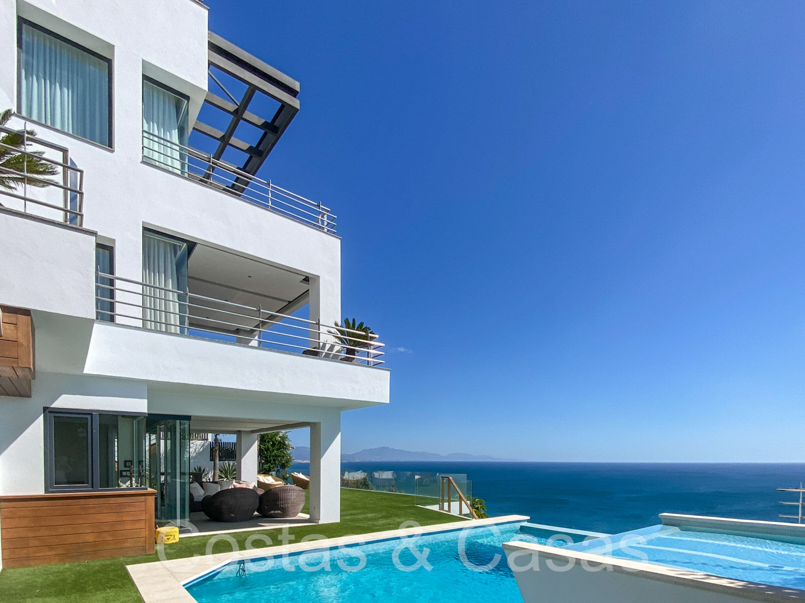 Villa contemporánea de lujo con vistas frontales al mar en venta en Manilva, Costa del Sol