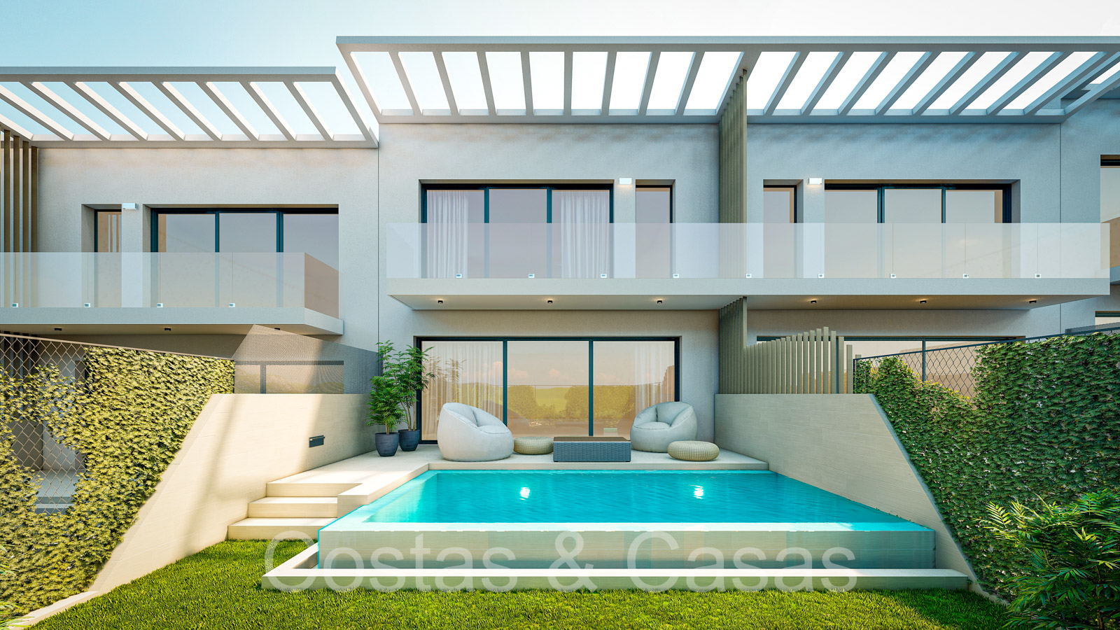 Un nuevo proyecto que consta de 16 villas adosadas, independientes o pareadas. Diseño paisajístico mediterráneo consistente en césped, arbustos, árboles y plantas de seto alrededor de la parcela. Diseñado con altas especificaciones con un ojo para la sostenibilidad. Piscina privada con sistema de agua salada. Terrazas cubiertas y descubiertas con amplio espacio para instalar salones. Todas las viviendas están orientadas al sur y disfrutan de amplias vistas de los alrededores. Concepto de planta abierta. Espacio abierto con sala de estar y comedor. Cocina totalmente equipada con electrodomésticos de primera calidad. Ventanas correderas de suelo a techo que generan mucha luz natural. Aparcamiento privado y/o garaje interior para 2 coches.