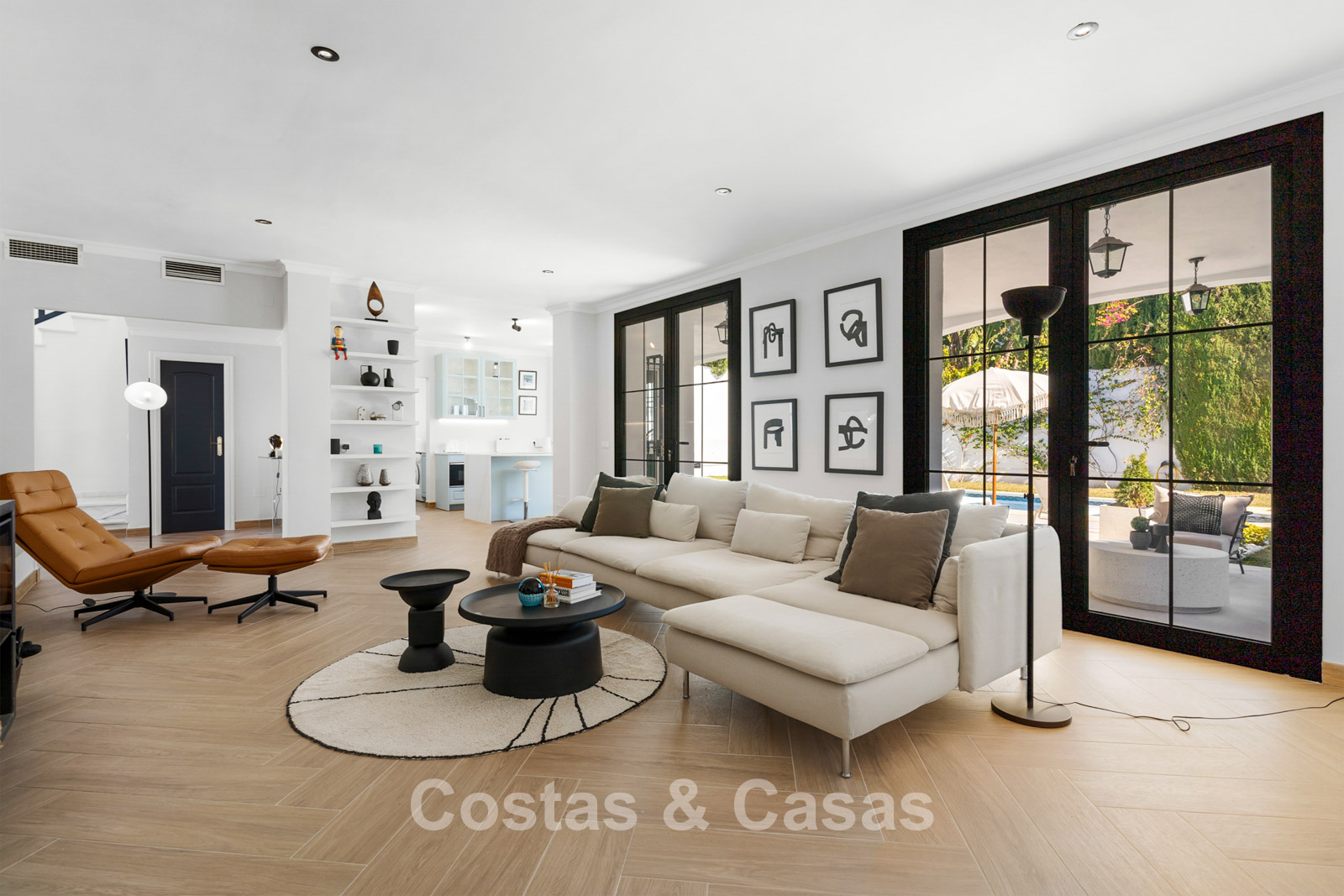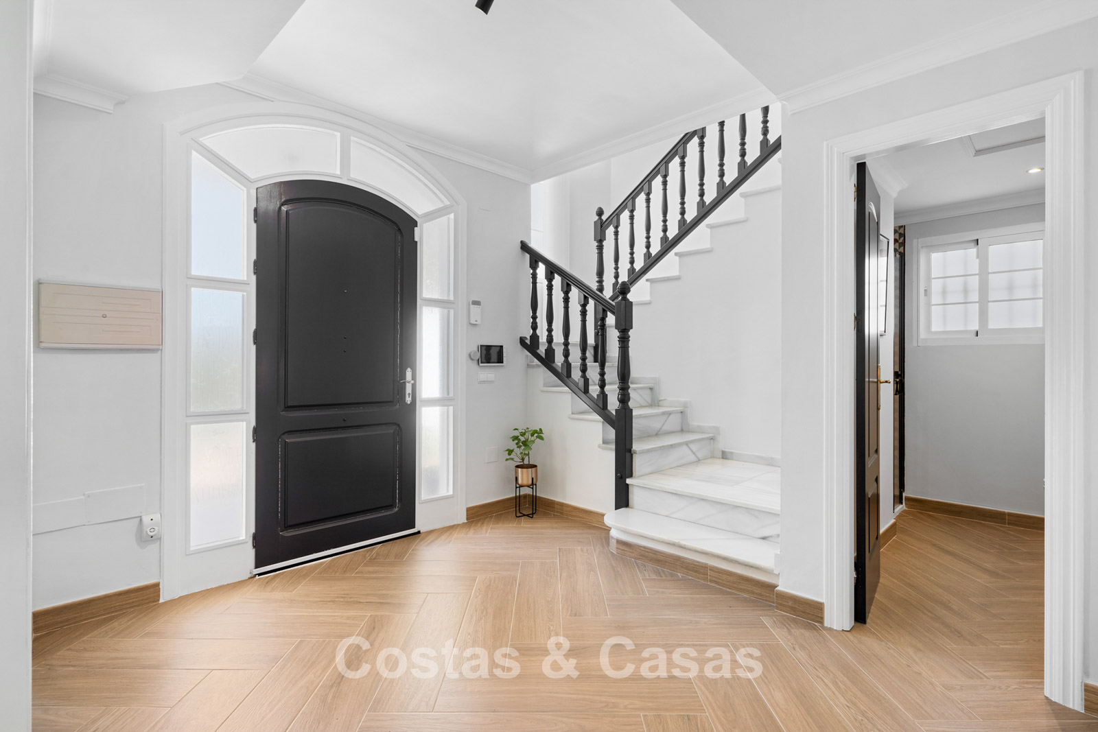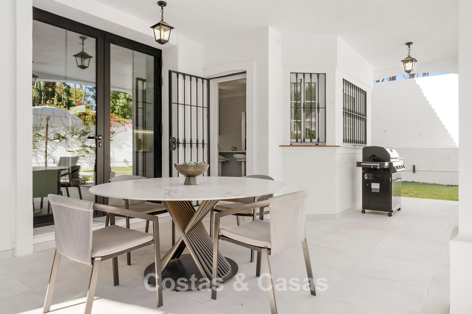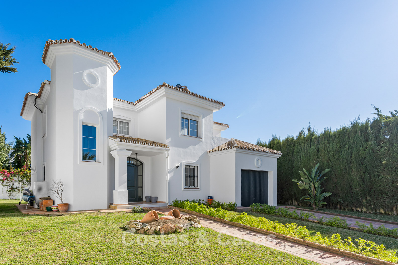 Villa independiente de estilo andaluz. Recientemente renovada en 2024 en un estilo contemporáneo con atención al lujo y al diseño. Las estructuras de ventanas altas proporcionan una transición perfecta entre los espacios interiores y exteriores y también generan abundante luz natural. Cocina abierta totalmente equipada con zona de desayuno y lavadero independiente. 4 dormitorios, 4 baños. Suelos de parquet cerámico en estructura de espiga. Trastero. Garaje interior para 1 coche. Aparcamiento adicional en la parcela.
