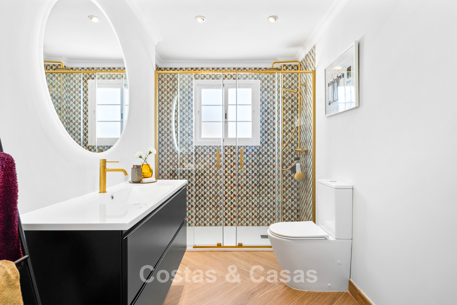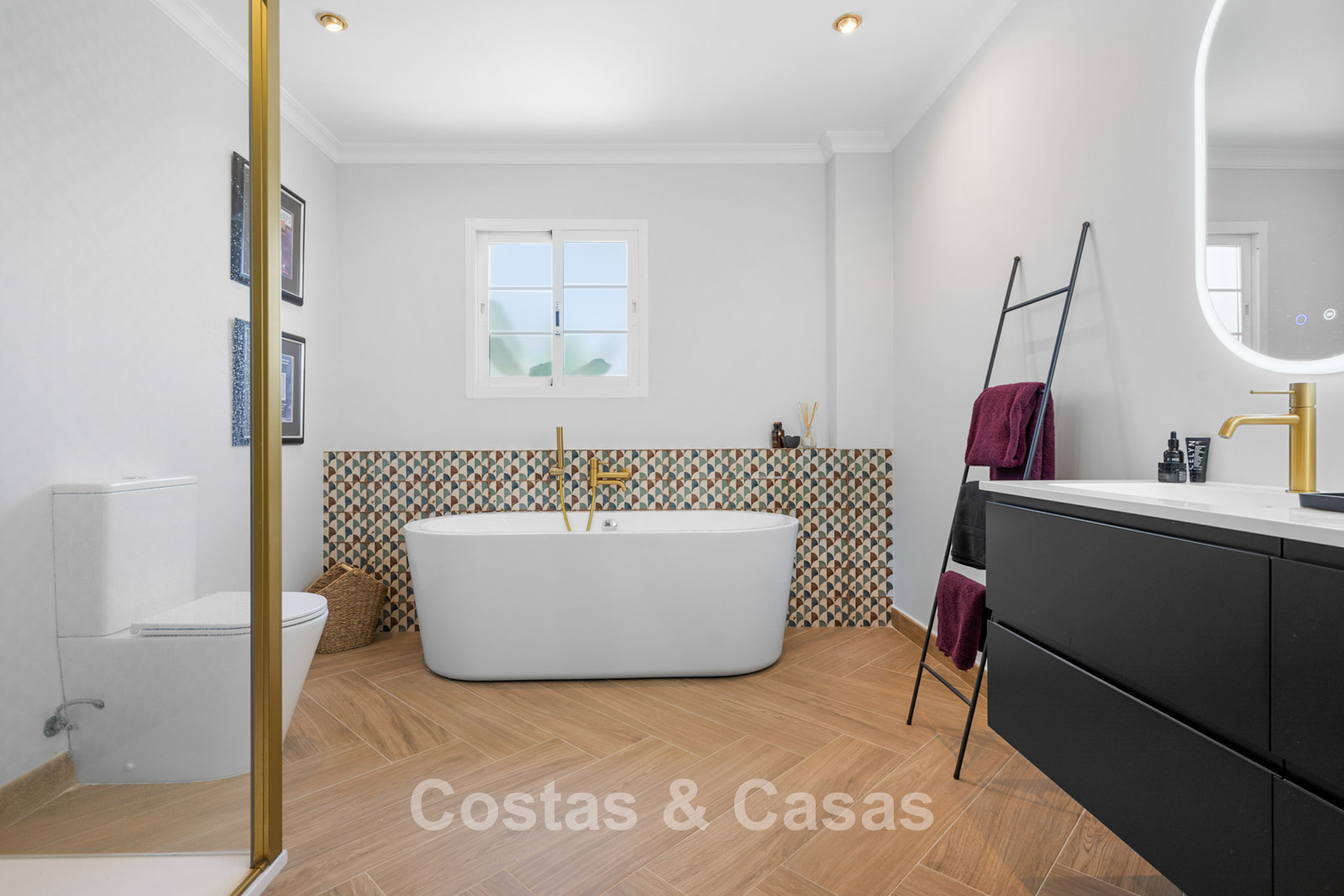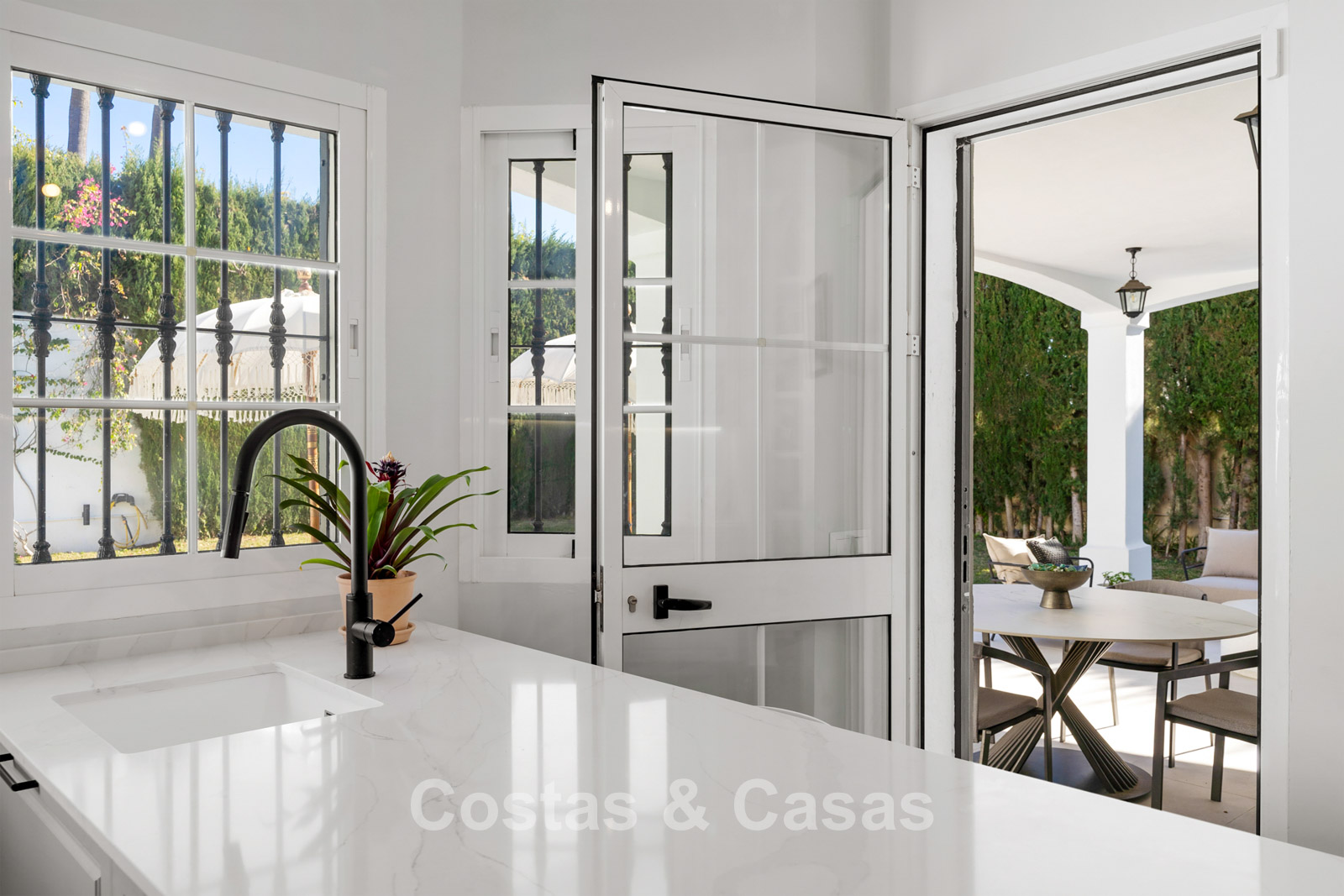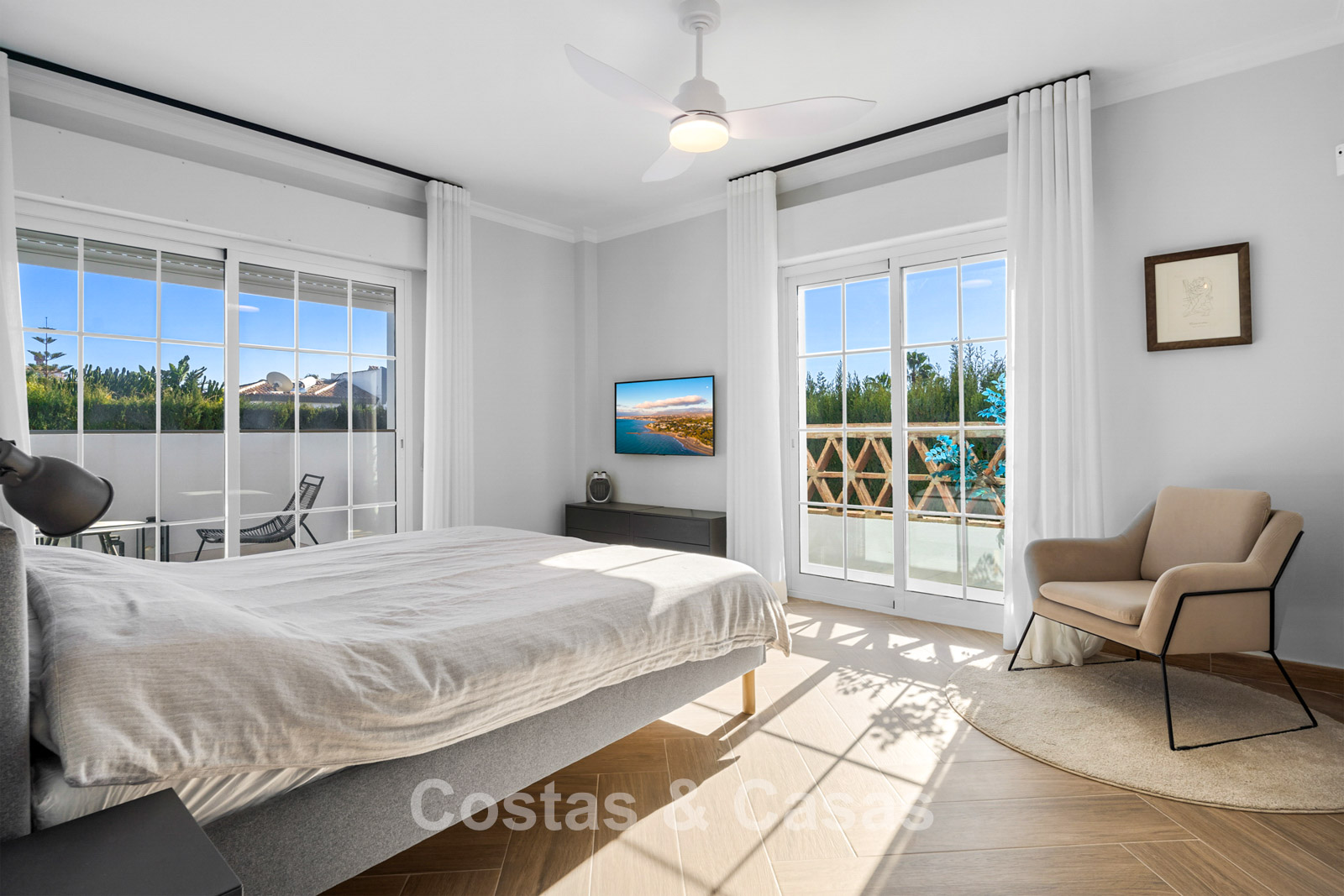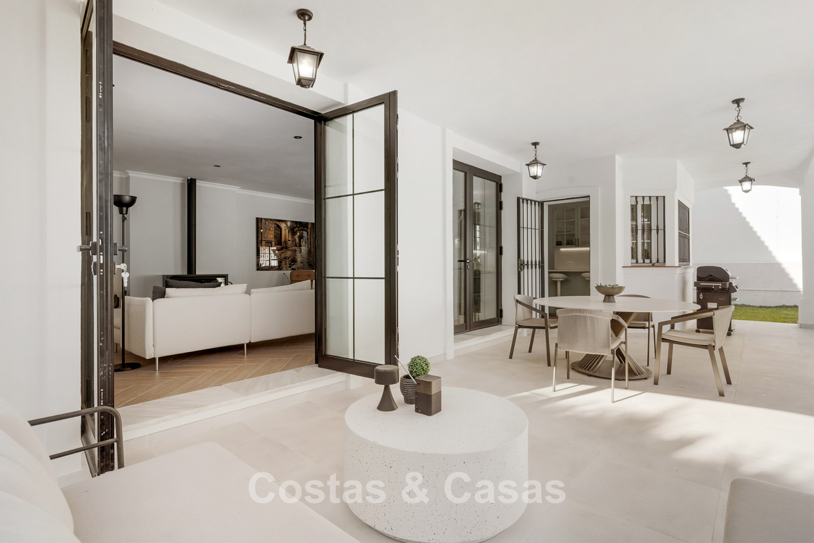 Villa independiente de estilo andaluz. Recientemente renovada en 2024 en un estilo contemporáneo con atención al lujo y al diseño. Las estructuras de ventanas altas proporcionan una transición perfecta entre los espacios interiores y exteriores y también generan abundante luz natural. Cocina abierta totalmente equipada con zona de desayuno y lavadero independiente. 4 dormitorios, 4 baños. Suelos de parquet cerámico en estructura de espiga. Trastero. Garaje interior para 1 coche. Aparcamiento adicional en la parcela.