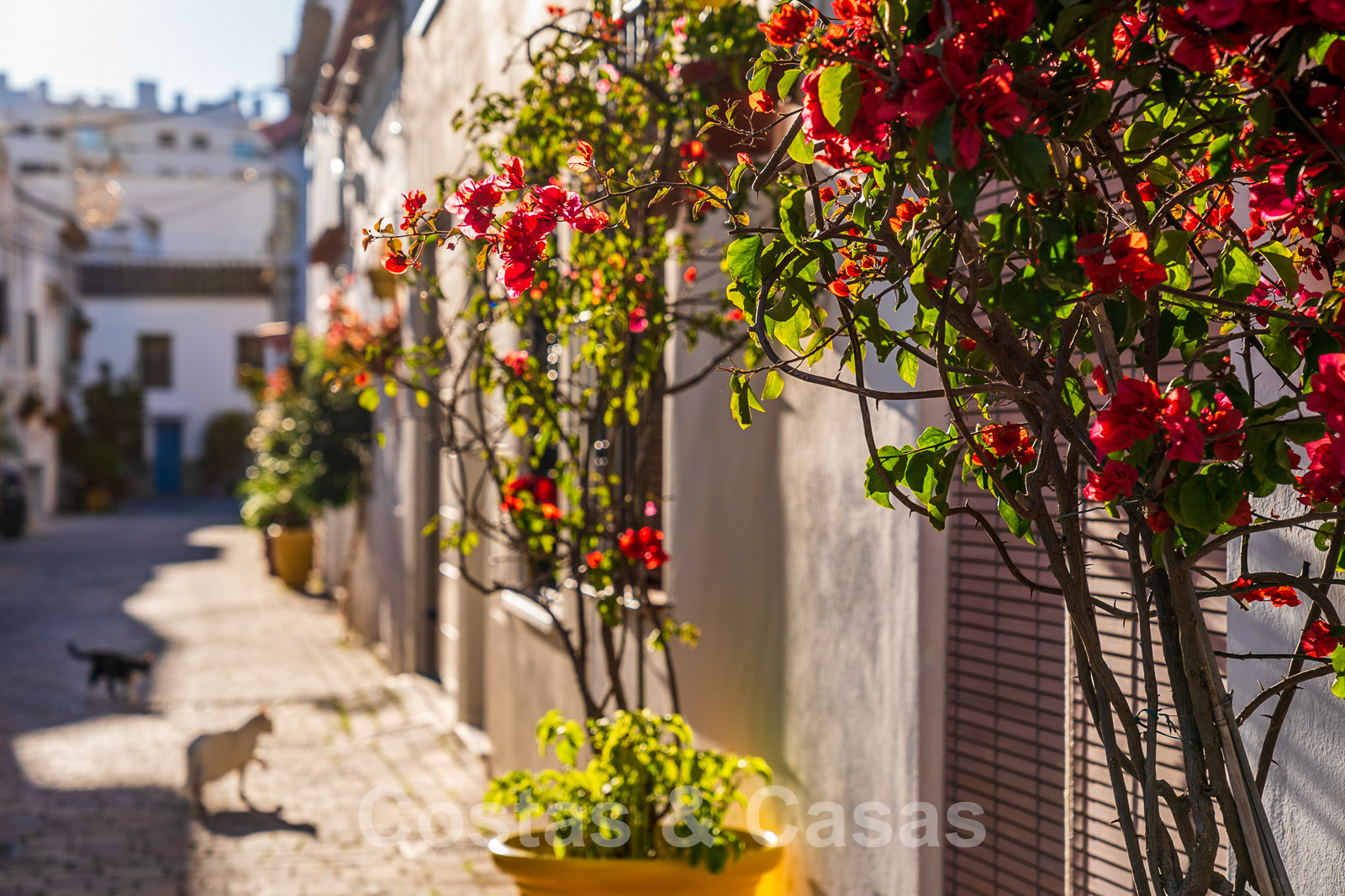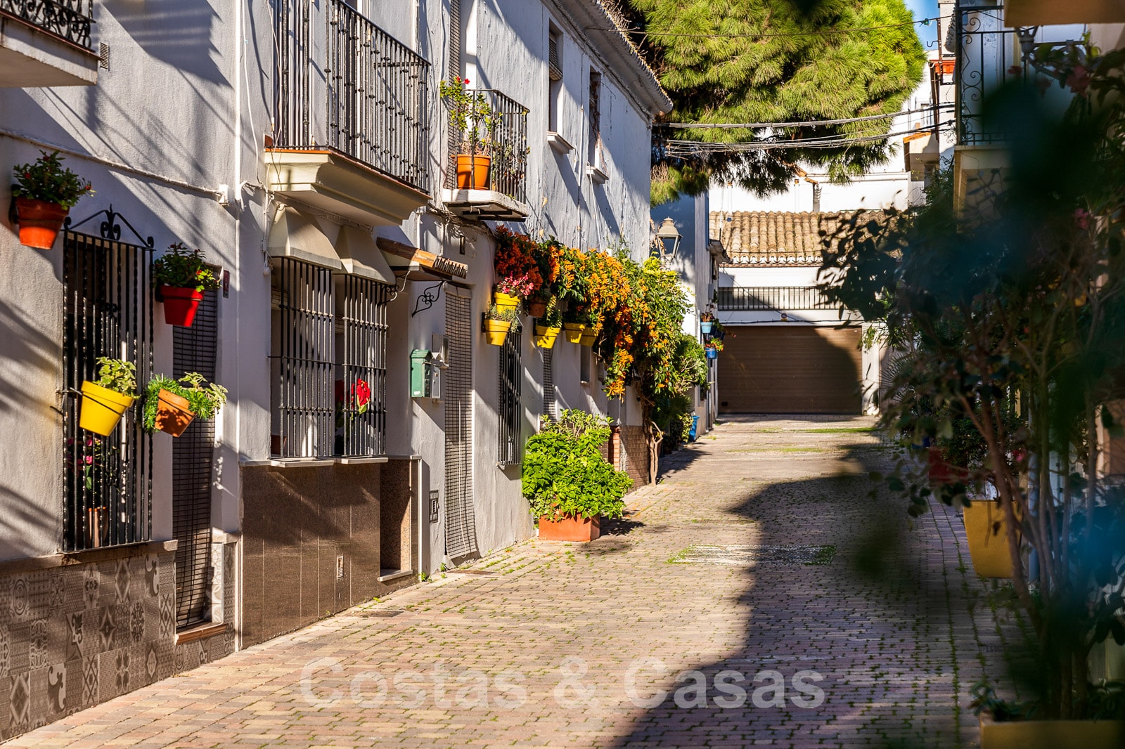 Situada en una tranquila y pintoresca calle empedrada en el centro histórico de Estepona.