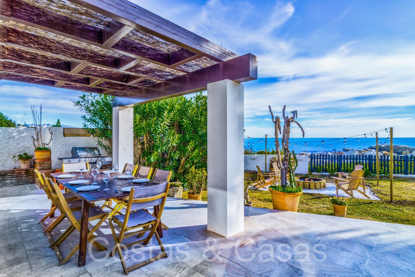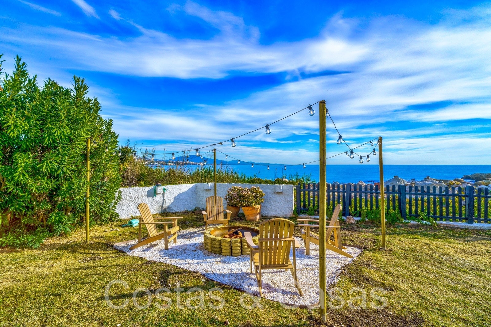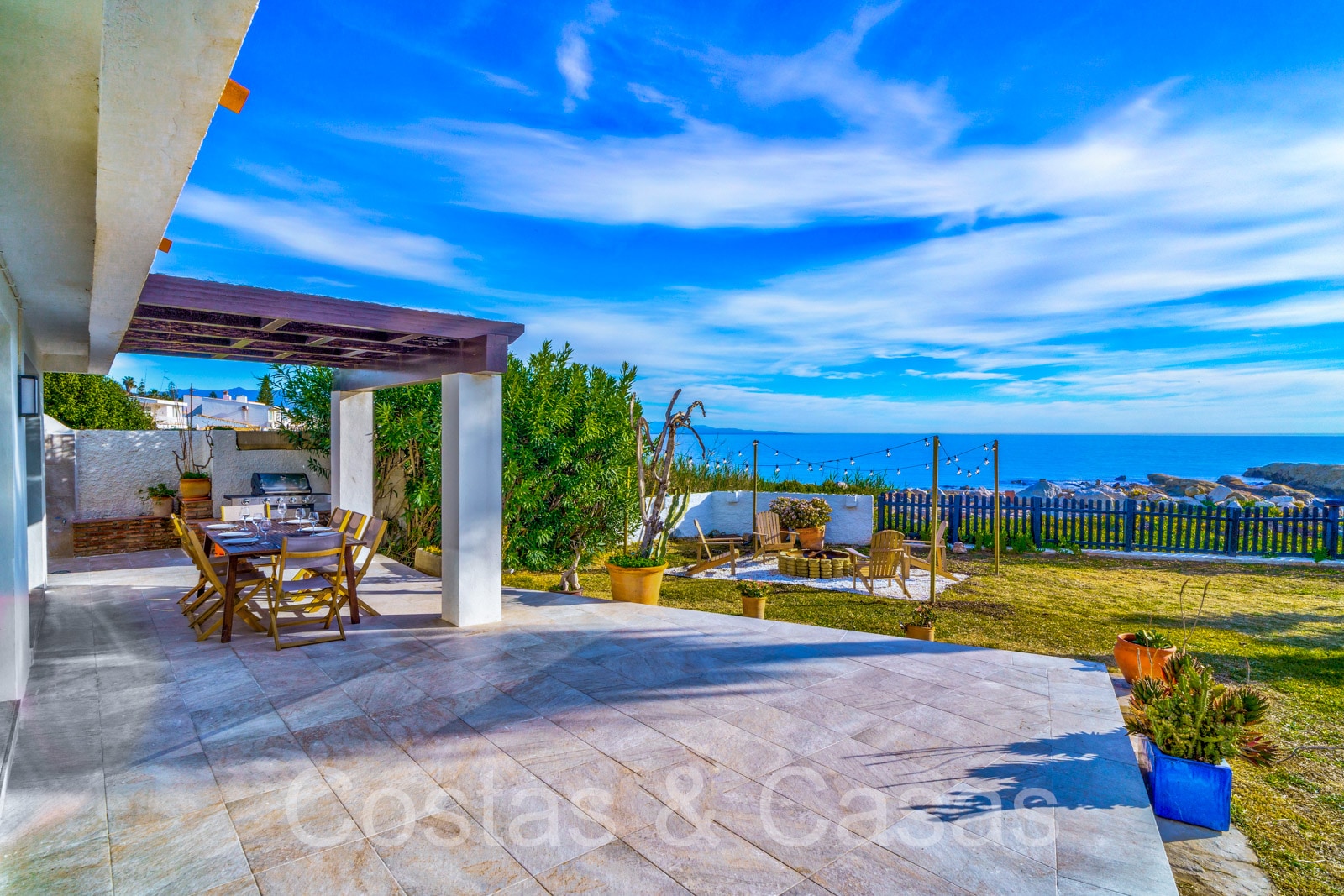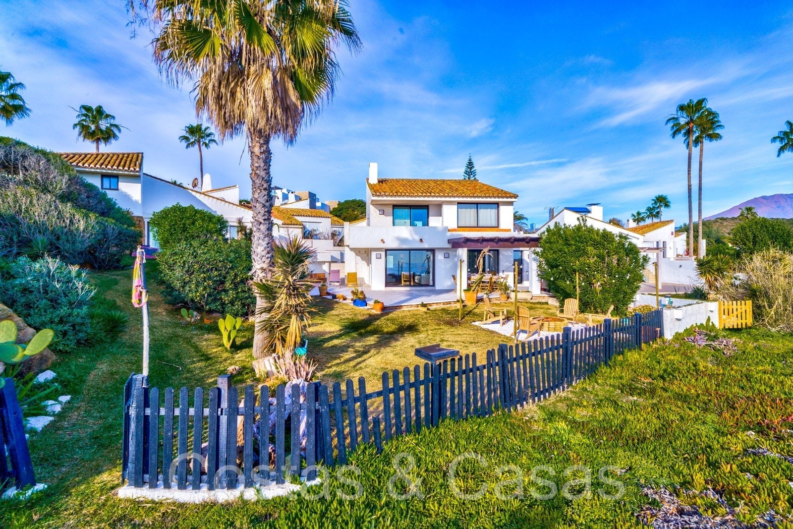 Encantadora villa reformada en primera línea de playa con vistas frontales al mar en venta en Estepona Oeste