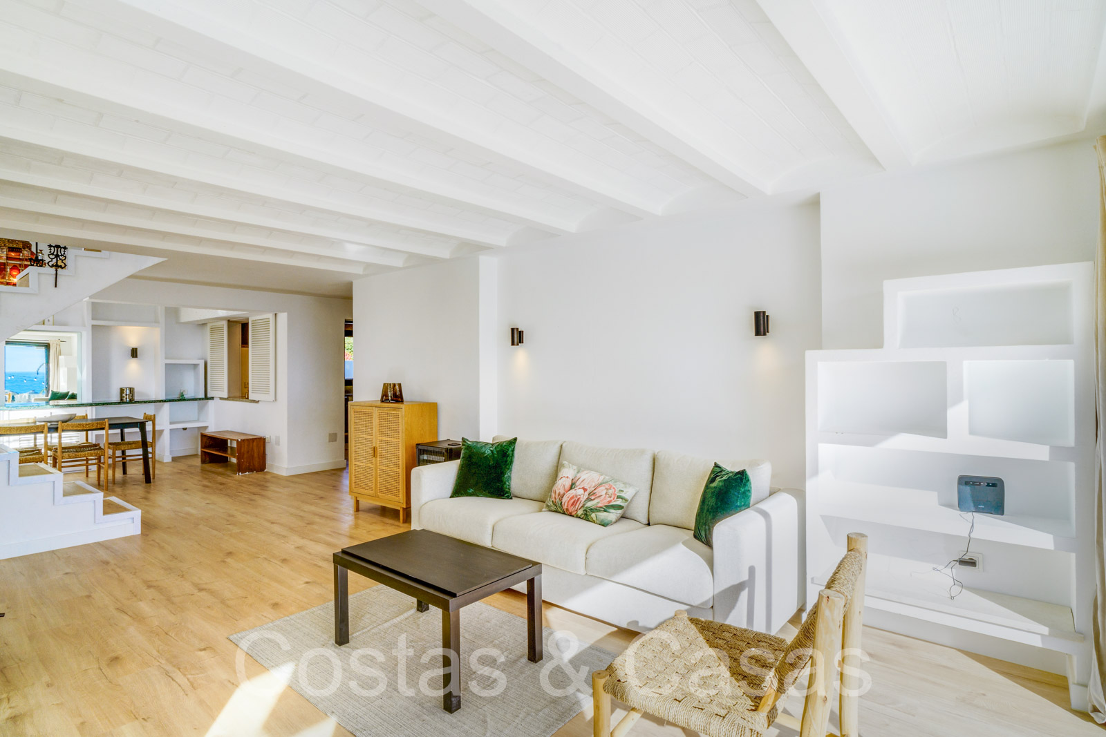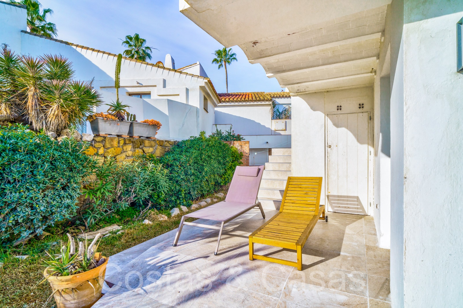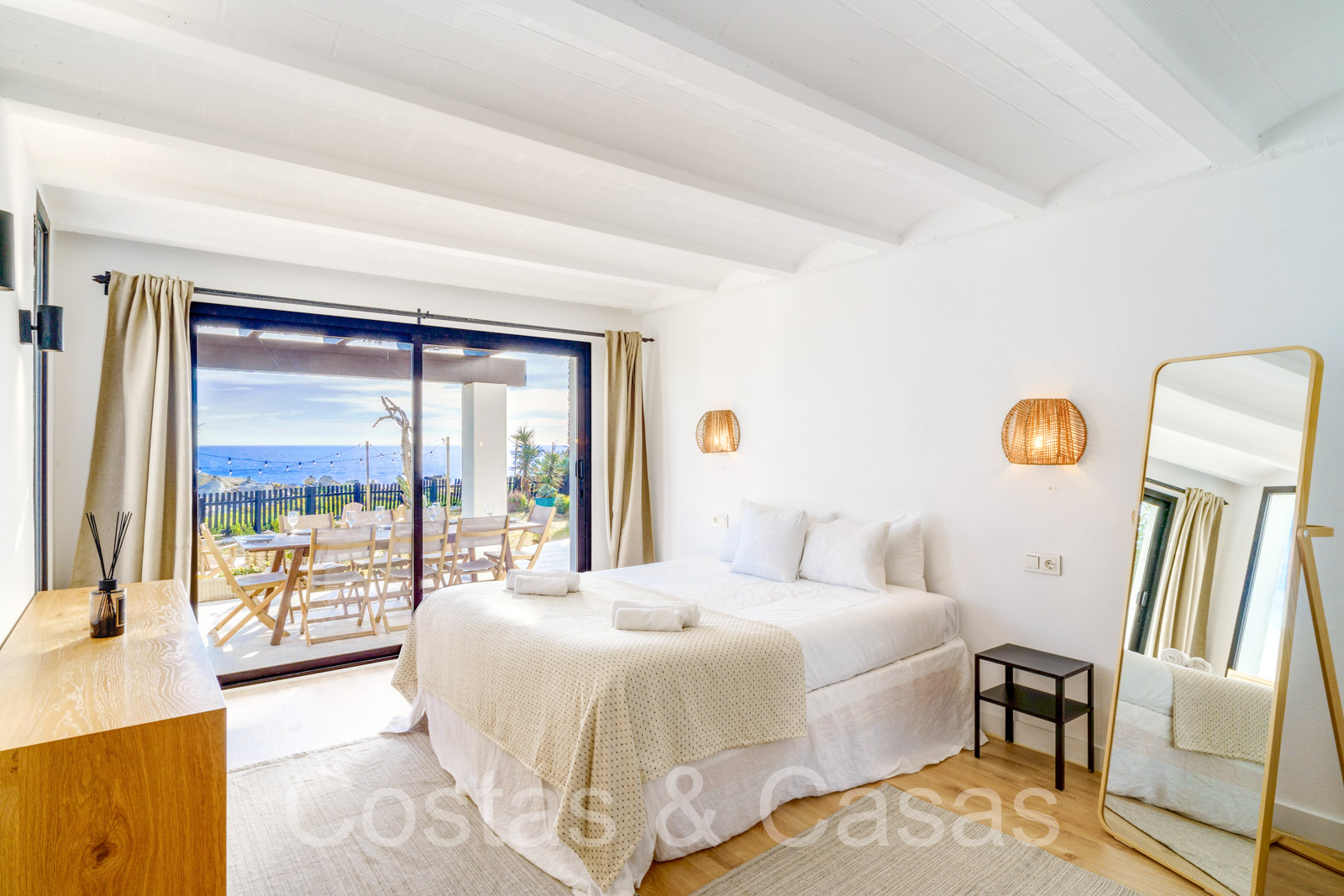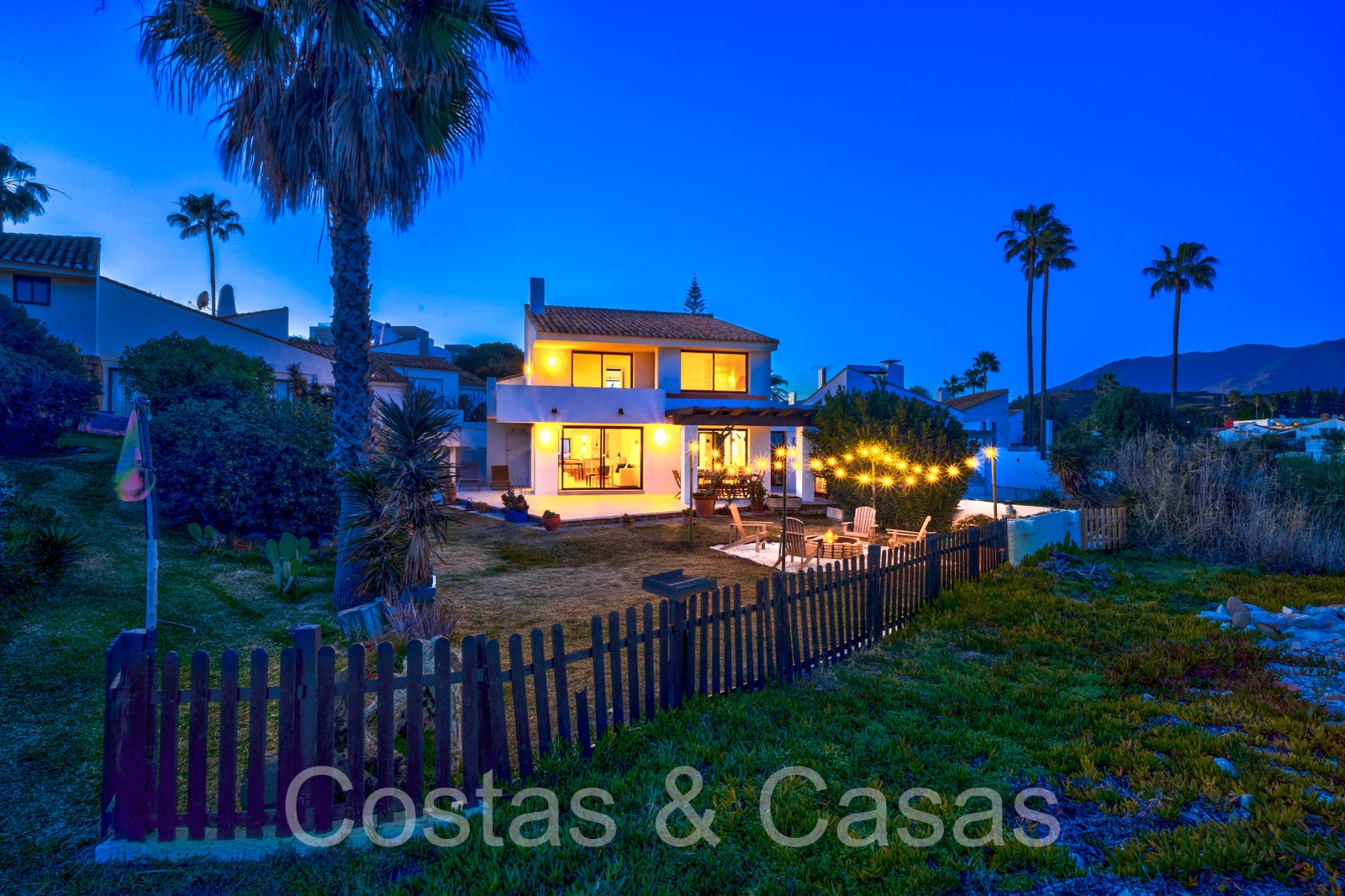 Encantadora villa reformada en primera línea de playa con vistas frontales al mar en venta en Estepona Oeste