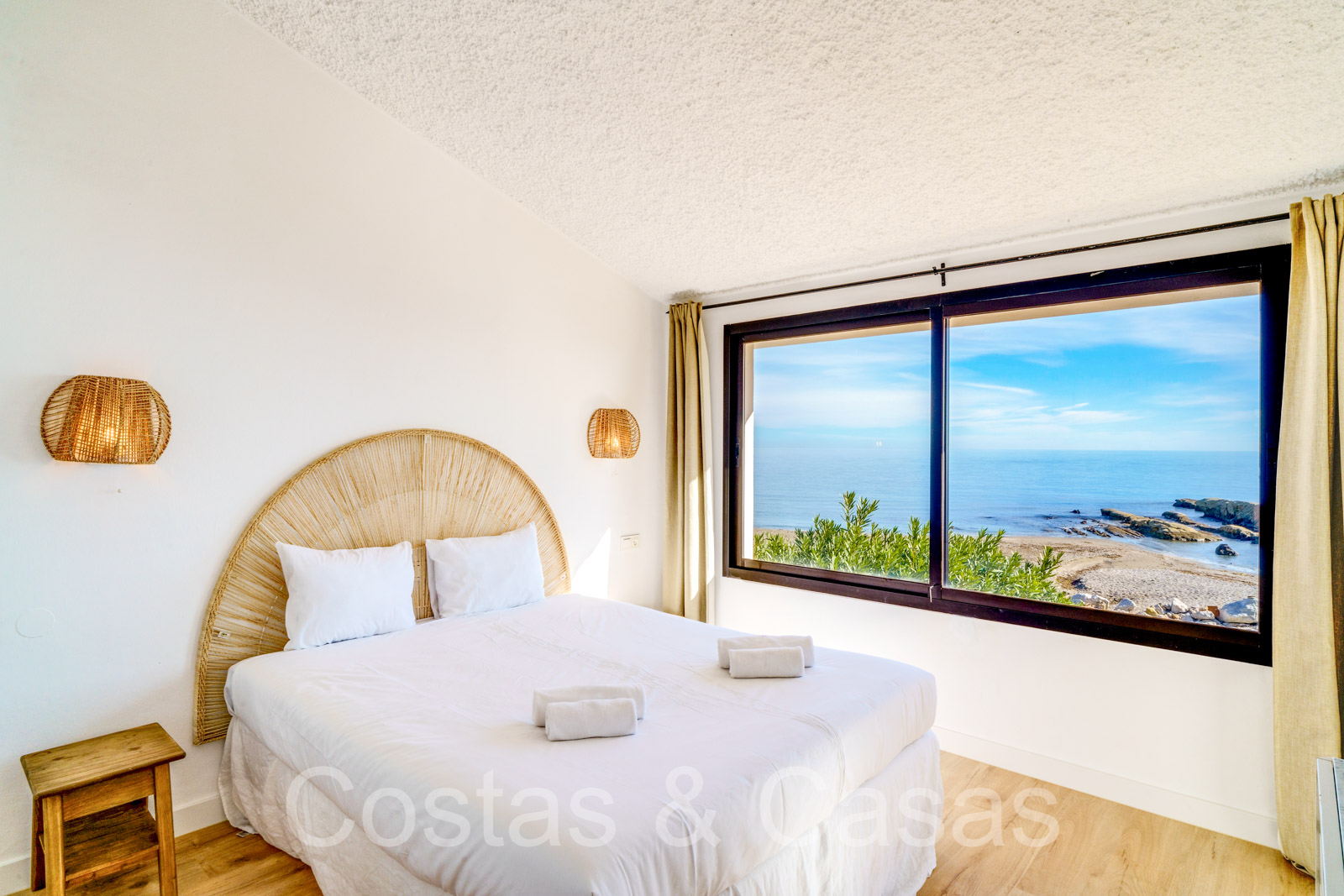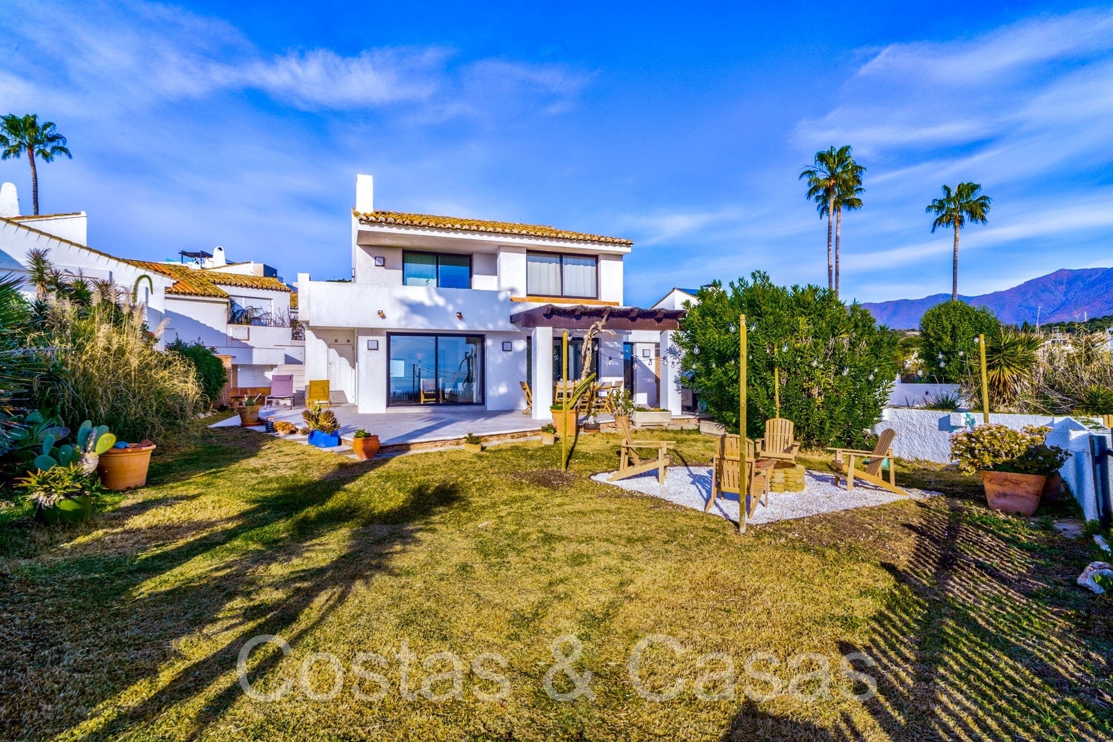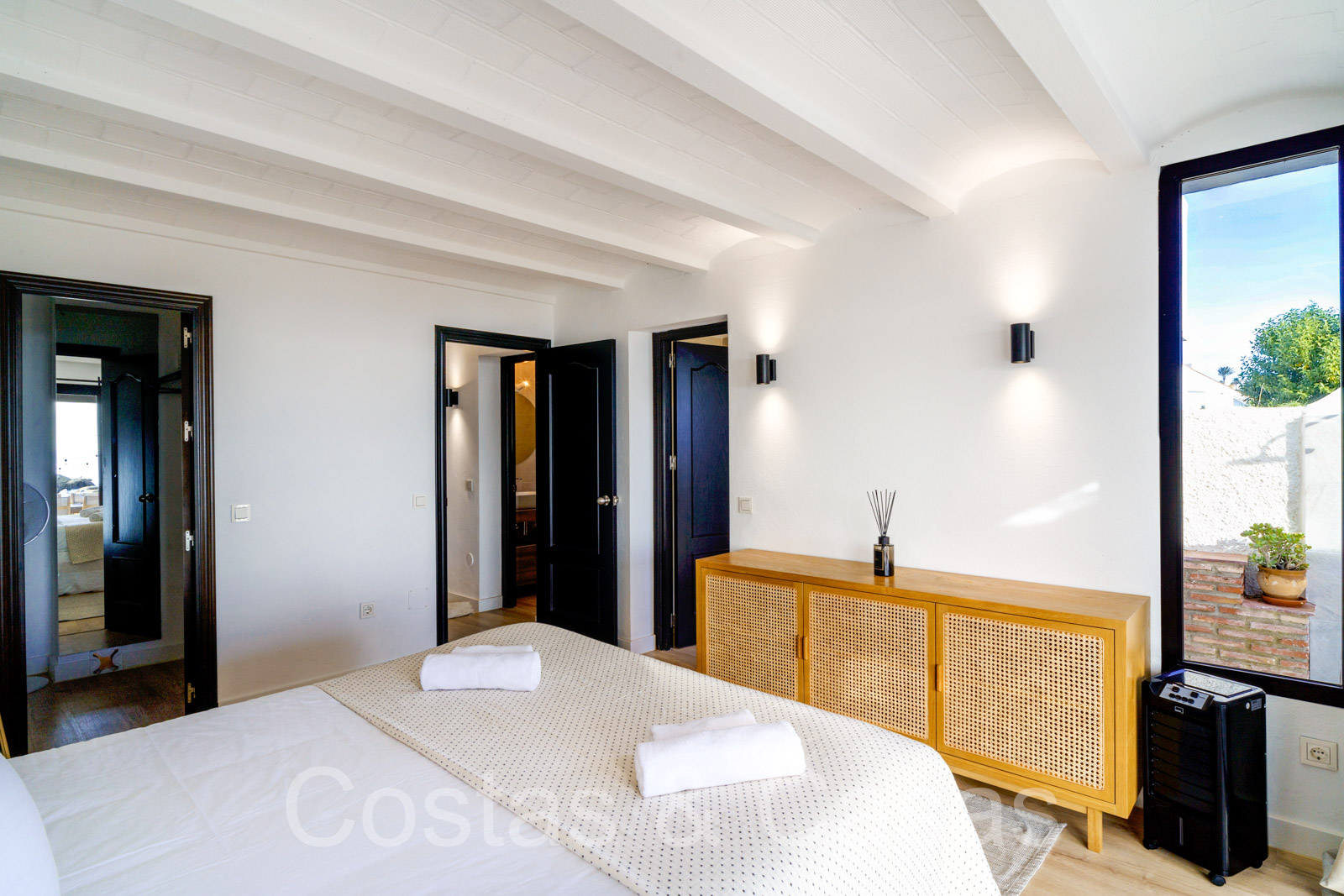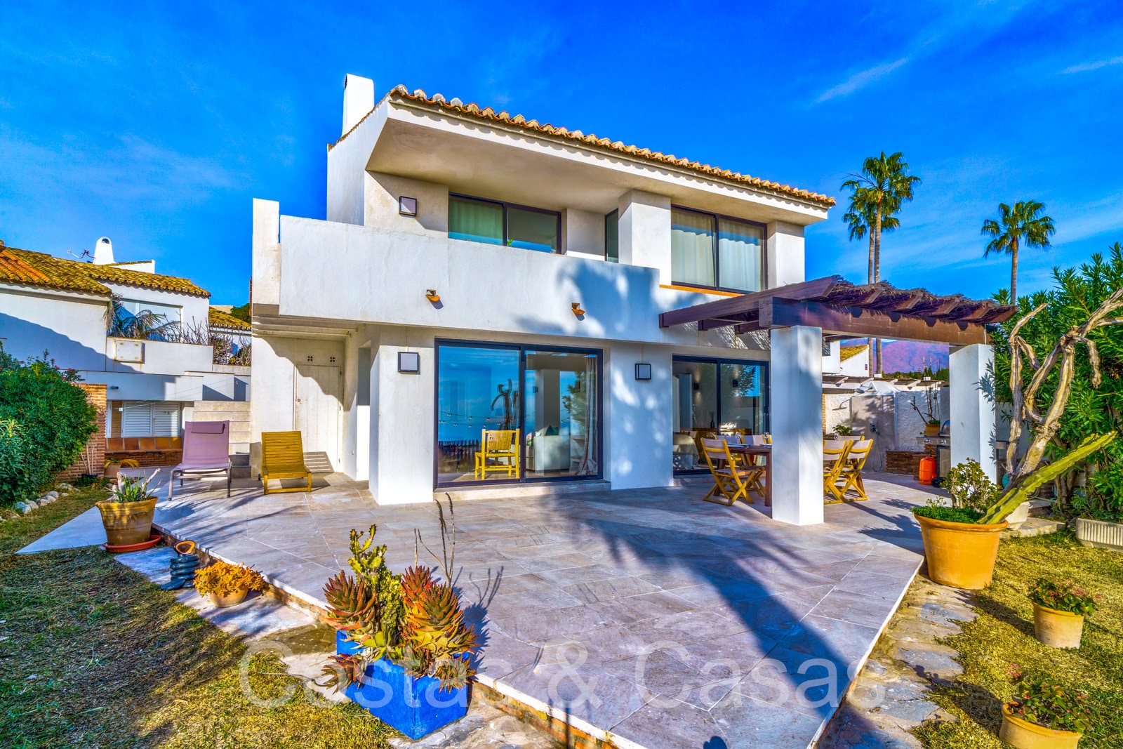 Encantadora villa reformada en primera línea de playa con vistas frontales al mar en venta en Estepona Oeste