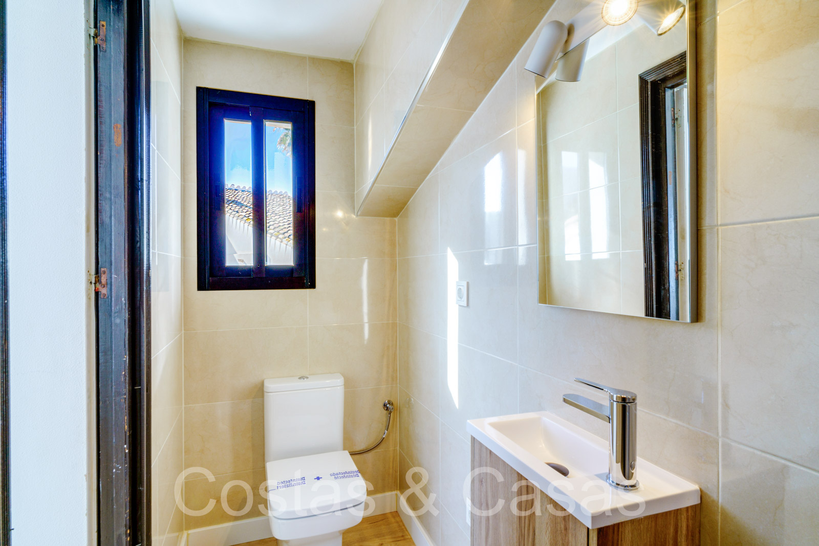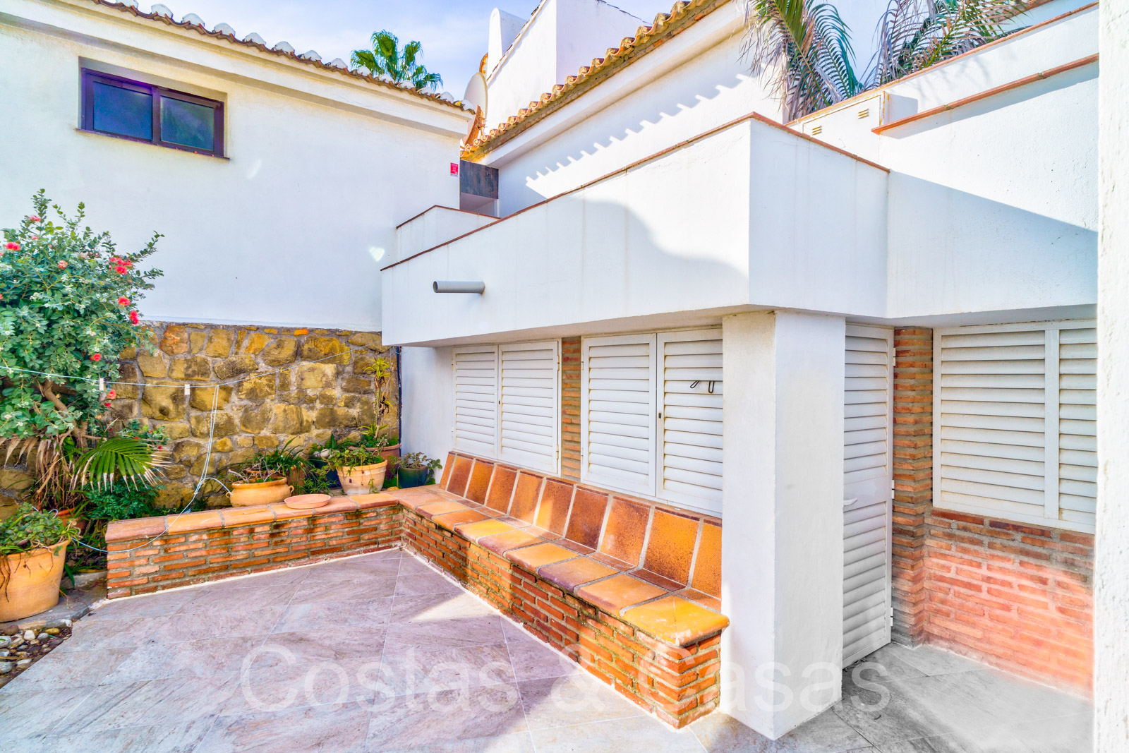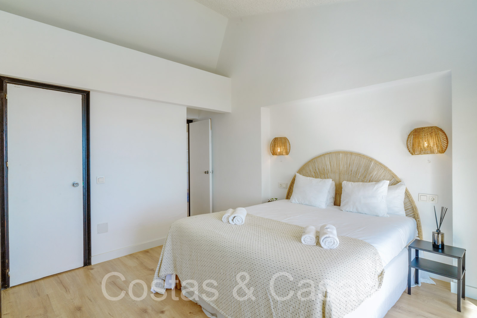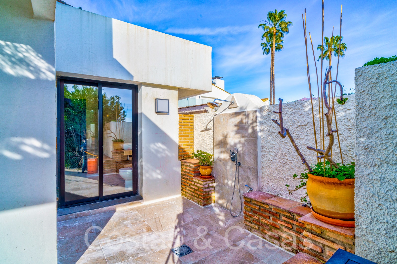 Encantadora villa reformada en primera línea de playa con vistas frontales al mar en venta en Estepona Oeste