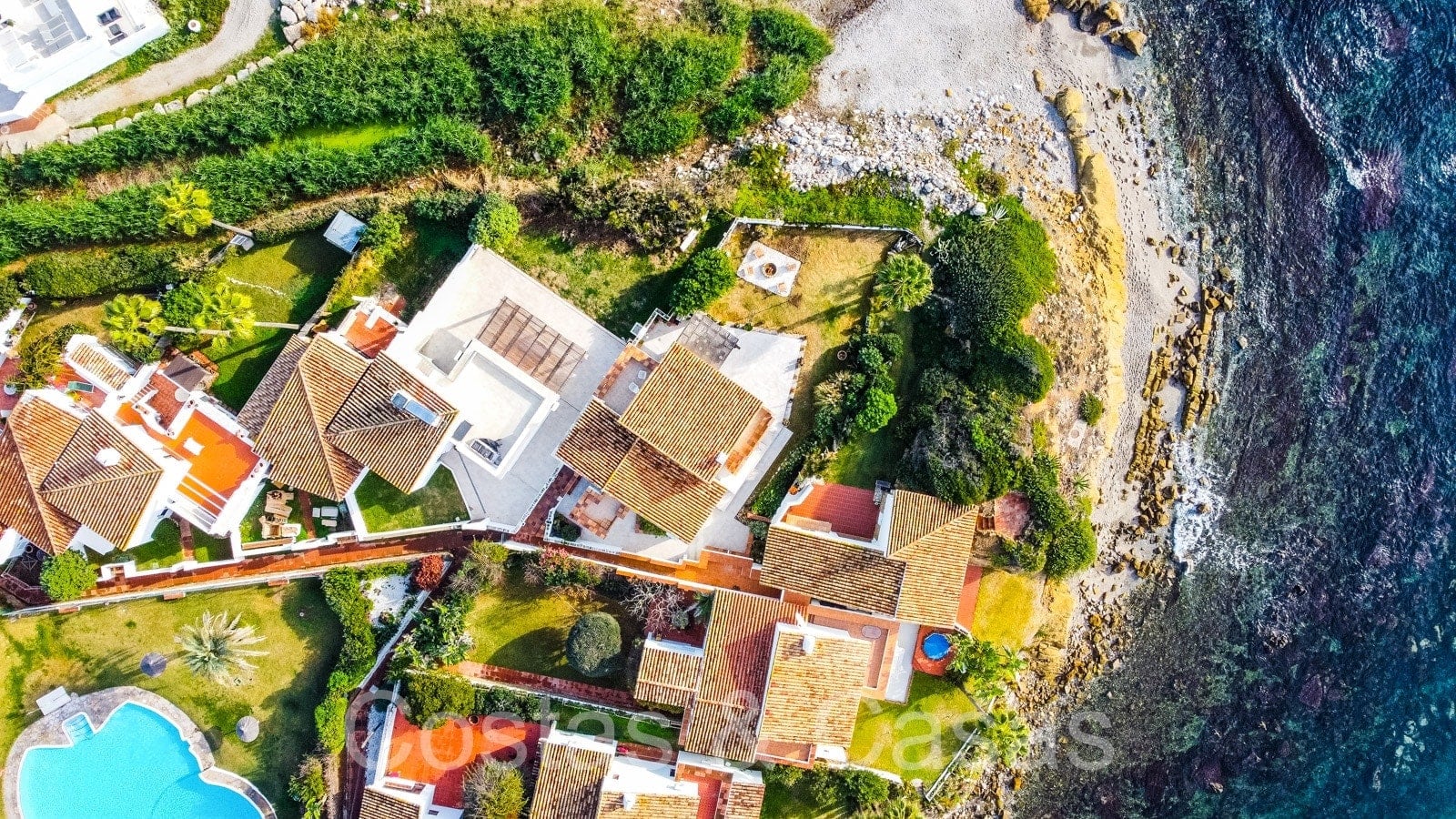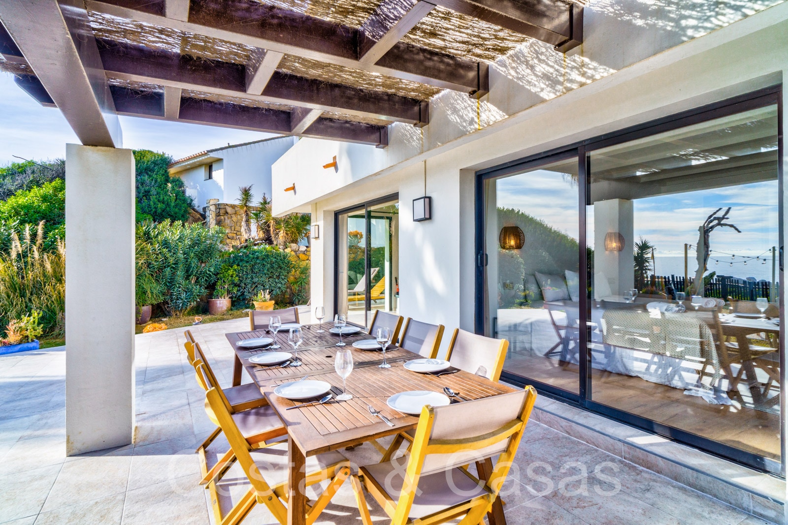 Parcela llana, junto a la playa. Atractivo espacio exterior con una amplia terraza, una pérgola anexa que proporciona un comedor exterior a la sombra y una zona de barbacoa. Una cuidada extensión de césped se realza con una acogedora zona de asientos con el Mediterráneo como telón de fondo. Orientación sur.