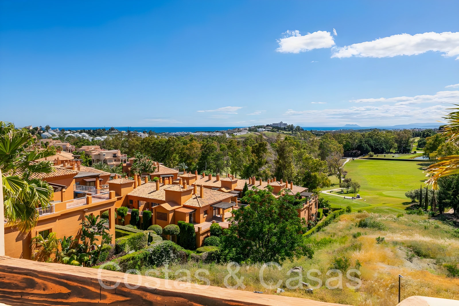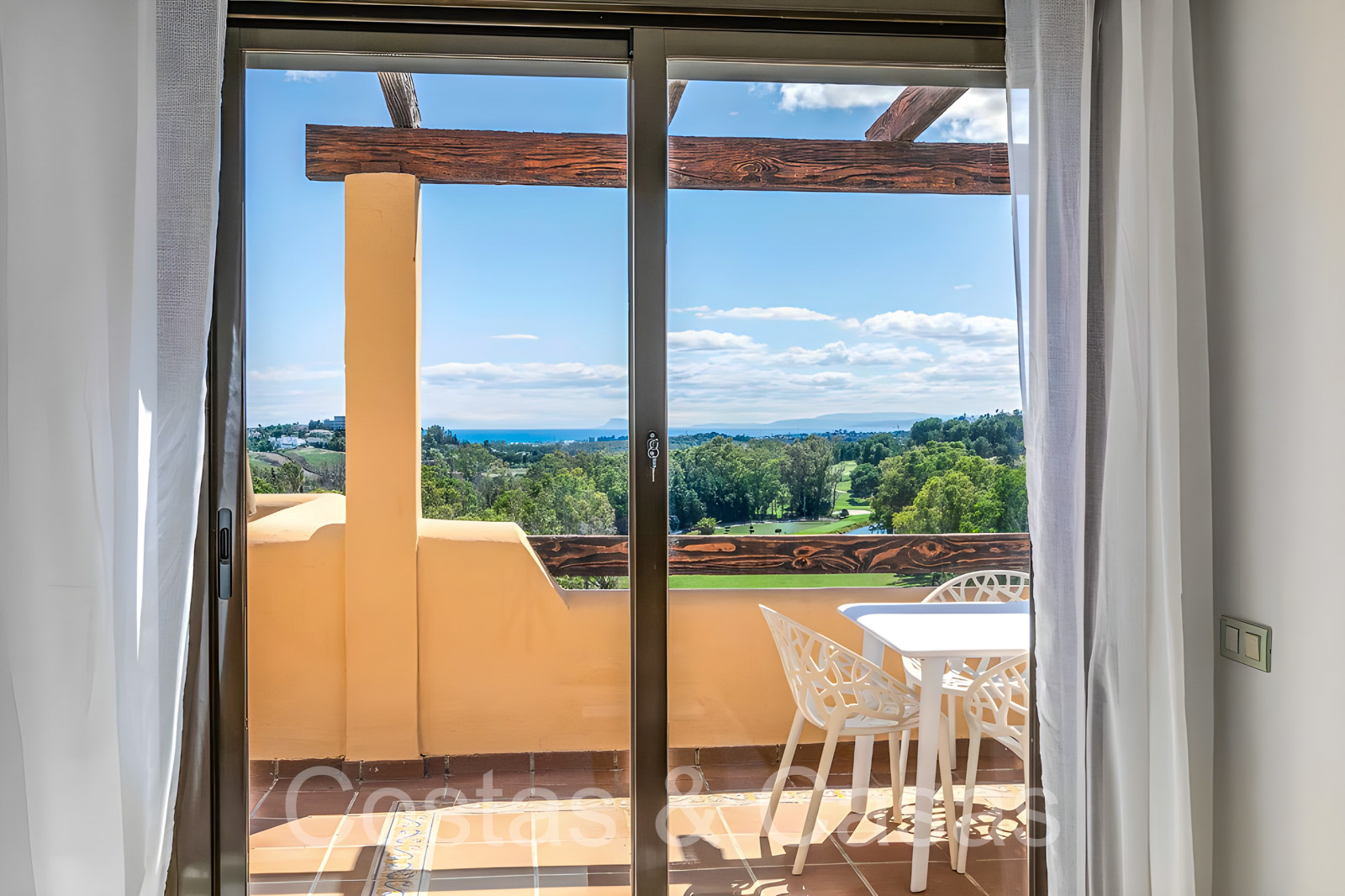 Ático en el 2a planta. Complejo construido en estilo arquitectónico andaluz. Orientación suroeste. Terrazas soleadas donde disfrutar de una hermosa vista al campo de golf, el paisaje de montaña, Gibraltar y el Mar Mediterráneo. Luminoso salón con sala de TV y comedor integrado, que da directamente a la terraza. Cocina independiente totalmente equipada con lavadero independiente. 2 dormitorios, 2 baños. El dormitorio principal tiene baño en suite y vestidor. Trastero. Garaje subterráneo para 2 coches.