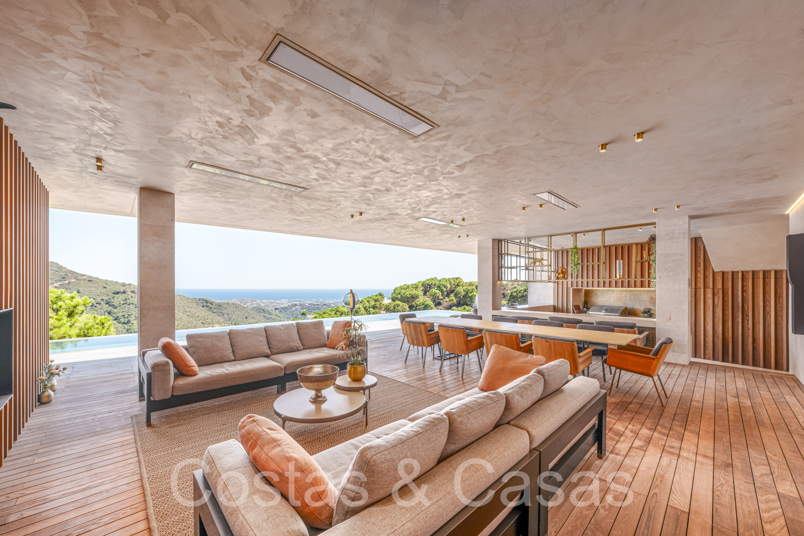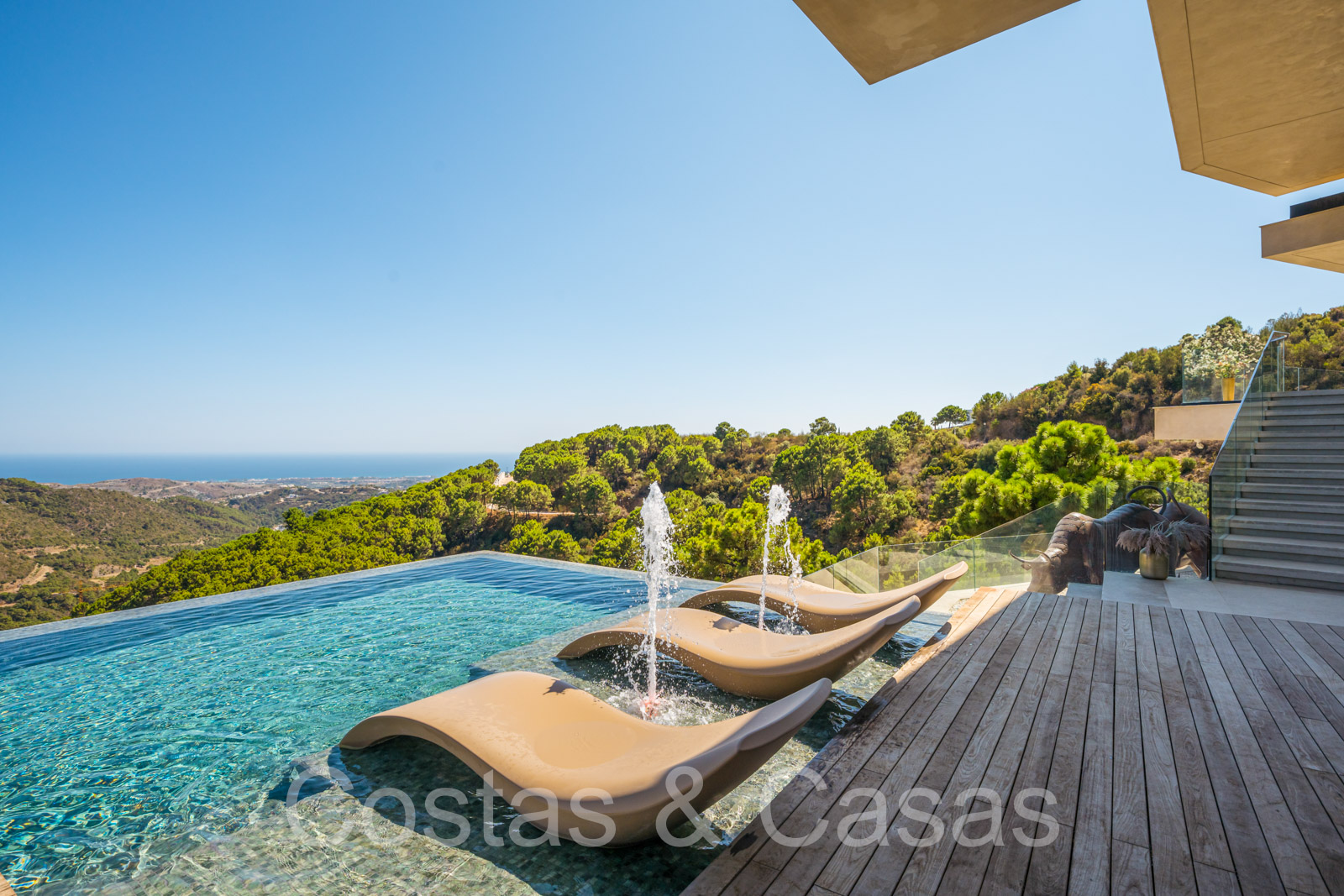 Situada en una parcela extensa y elevada de más de 5.000 m² enclavado en un entorno exuberante y maduro. Impresionante piscina desbordante con fuentes y tumbonas integradas. Varias terrazas cubiertas y descubiertas para disfrutar del aire libre en cualquier circunstancia. Vistas panorámicas del paisaje circundante, sobre el valle verde hacia el mar Mediterráneo.