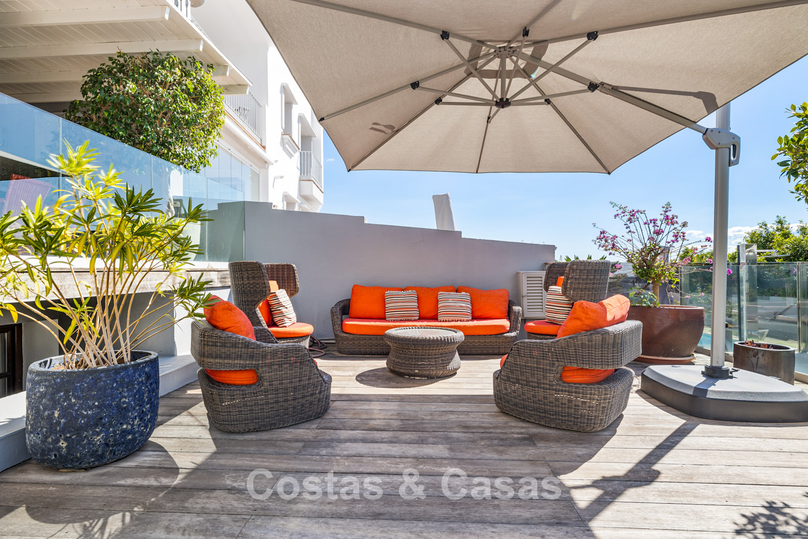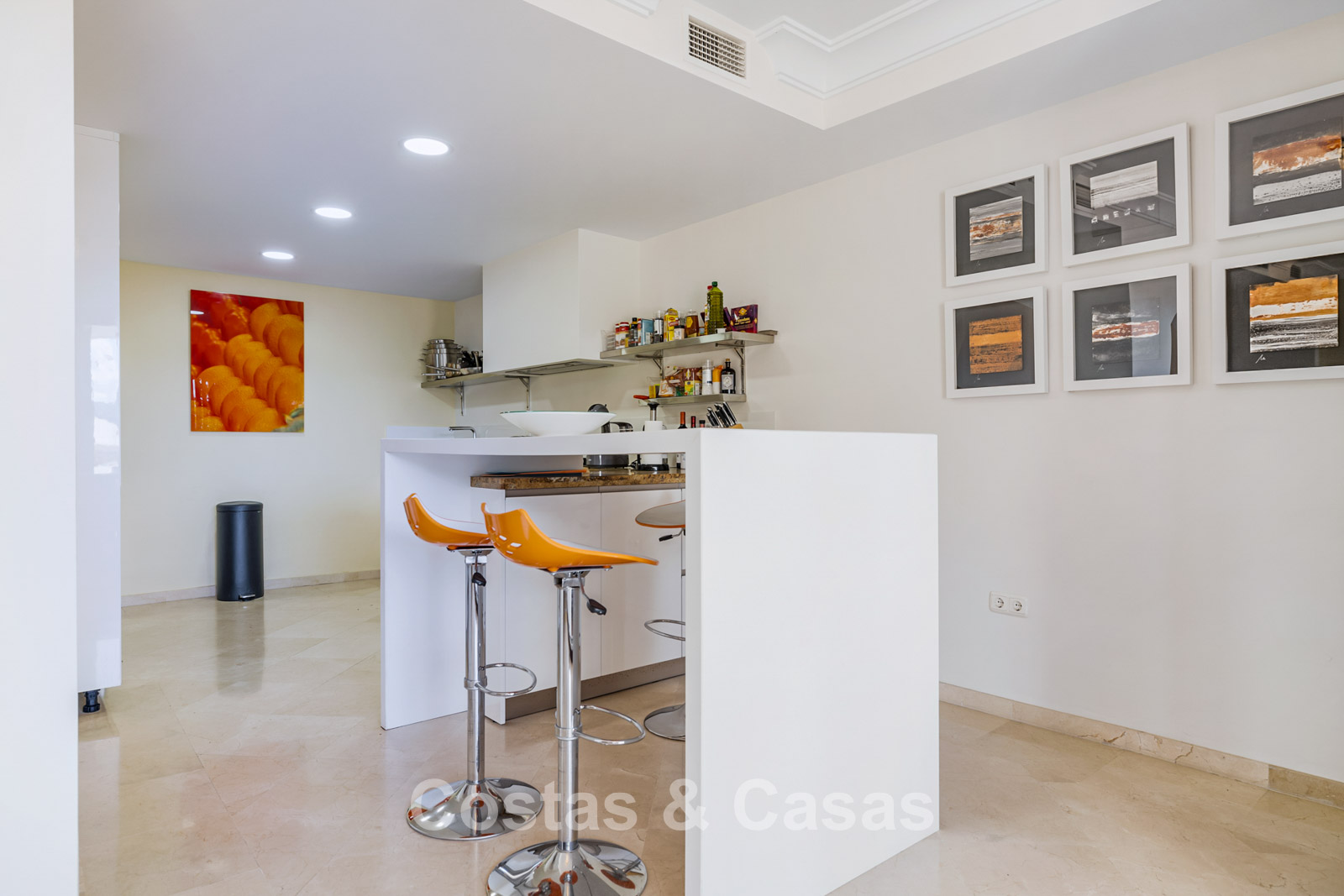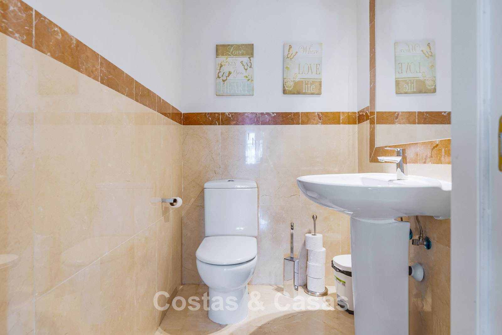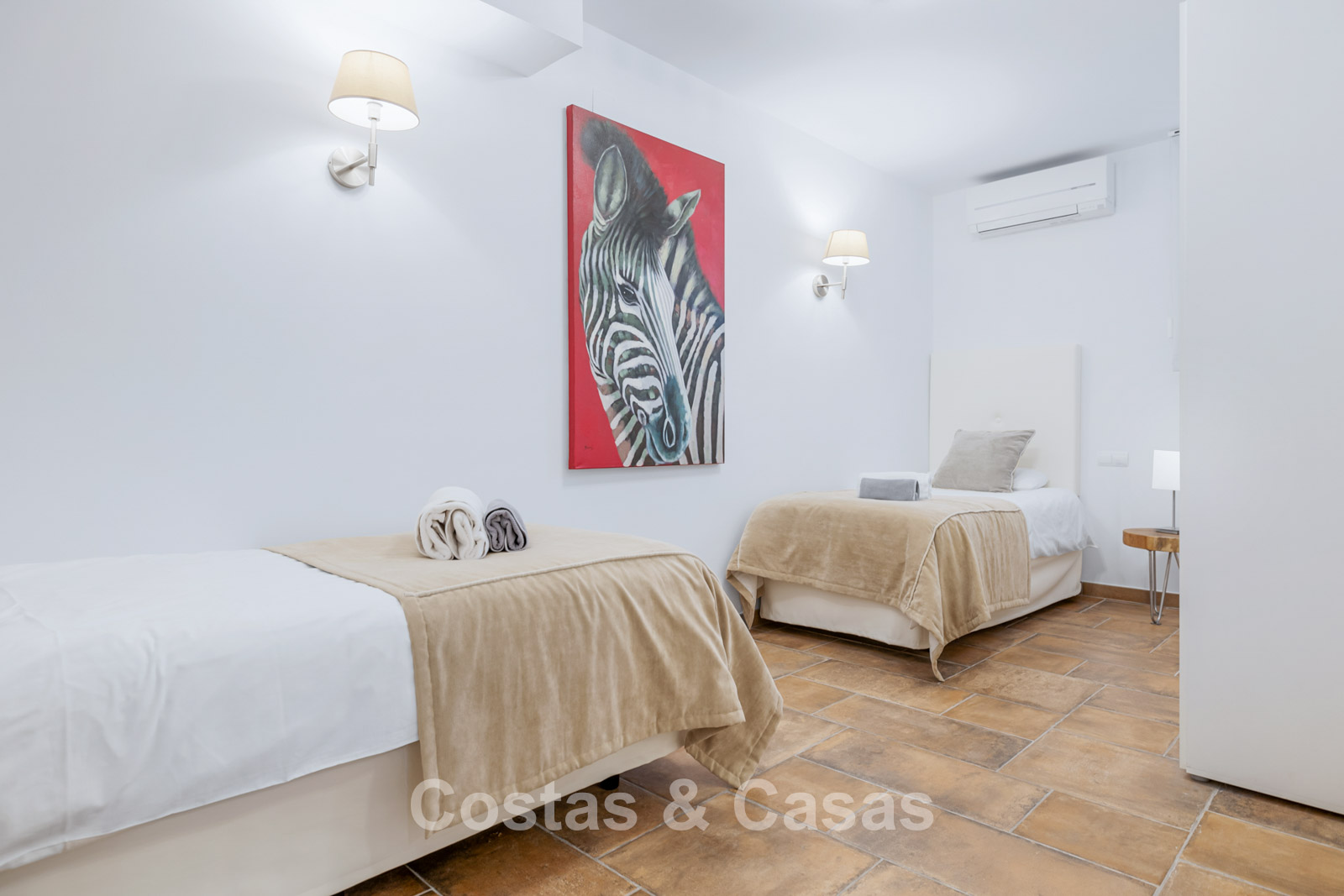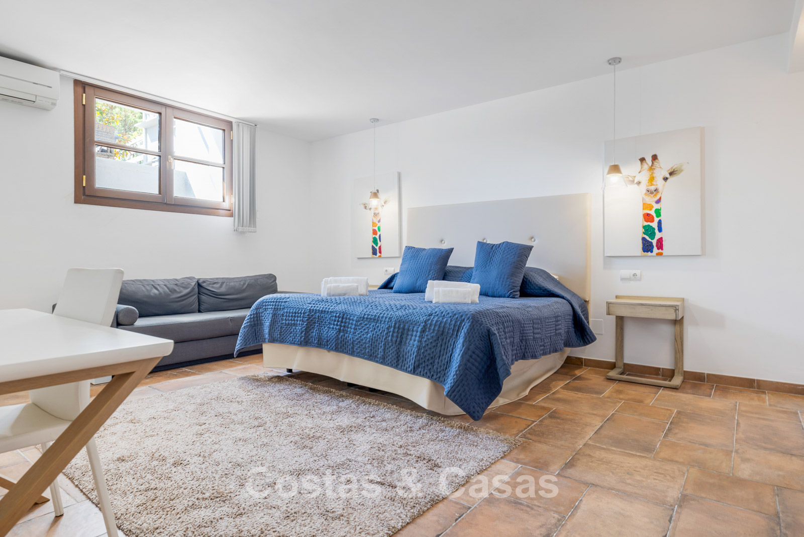 Casa adosada con un encanto andaluz atemporal. Recientemente reformada parcialmente con materiales de alta calidad. Situada al suroeste. Una terraza cubierta ofrece zona de comedor y se abre a un patio amplio y soleado. Piscina privada rodeada de tumbonas. Una terraza con pérgola está equipada con una cocina al aire libre, una zona de barbacoa y un comedor al aire libre. Amplias vistas al paisaje montañoso y al mar Mediterráneo. Los grandes ventanales dejan entrar abundante luz natural, creando una casa amplia y luminosa. Sala de estar de concepto abierto con sala de TV junto a la chimenea. Práctica cocina abierta con electrodomésticos Bosch y barra de desayuno. 5 dormitorios, 4 baños y aseo independiente. Suelos de mármol. Cuarto de lavado. Garaje interior para un coche.