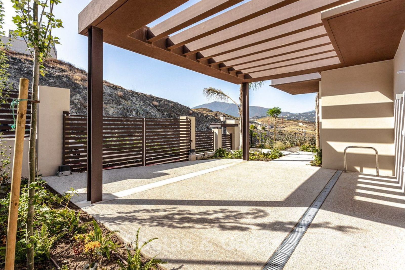 Parcela cerrada en esquina, en una posición elevada. Precioso jardín privado con césped impecablemente cuidado. Piscina rodeada de una terraza. La zona exterior con amplias terrazas invita a disfrutar plenamente del agradable clima mediterráneo. Una azotea ajardinada ofrece un espacio adicional para relajarse y unas vistas espectaculares. Orientación este/sureste. Espectaculares vistas panorámicas de la emblemática sierra de La Concha y el mar Mediterráneo.