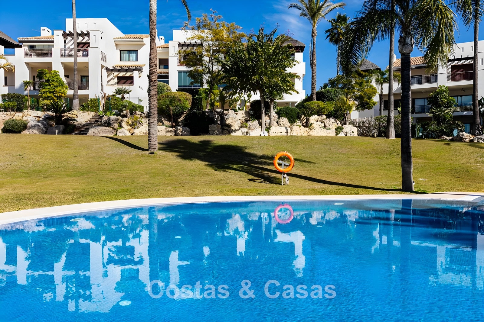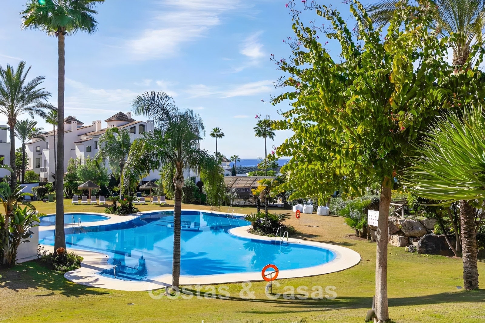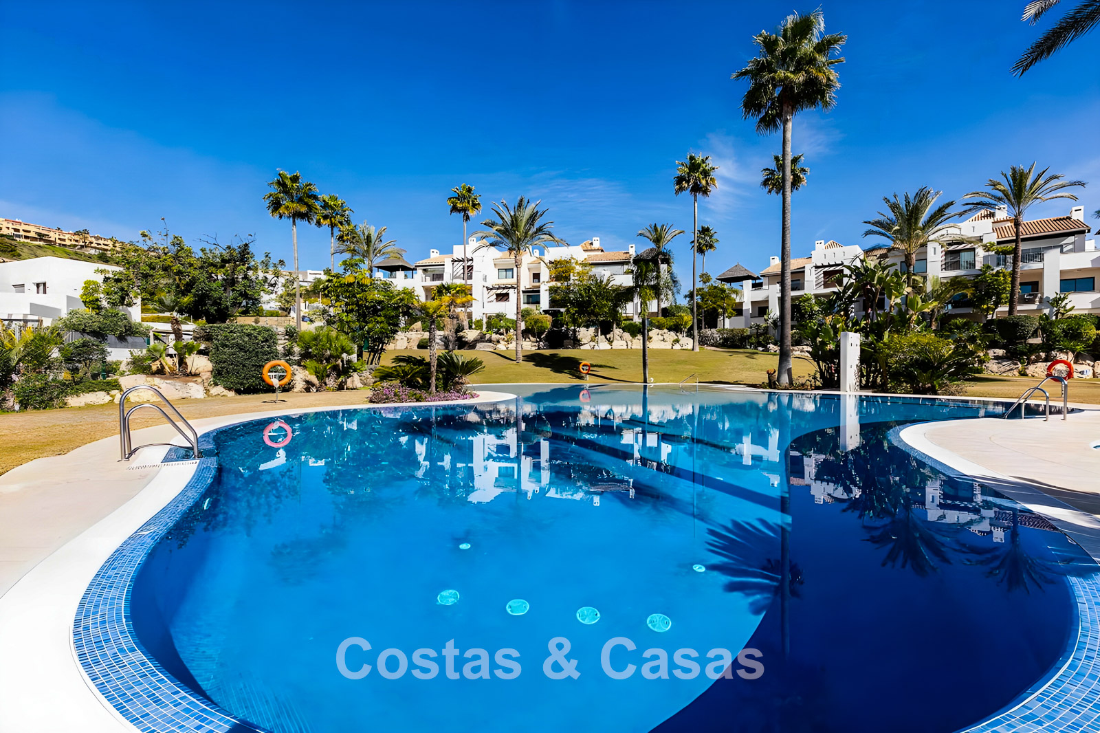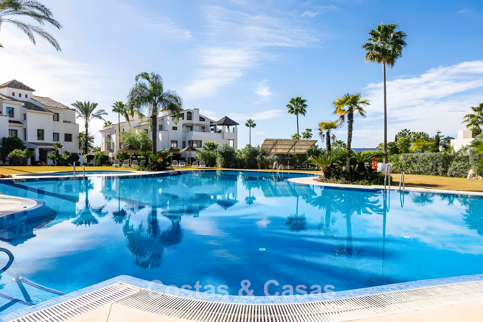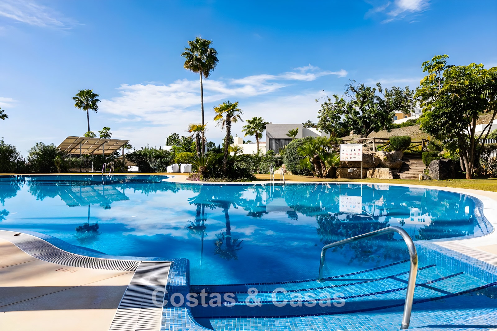 Ubicado en una urbanización exclusiva y segura en una zona privilegiada de la Costa del Sol. A un paso de varios campos de golf de renombre, supermercados, clubes deportivos y todos los servicios. A unos 10 minutos en coche de la costa, a 15 minutos en coche del encantador pueblo de montaña de Benahavis, famoso por sus restaurantes y gastronomía. El centro de Estepona se encuentra a sólo 15 minutos, San Pedro está a 10 minutos en coche, ideal para ir de compras, playa o restaurantes. El aeropuerto de Málaga está a 50 minutos en coche. El complejo ofrece una gran piscina comunitaria y hermosos jardines.