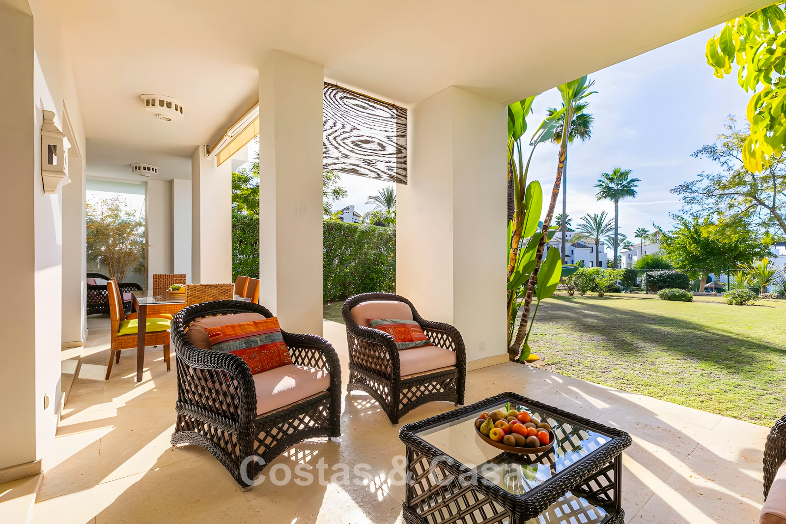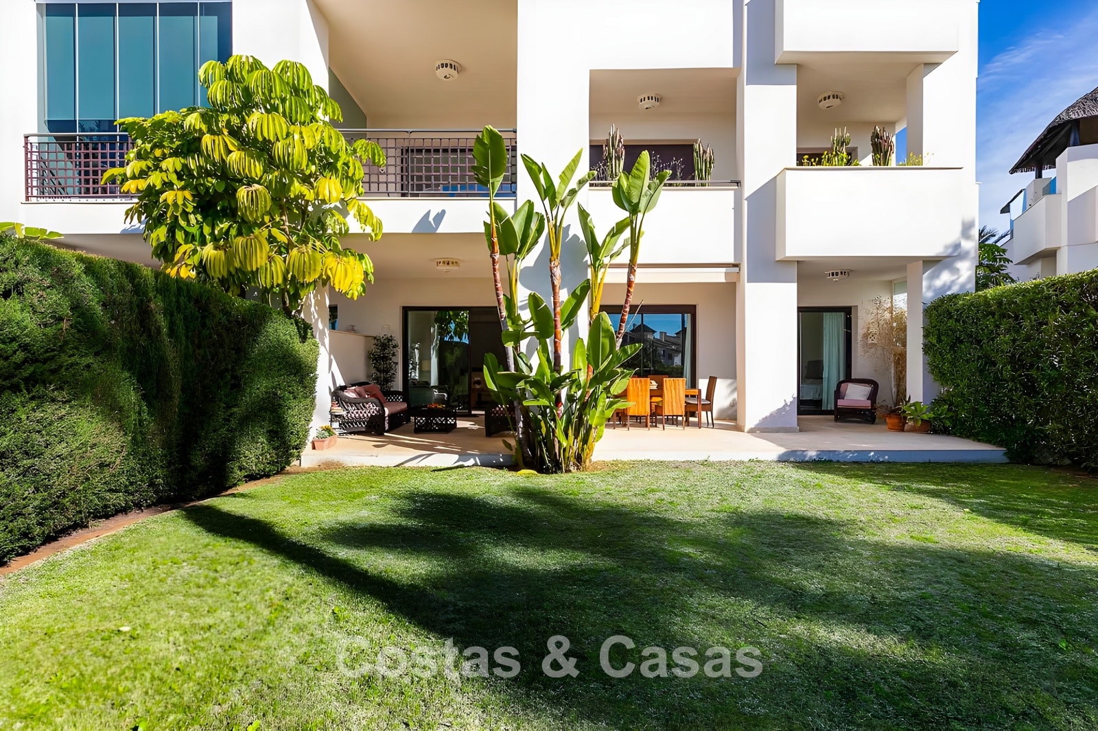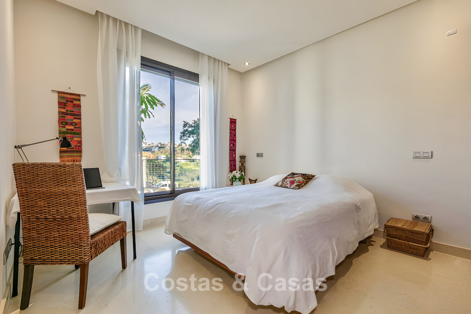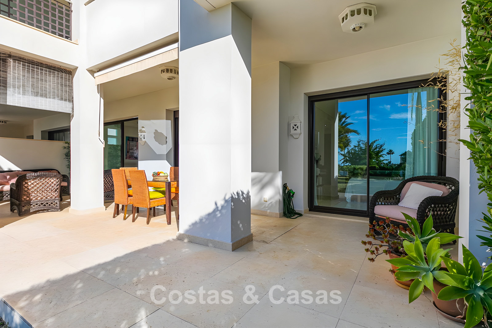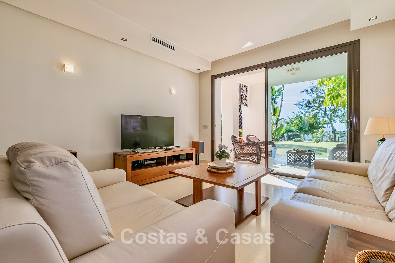 Apartamento en planta baja. Utilizando materiales de calidad y un acabado de alta calidad. Orientada al suroeste. Vista del jardín, del paisaje montañoso circundante y del mar Mediterráneo. El espacioso jardín privado de 202m² es mantenido por la comunidad y ofrece acceso directo a la gran piscina comunitaria. Las altas ventanas corredizas con perfiles empotrados en la sala de estar proporcionan abundante luz natural. Distribución de planta abierta. Amplia sala de estar con sala de TV y comedor. Cocina independiente y práctica con mucho espacio de almacenamiento, electrodomésticos Miele y un acogedor comedor. 3 dormitorios, 2 baños. La suite principal cuenta con un vestidor y un elegante baño en suite, completo con bañera de hidromasaje y ducha separada. Dos de los tres dormitorios también ofrecen acceso directo a la terraza y al jardín, lo que crea una experiencia de vida interior y exterior perfecta. Suelos de mármol. Trastero. Parking subterráneo privado.