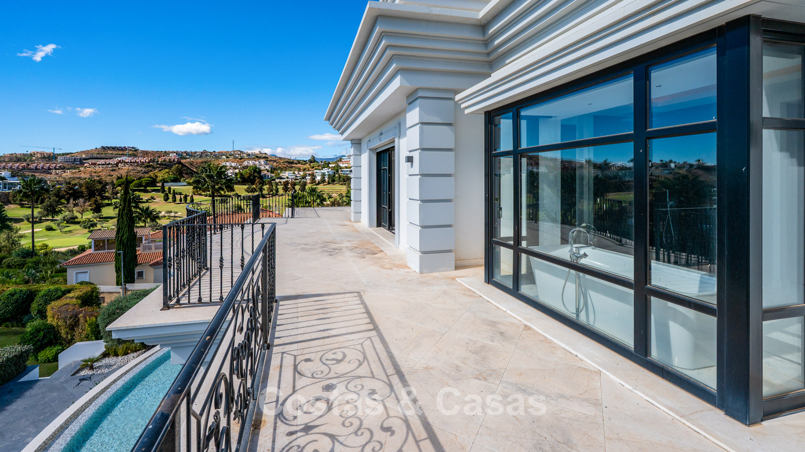 Situada en una prestigiosa zona residencial, a pocos pasos de un reconocido campo de golf, con varios de los mejores campos de golf a solo unos minutos en coche. Gran supermercado, colegio internacional y centro comercial en construcción a pocos minutos. A solo 5-15 minutos en coche de la playa, San Pedro, Puerto Banús, Marbella y Estepona, sin olvidar el hermoso pueblo gastronómico de Benahavís.
