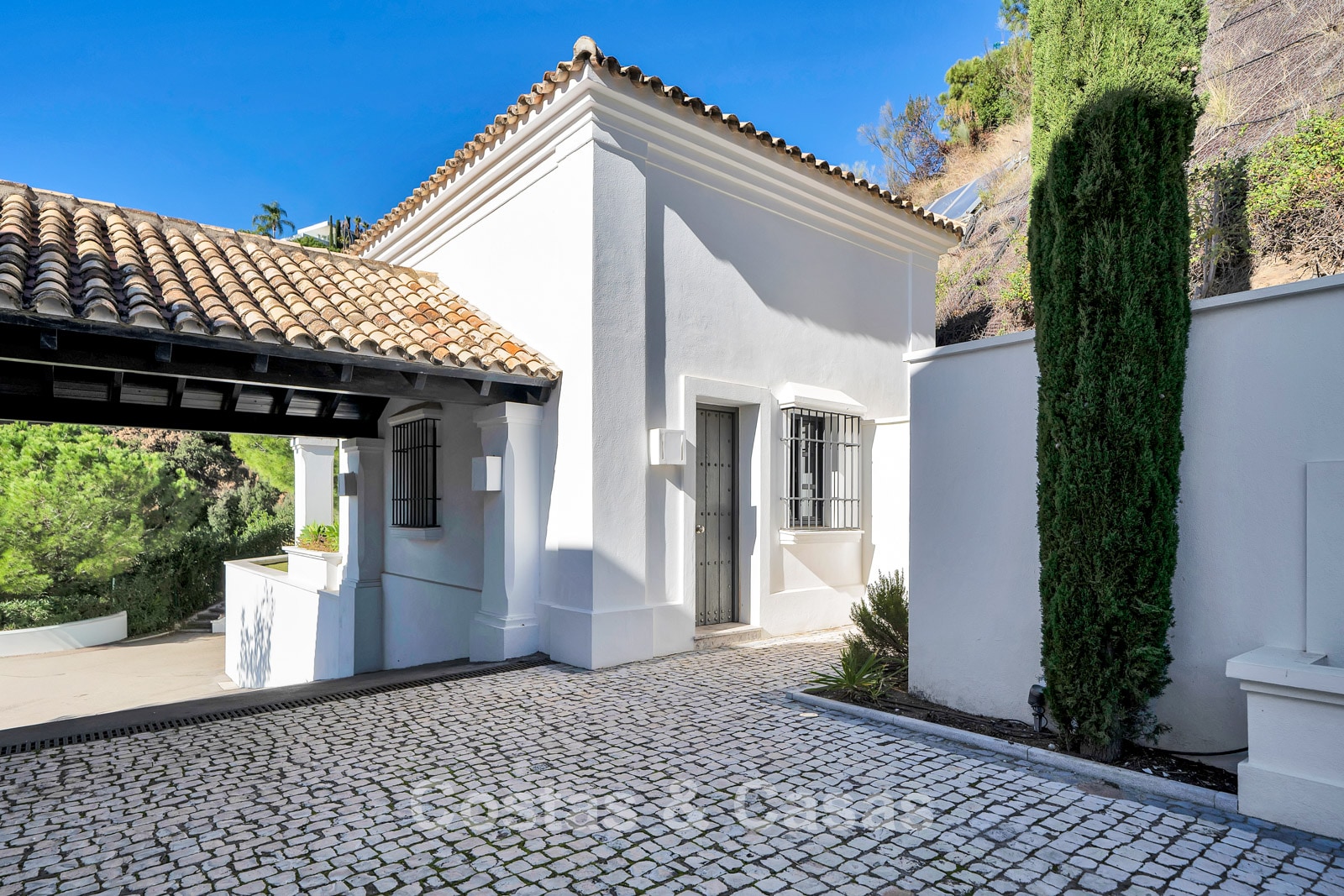 Esta villa se encuentra en un entorno tranquilo y verde dentro de una exclusiva urbanización cerrada en el municipio de Benahavís. La urbanización cuenta con seguridad permanente las 24 horas del día. La playa y todos los servicios diarios se encuentran a tan solo 15 minutos en coche, mientras que varios campos de golf de reconocido prestigio están a menos de 10 minutos.