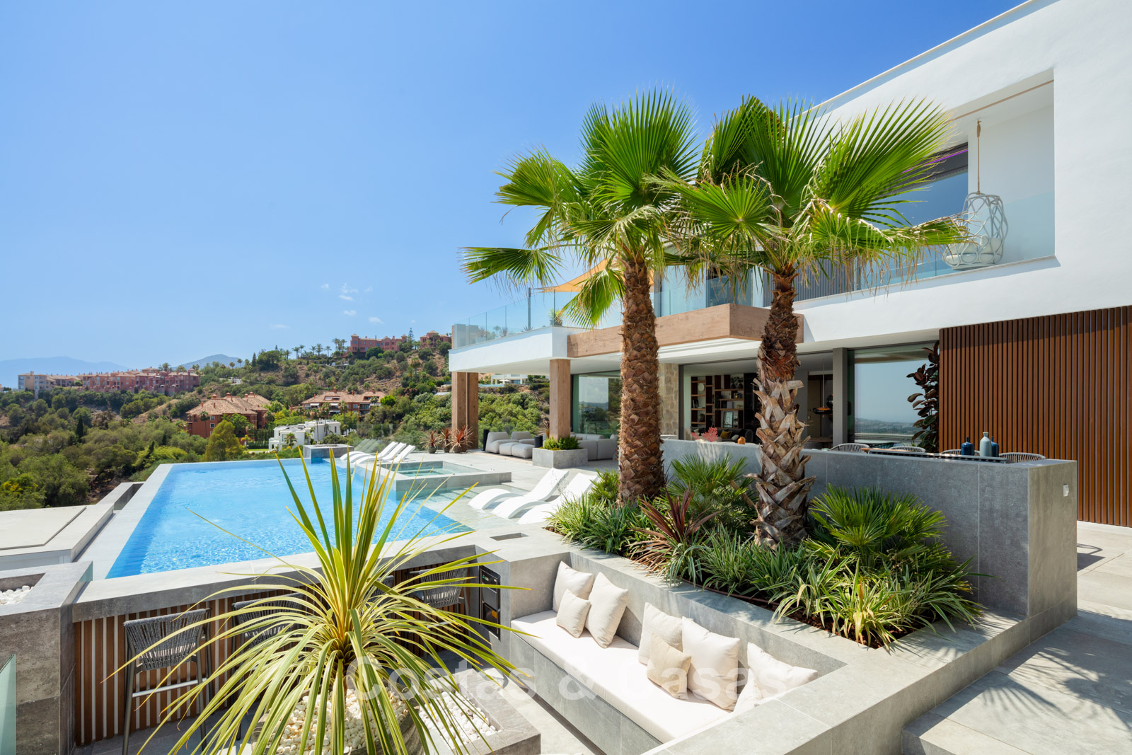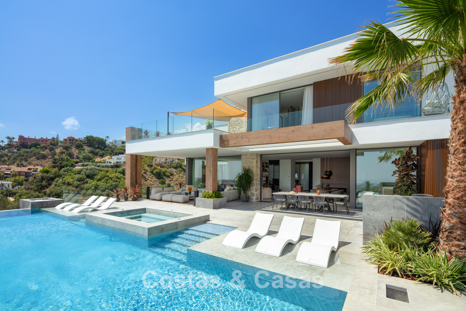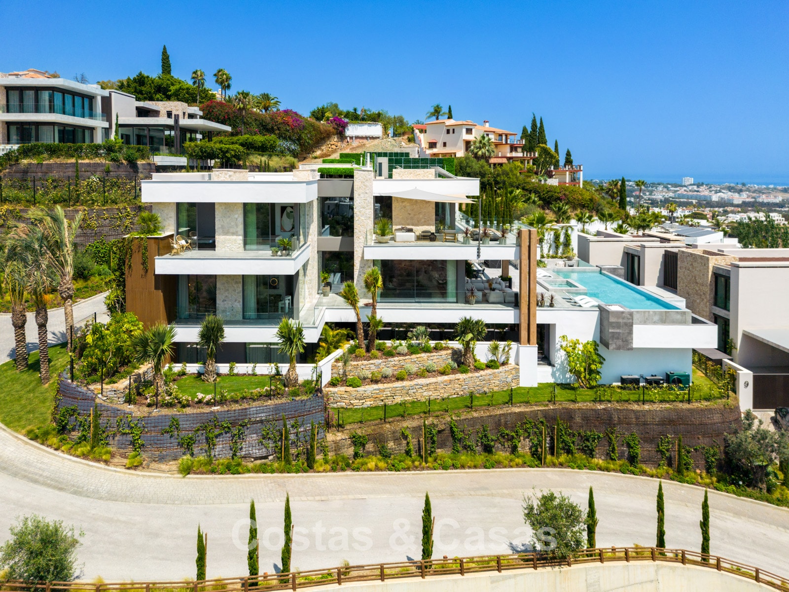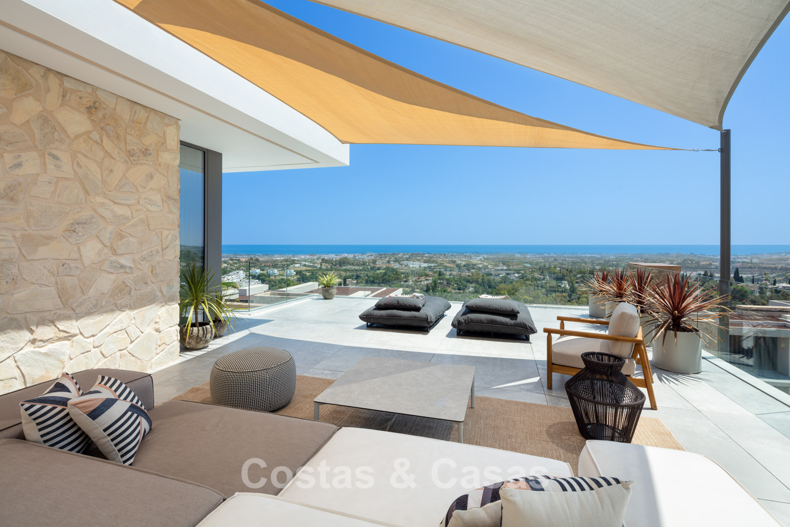 Impresionante y arquitectónica villa de lujo en venta con vistas abiertas al mar en una zona residencial elevada en las colinas de La Quinta en Marbella - Benahavis
