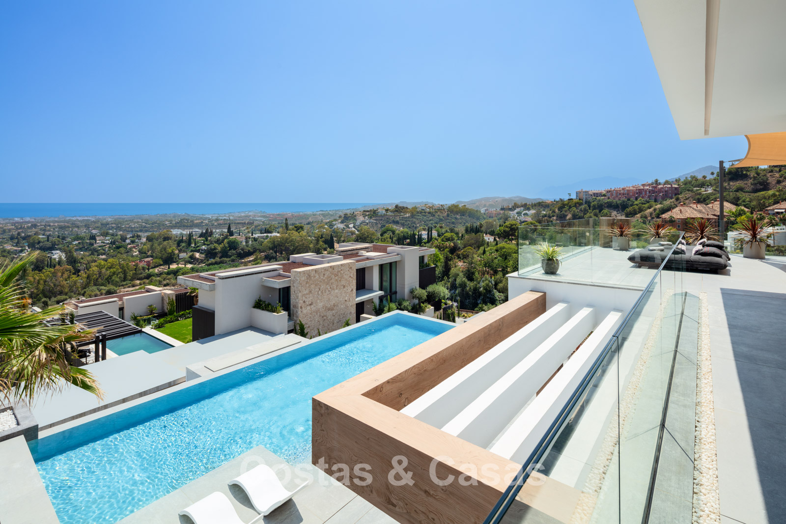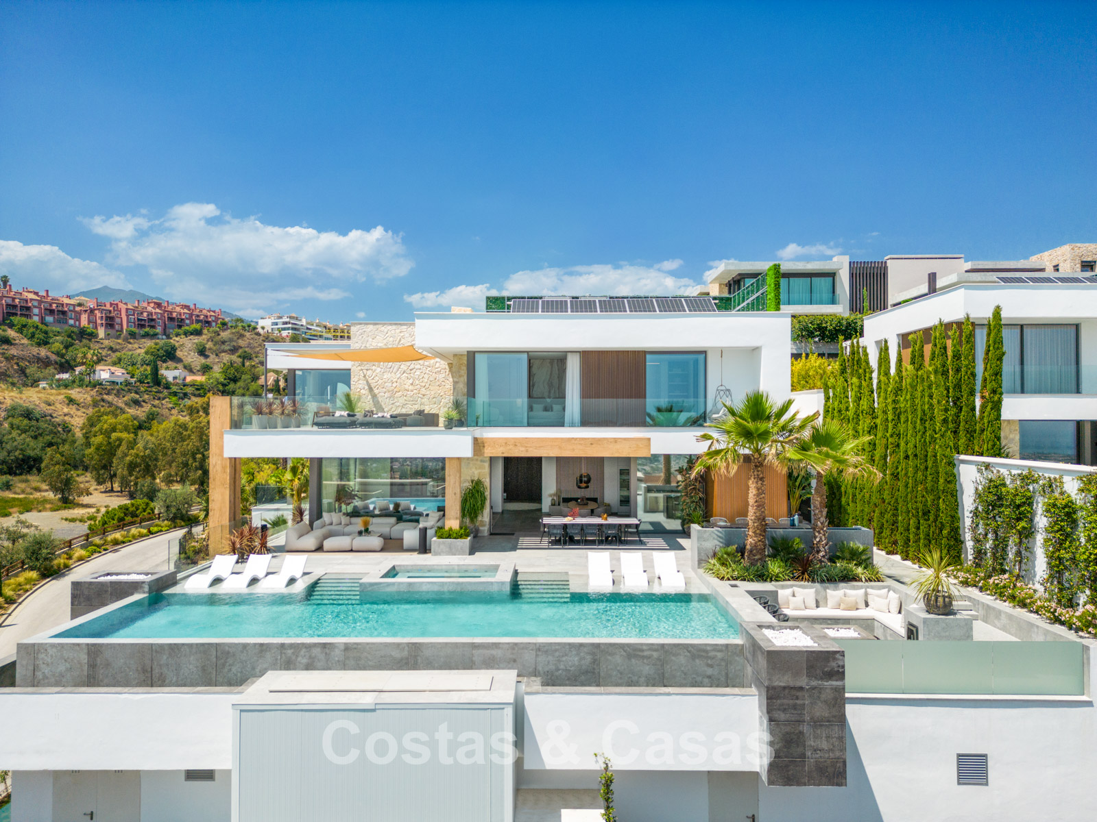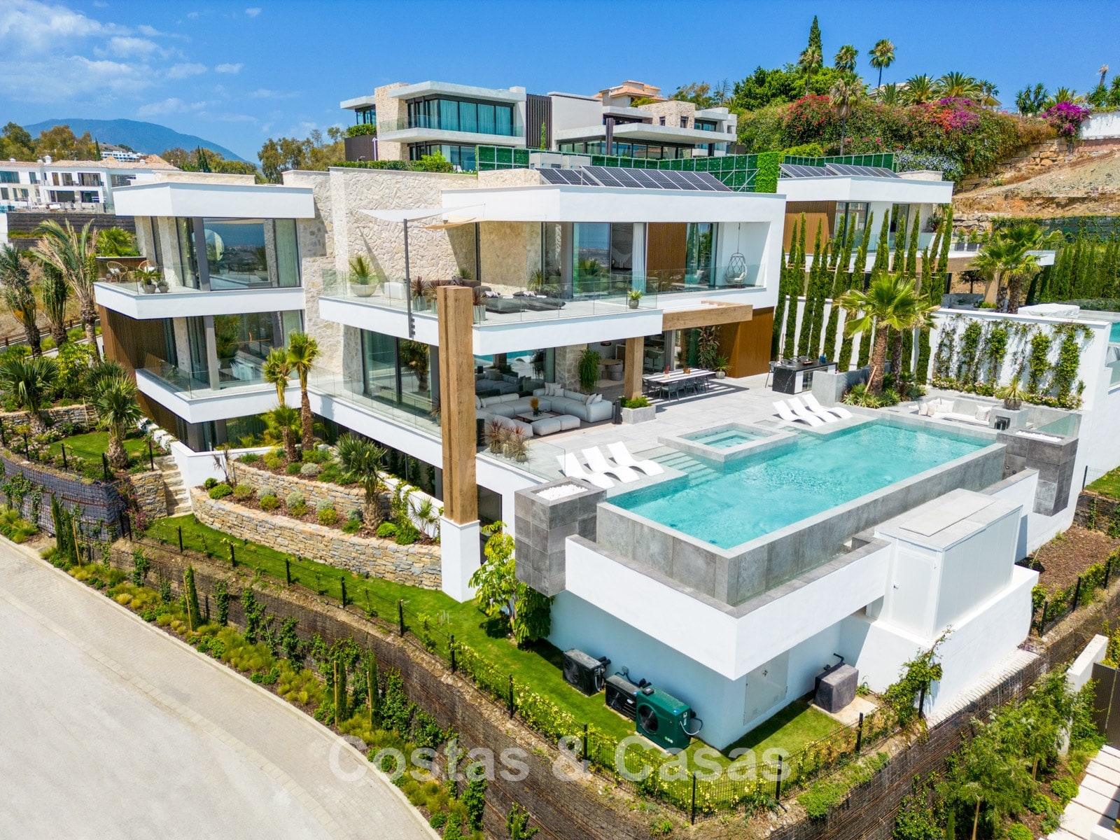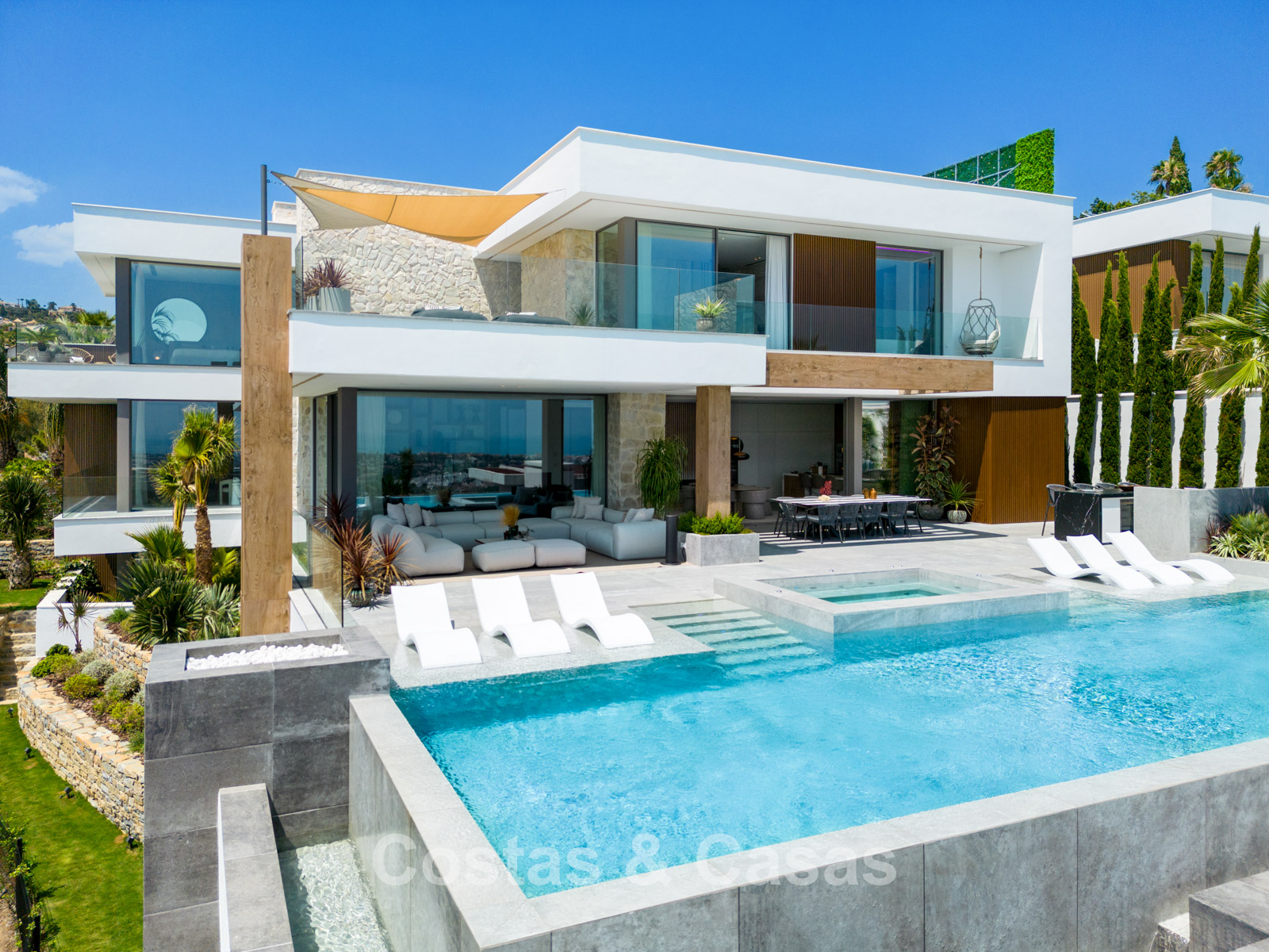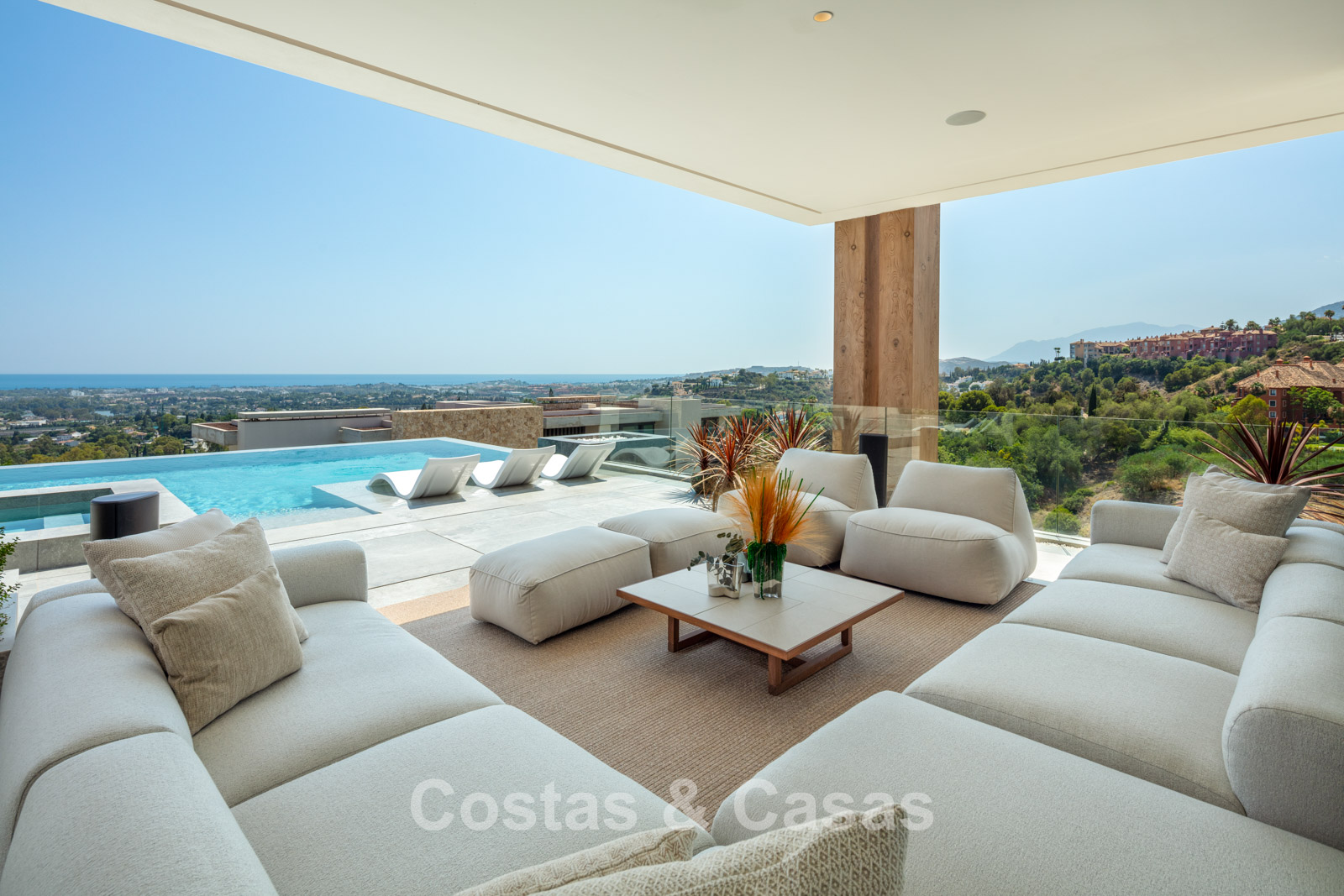 Impresionante y arquitectónica villa de lujo en venta con vistas abiertas al mar en una zona residencial elevada en las colinas de La Quinta en Marbella - Benahavis