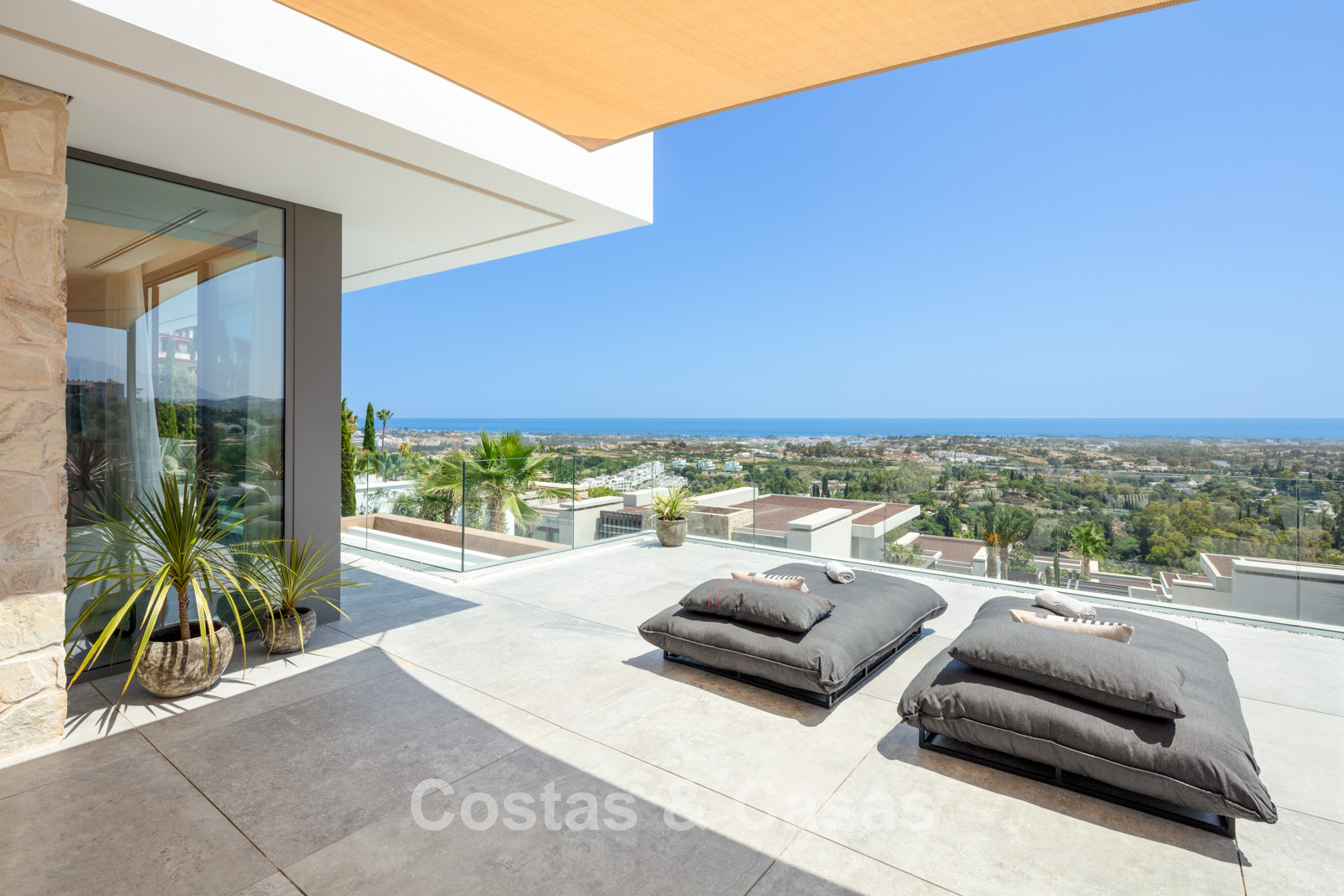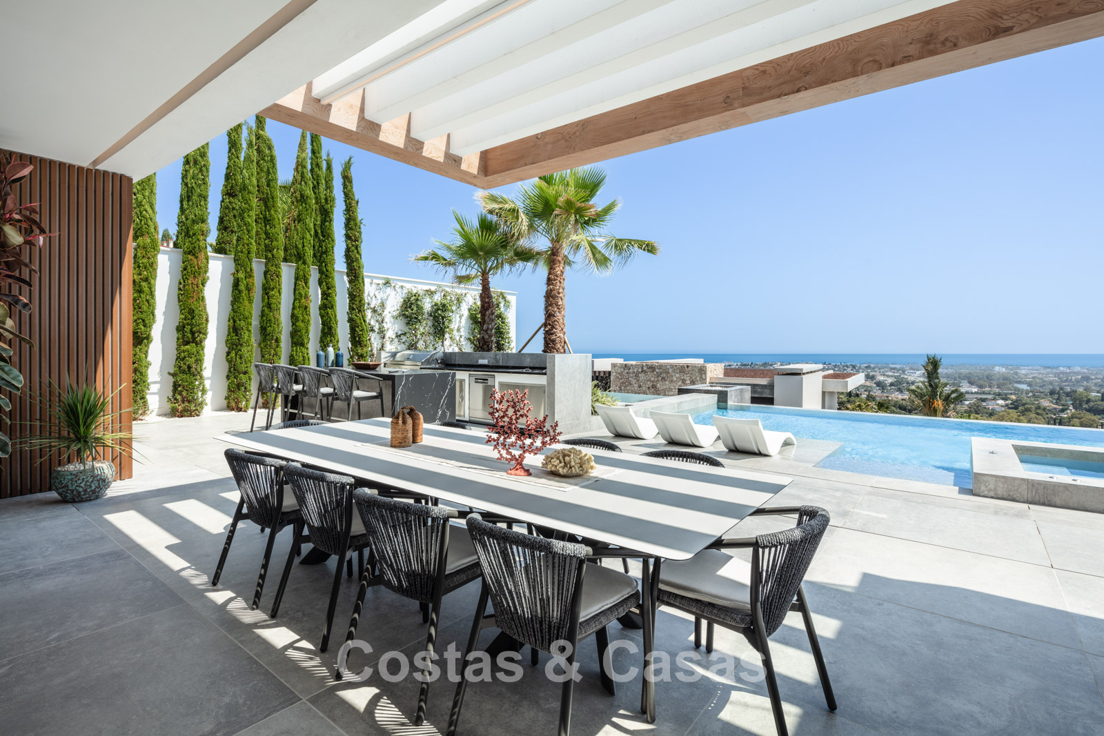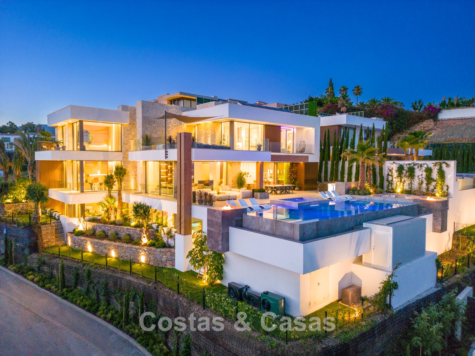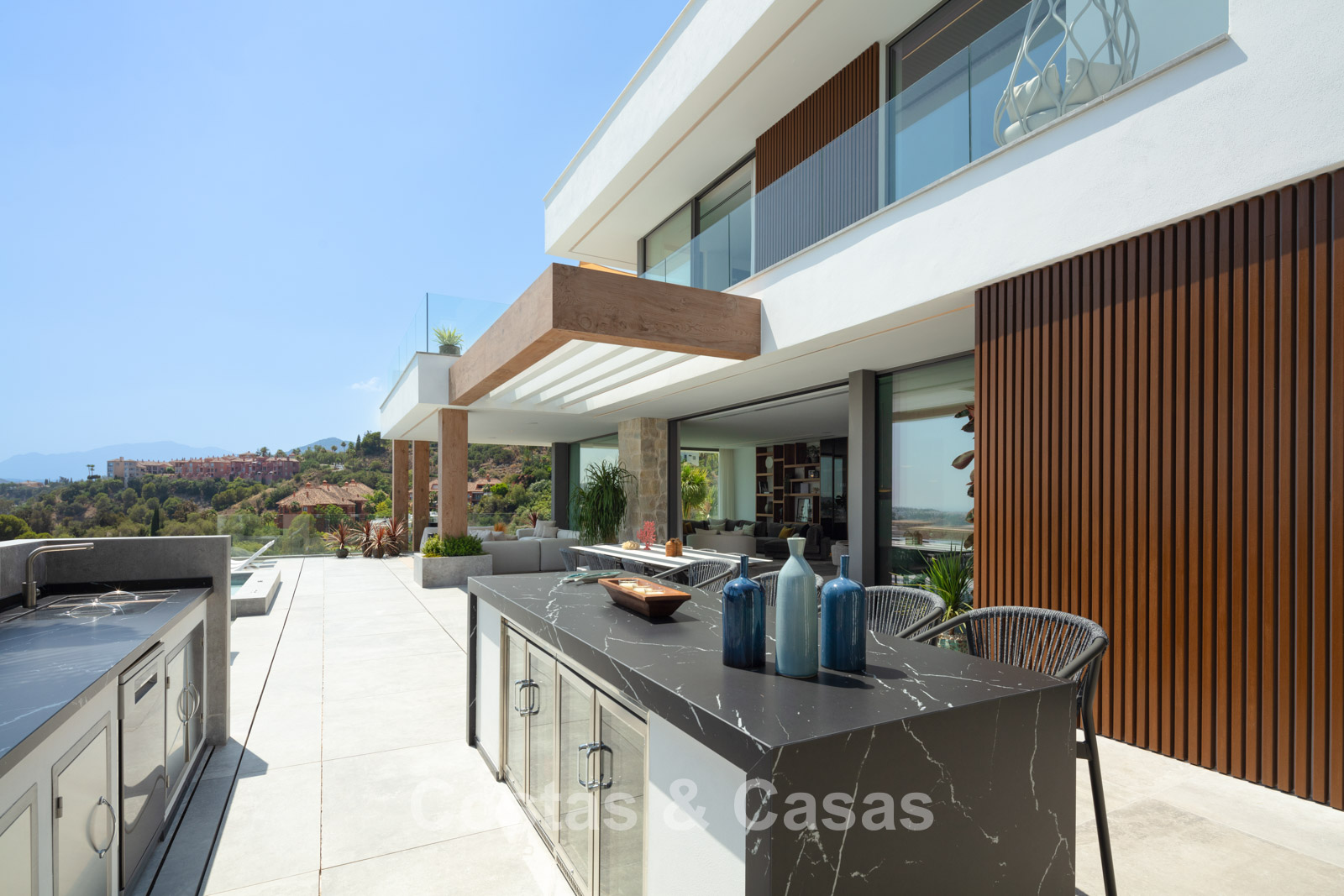 Impresionante y arquitectónica villa de lujo en venta con vistas abiertas al mar en una zona residencial elevada en las colinas de La Quinta en Marbella - Benahavis