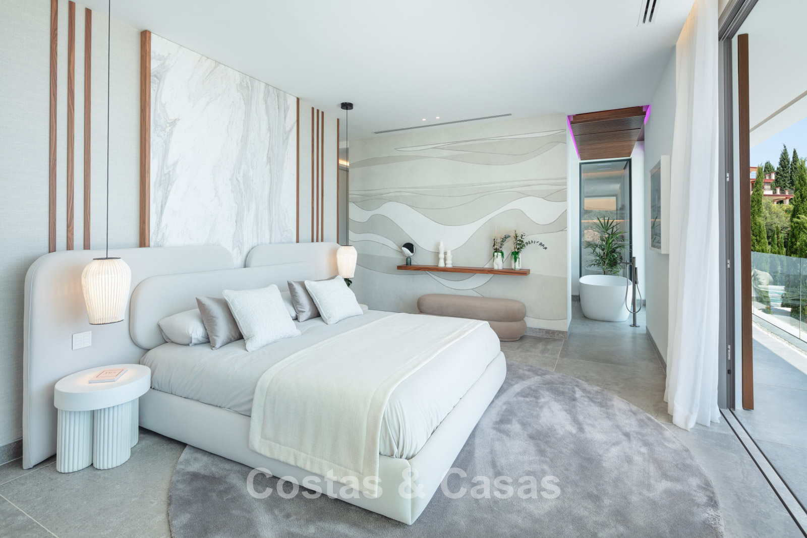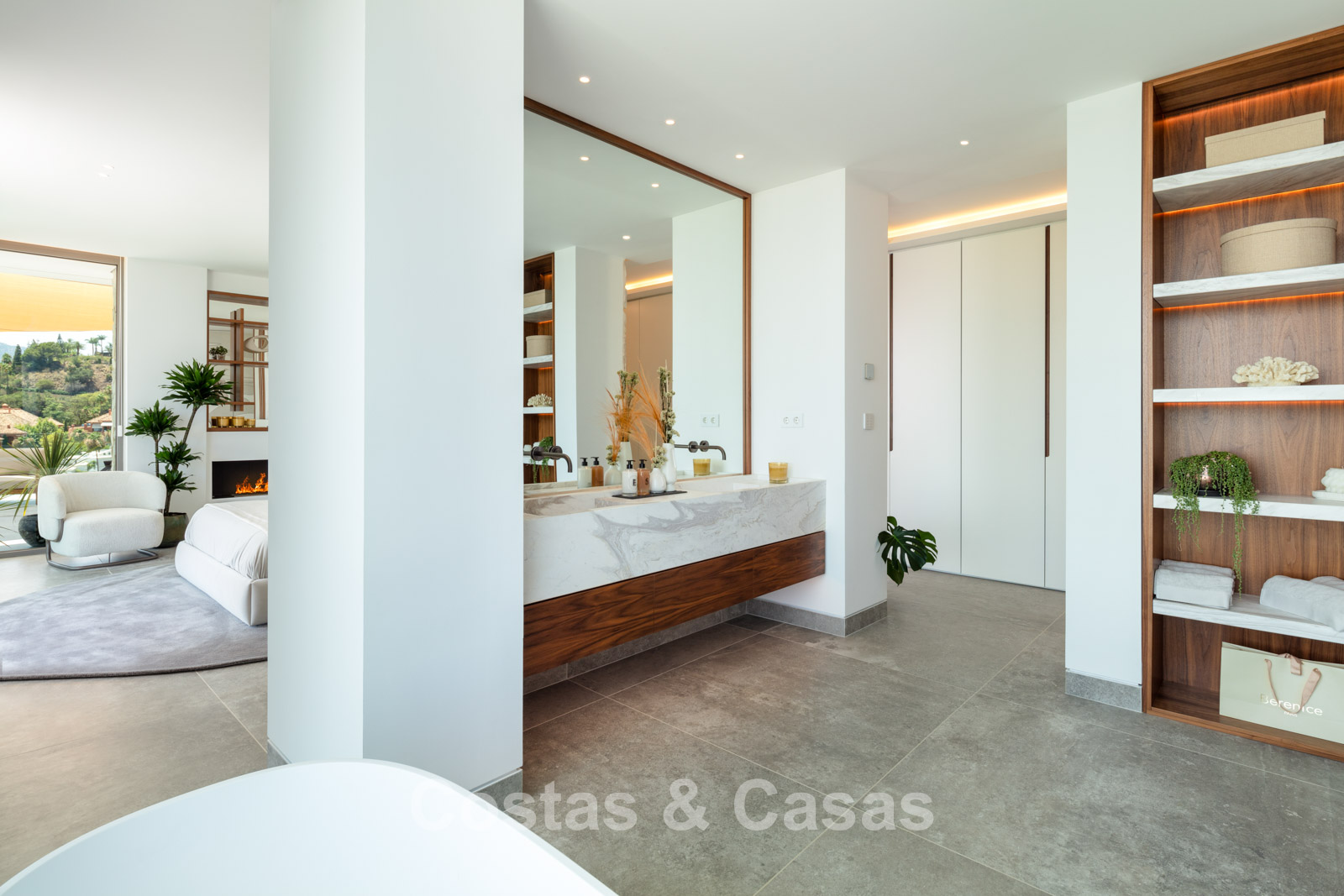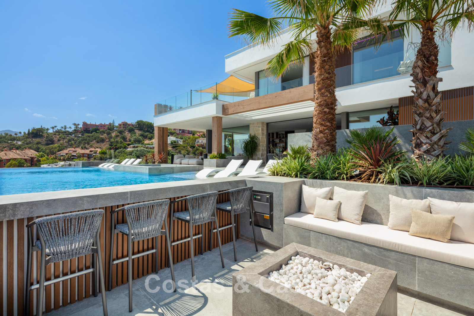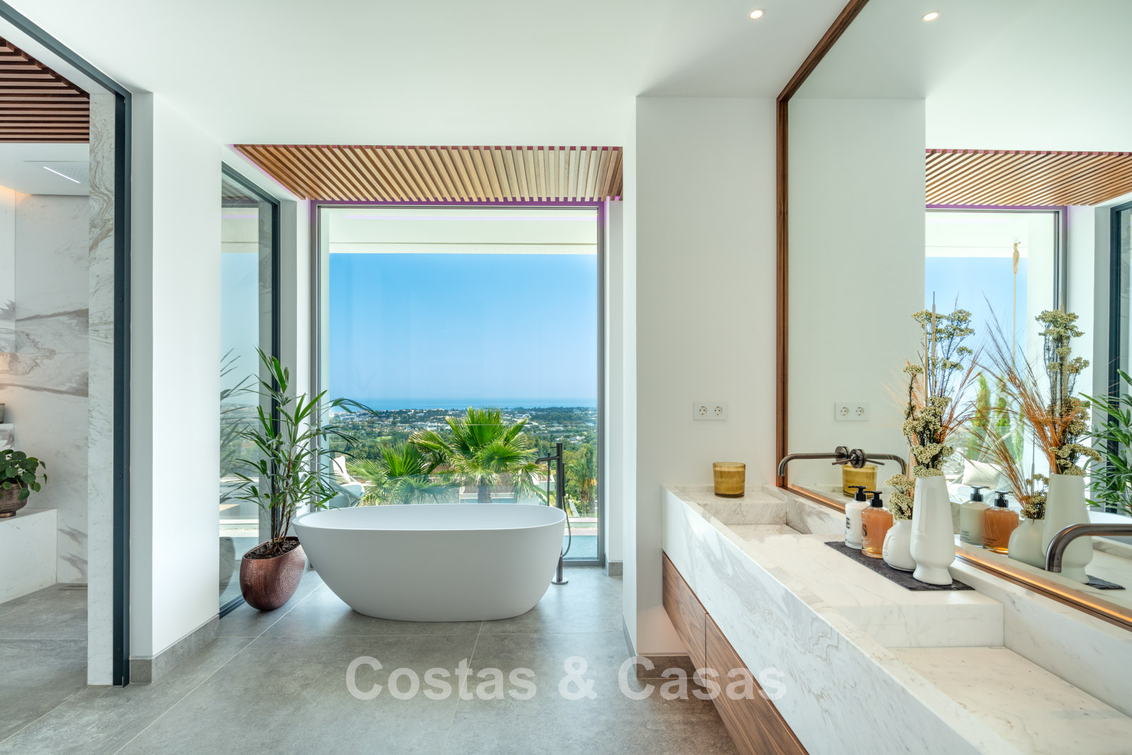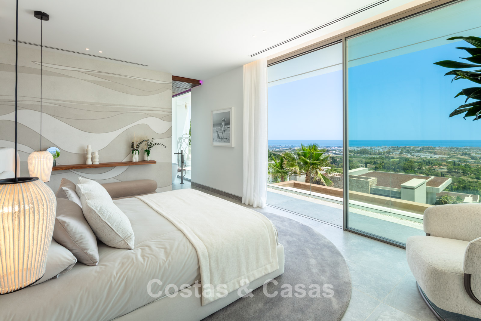 Impresionante y arquitectónica villa de lujo en venta con vistas abiertas al mar en una zona residencial elevada en las colinas de La Quinta en Marbella - Benahavis
