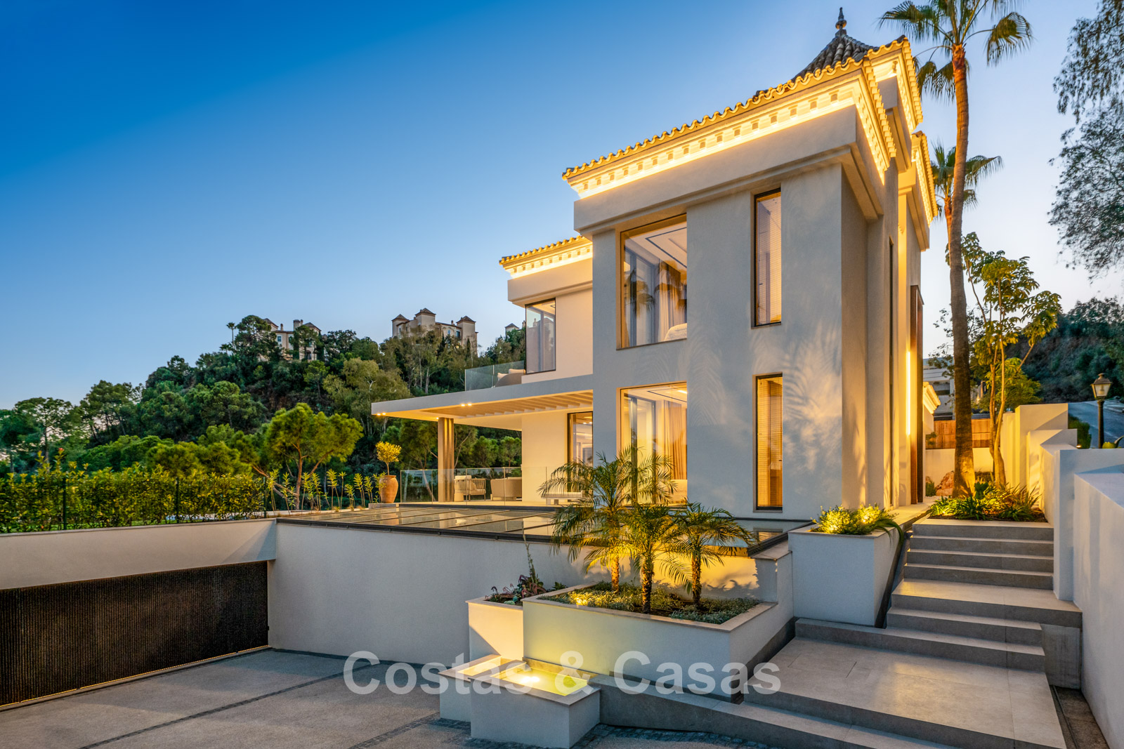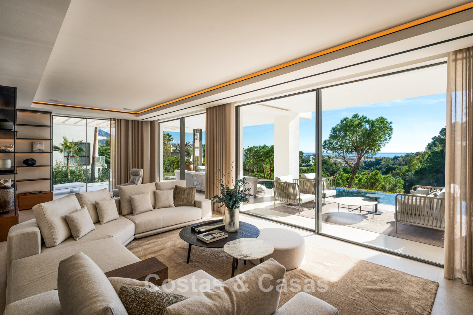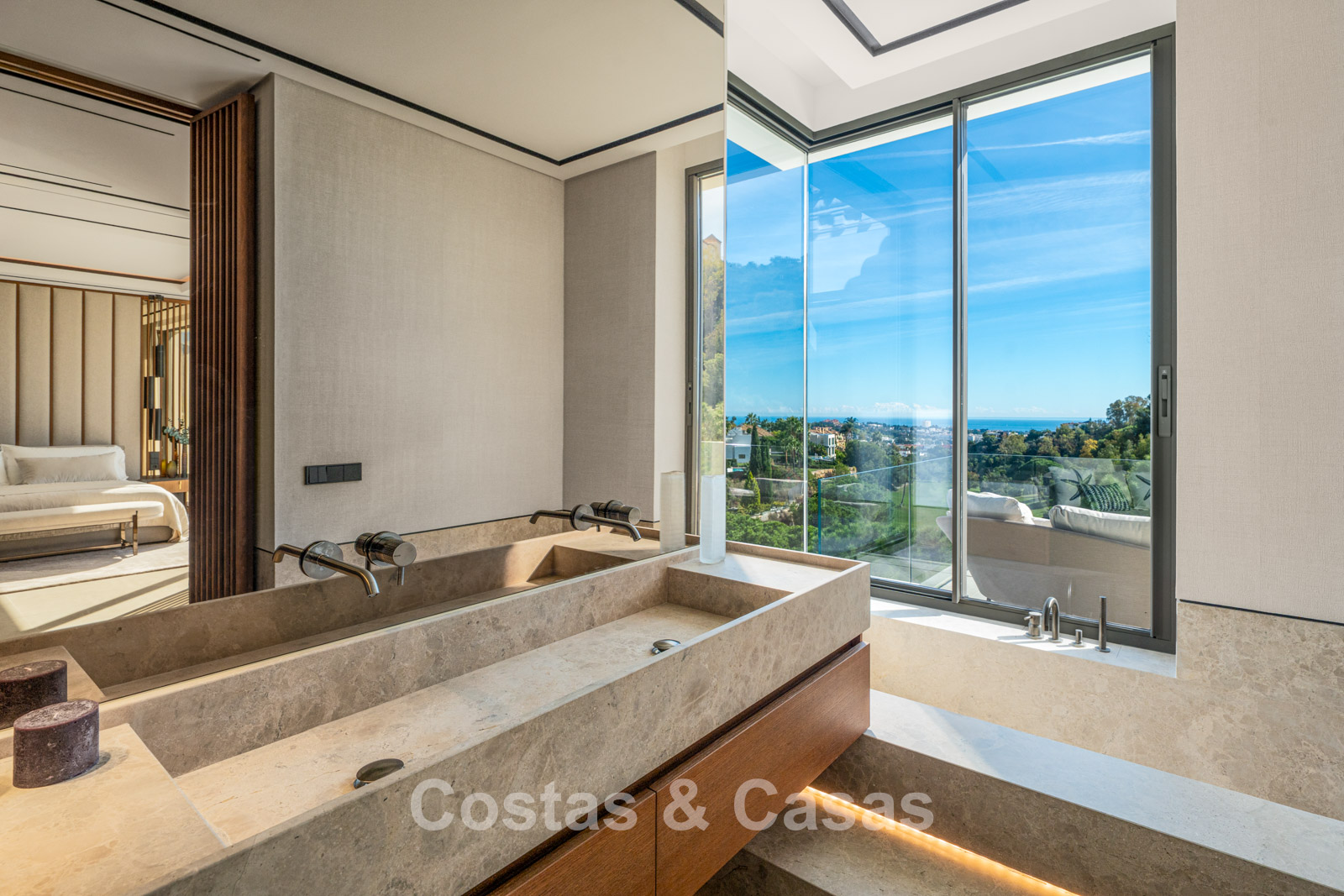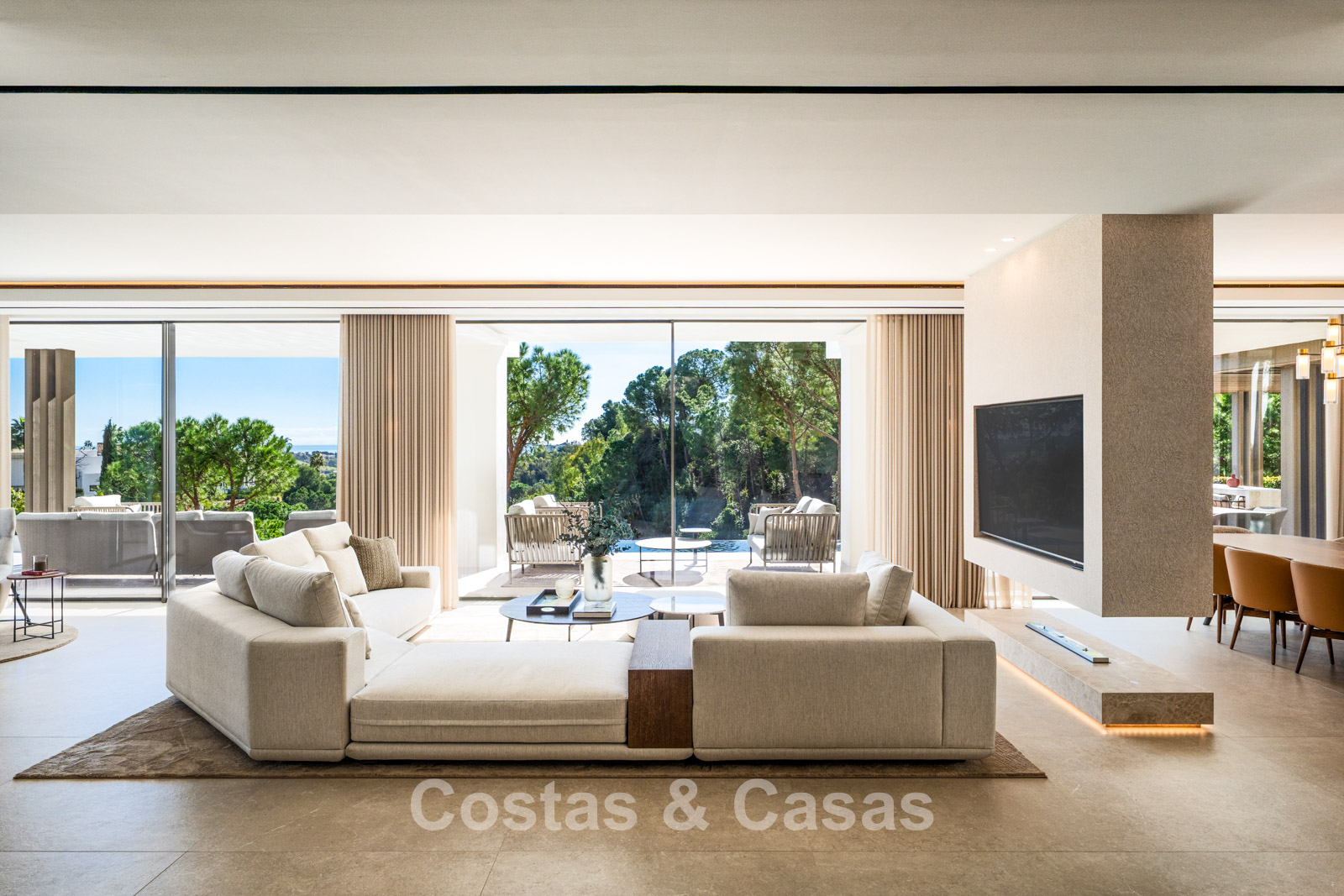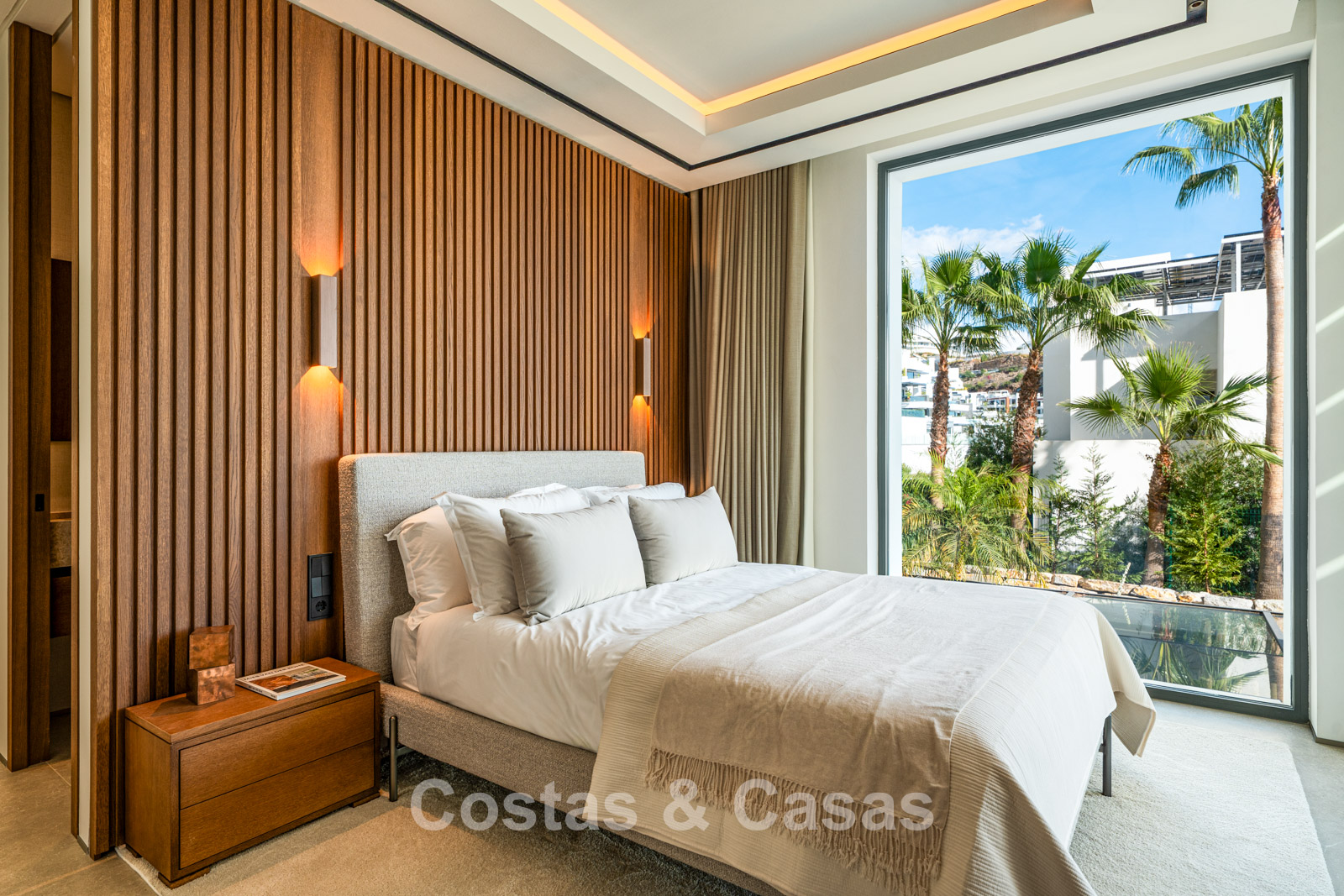 La arquitectura combina líneas contemporáneas limpias y simétricas con sutiles influencias mediterráneas, dando como resultado una villa elegante y atemporal. Construida con materiales de alta calidad cuidadosamente seleccionados y detalles de acabado refinados. Orientación sureste. Vistas despejadas a los campos de golf, a la emblemática montaña La Concha y al mar Mediterráneo. Imponente hall de entrada con techo de doble altura. Ventanas correderas de suelo a techo con perfiles integrados que aportan abundante luz natural y crean una transición fluida entre interior y exterior. Diseño de planta abierta. Salón luminoso y espacioso con zona de TV y comedor. La cocina de alta gama hecha a medida se integra a la perfección con el salón y está equipada con electrodomésticos Gaggenau y barra de desayuno. 6 dormitorios, 7 baños y 2 aseos de invitados. Elegante zona social en la planta inferior con salón de TV, bar y spa con piscina interior climatizada, sauna y gimnasio. Lavandería equipada con electrodomésticos Miele. Garaje integrado para 2 coches con punto de carga para vehículos eléctricos.