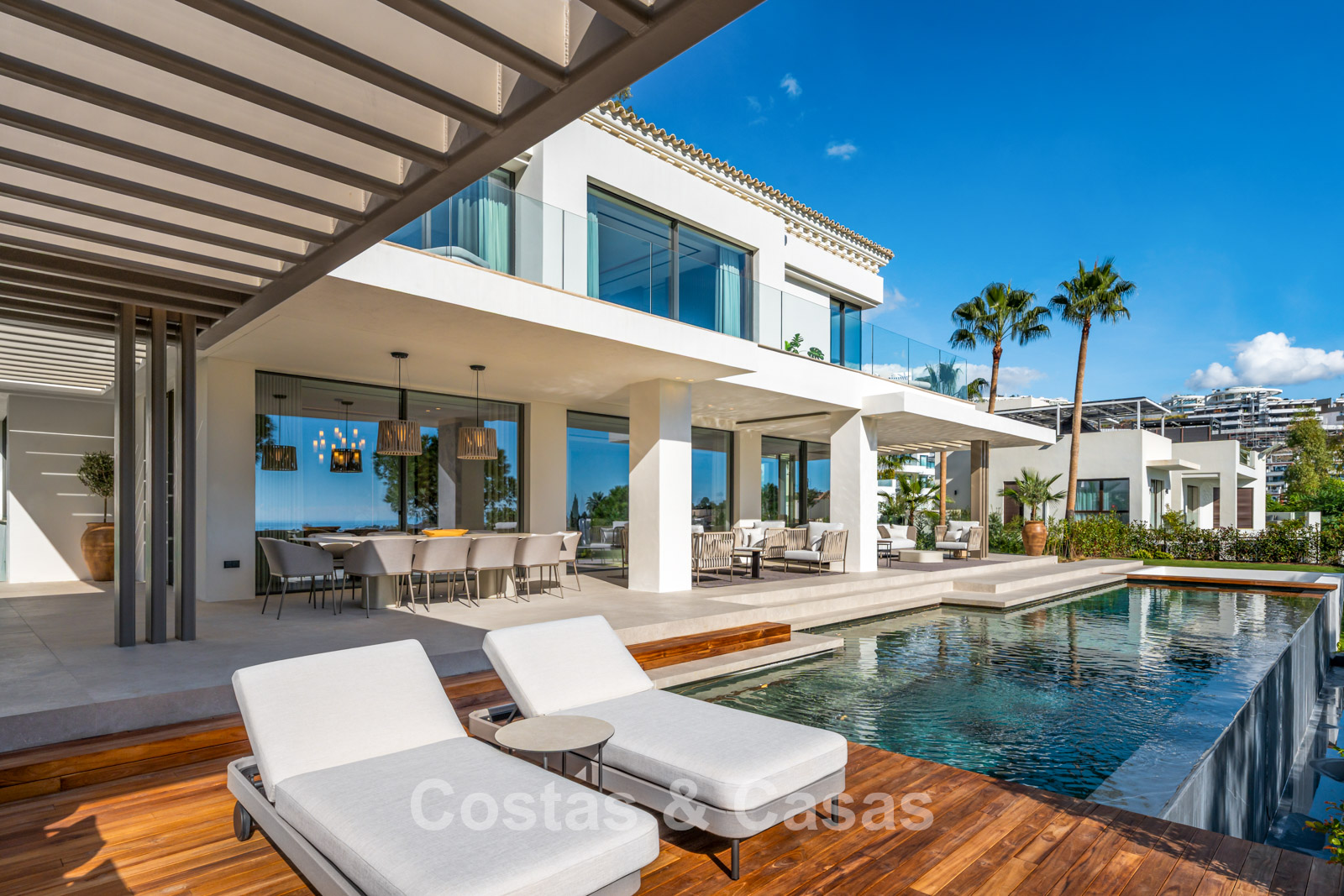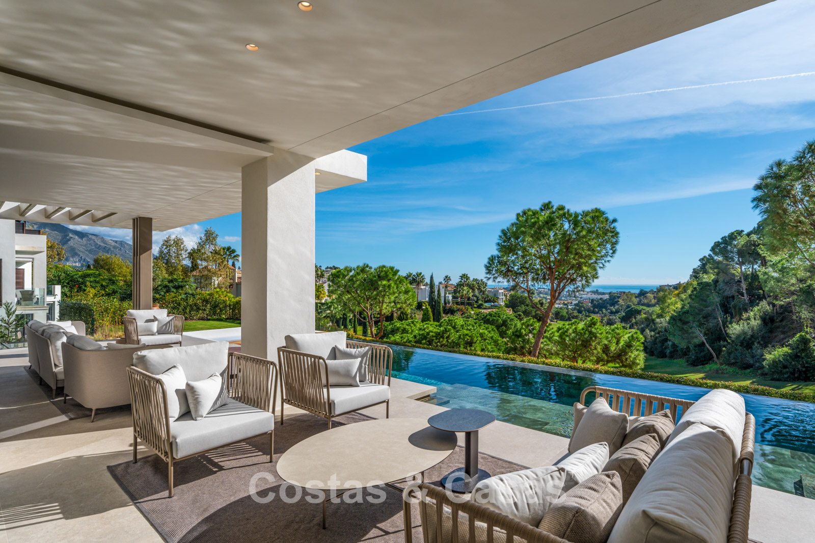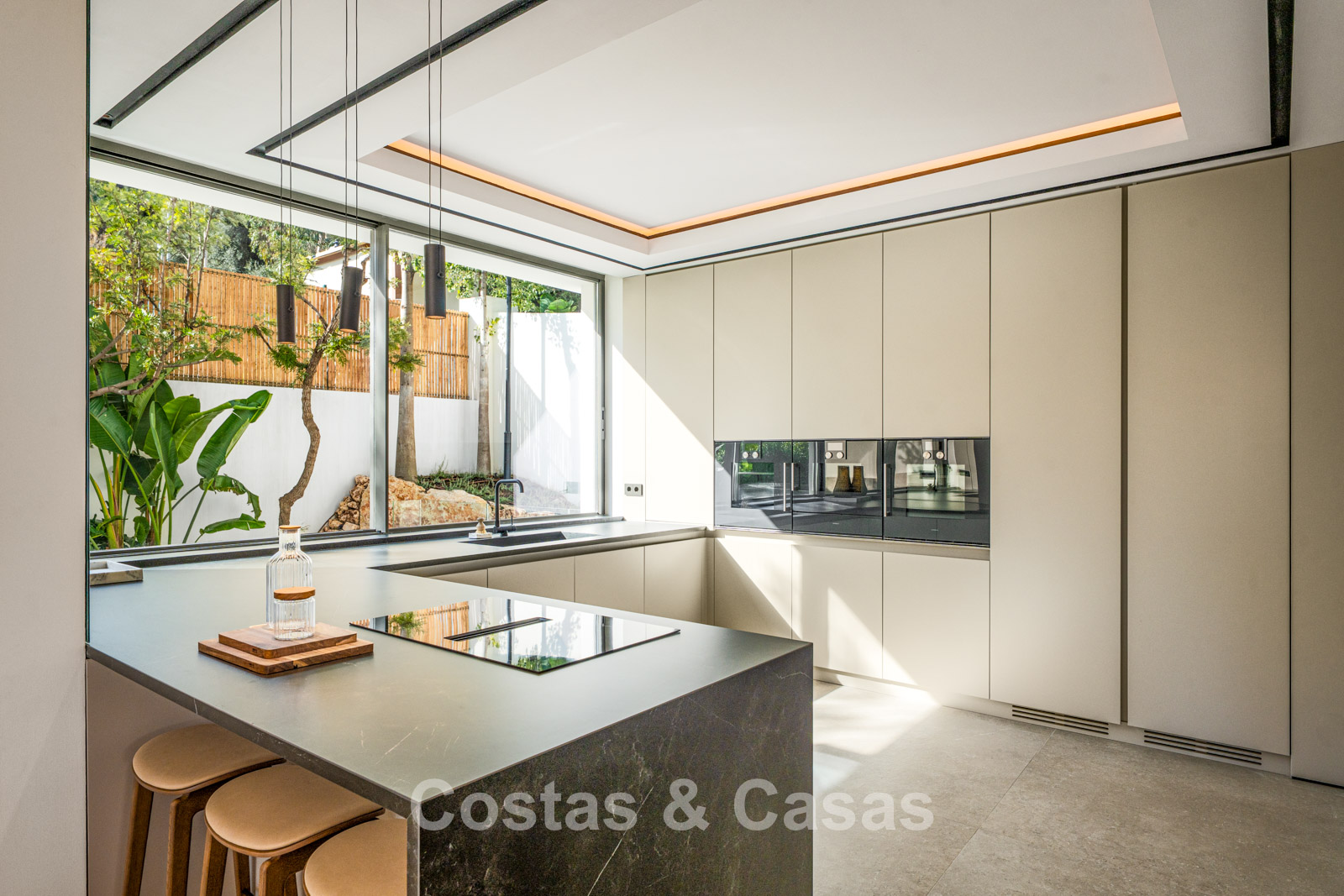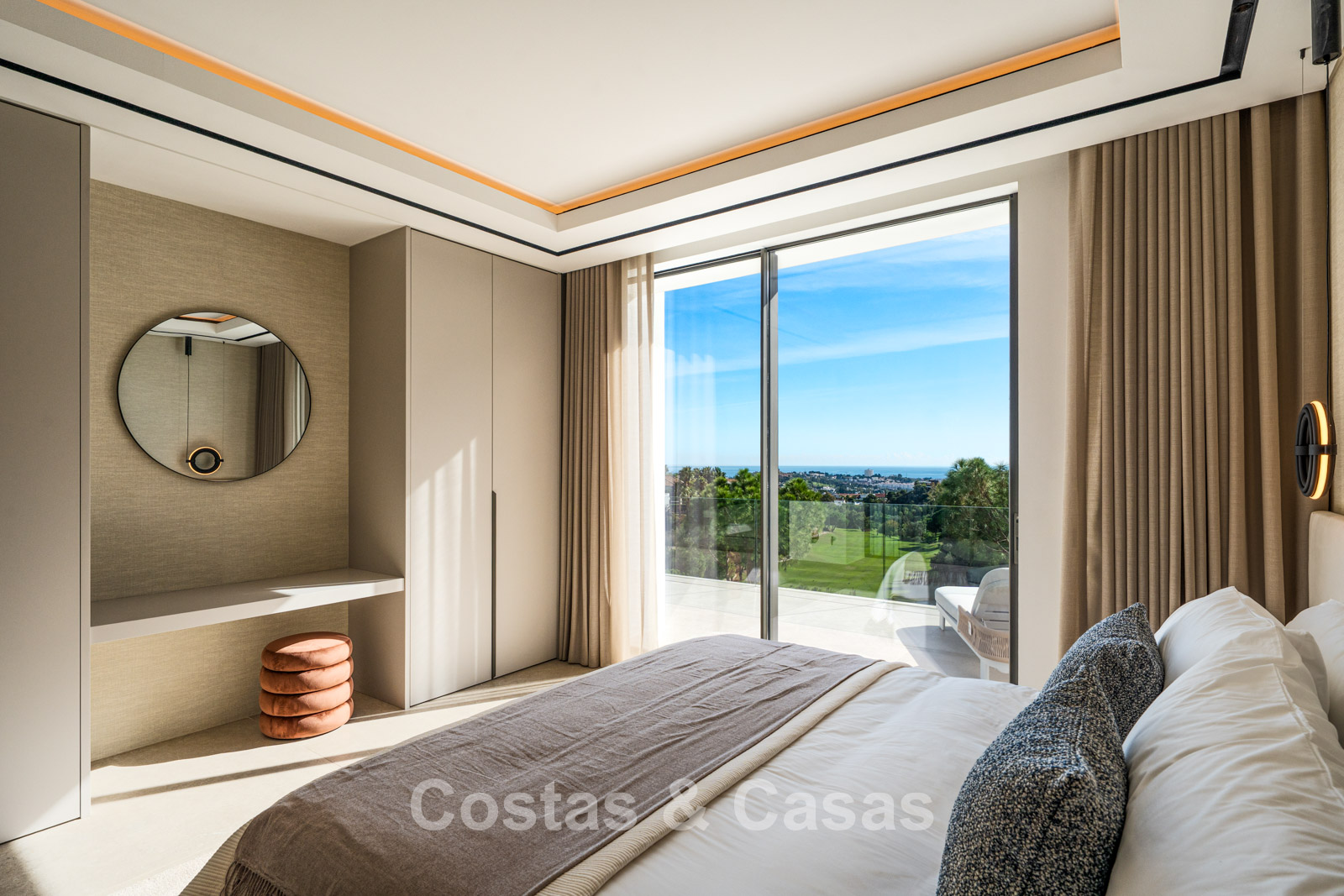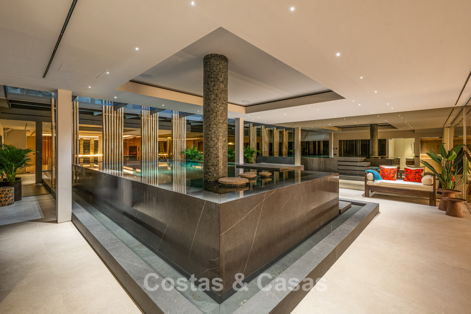 La arquitectura combina líneas contemporáneas limpias y simétricas con sutiles influencias mediterráneas, dando como resultado una villa elegante y atemporal. Construida con materiales de alta calidad cuidadosamente seleccionados y detalles de acabado refinados. Orientación sureste. Vistas despejadas a los campos de golf, a la emblemática montaña La Concha y al mar Mediterráneo. Imponente hall de entrada con techo de doble altura. Ventanas correderas de suelo a techo con perfiles integrados que aportan abundante luz natural y crean una transición fluida entre interior y exterior. Diseño de planta abierta. Salón luminoso y espacioso con zona de TV y comedor. La cocina de alta gama hecha a medida se integra a la perfección con el salón y está equipada con electrodomésticos Gaggenau y barra de desayuno. 6 dormitorios, 7 baños y 2 aseos de invitados. Elegante zona social en la planta inferior con salón de TV, bar y spa con piscina interior climatizada, sauna y gimnasio. Lavandería equipada con electrodomésticos Miele. Garaje integrado para 2 coches con punto de carga para vehículos eléctricos.