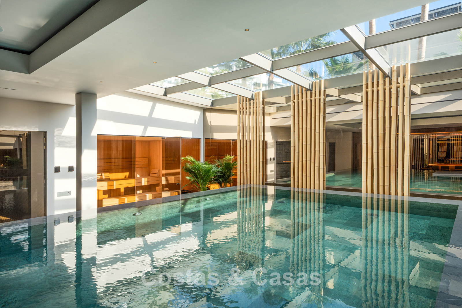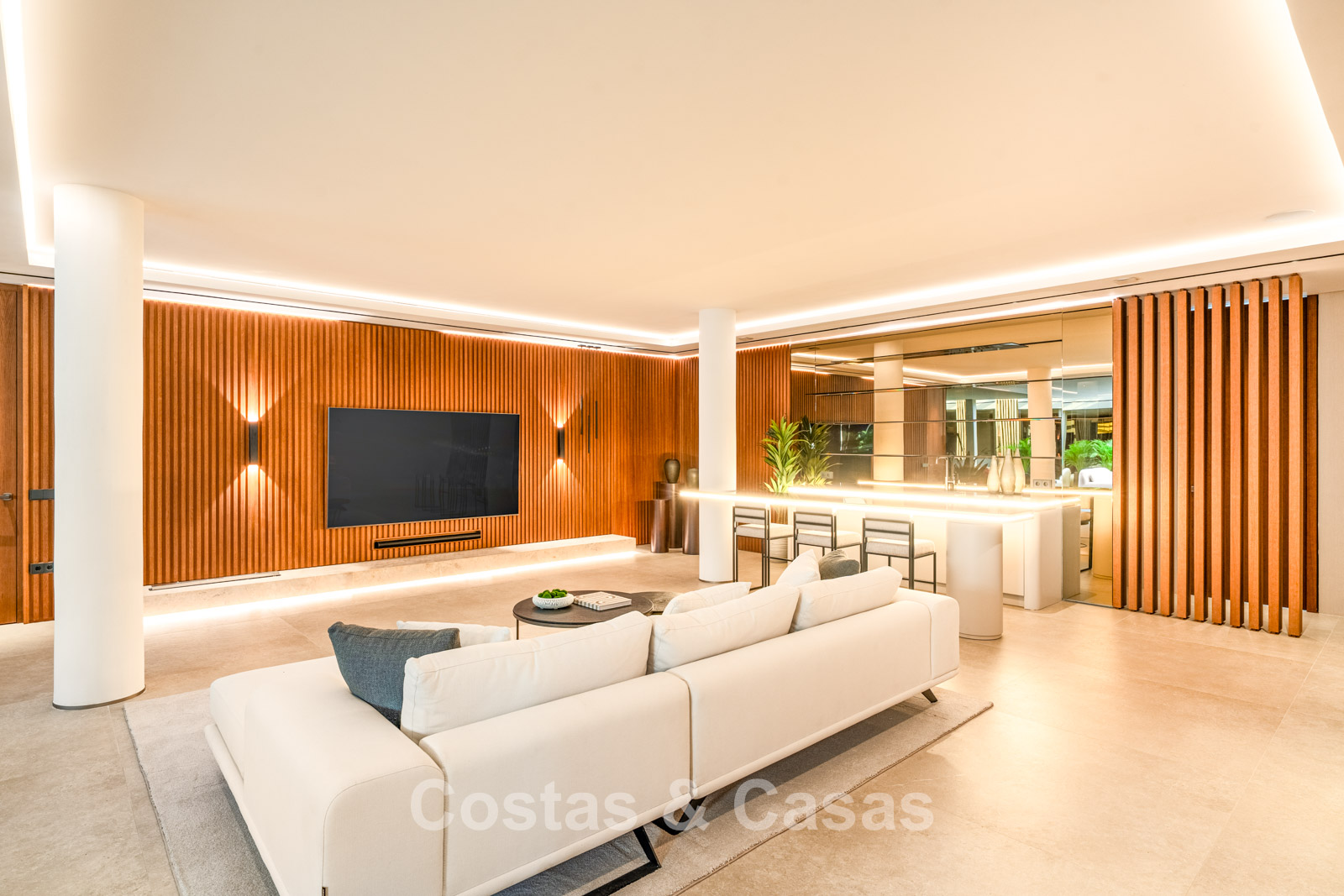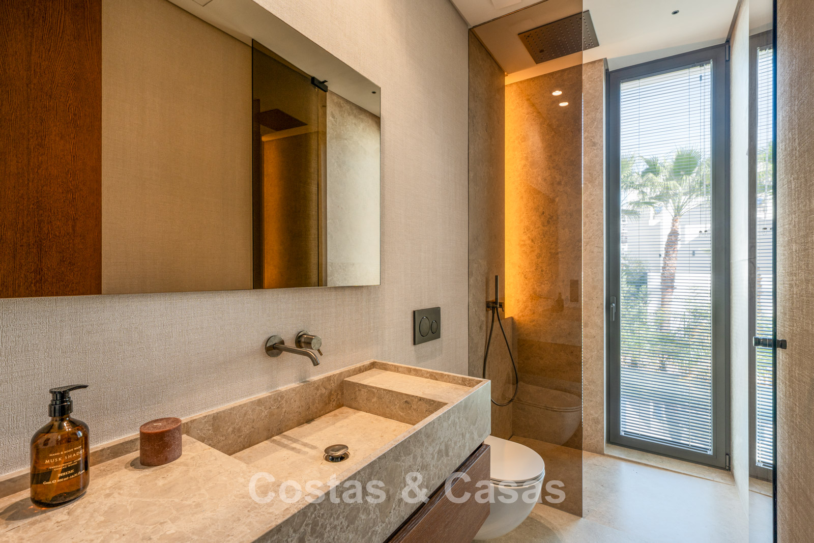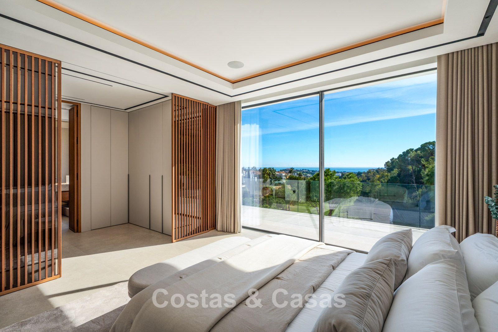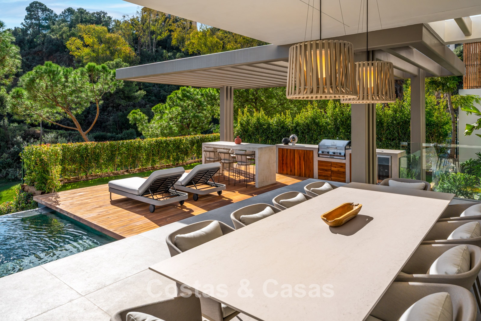 La arquitectura combina líneas contemporáneas limpias y simétricas con sutiles influencias mediterráneas, dando como resultado una villa elegante y atemporal. Construida con materiales de alta calidad cuidadosamente seleccionados y detalles de acabado refinados. Orientación sureste. Vistas despejadas a los campos de golf, a la emblemática montaña La Concha y al mar Mediterráneo. Imponente hall de entrada con techo de doble altura. Ventanas correderas de suelo a techo con perfiles integrados que aportan abundante luz natural y crean una transición fluida entre interior y exterior. Diseño de planta abierta. Salón luminoso y espacioso con zona de TV y comedor. La cocina de alta gama hecha a medida se integra a la perfección con el salón y está equipada con electrodomésticos Gaggenau y barra de desayuno. 6 dormitorios, 7 baños y 2 aseos de invitados. Elegante zona social en la planta inferior con salón de TV, bar y spa con piscina interior climatizada, sauna y gimnasio. Lavandería equipada con electrodomésticos Miele. Garaje integrado para 2 coches con punto de carga para vehículos eléctricos.
