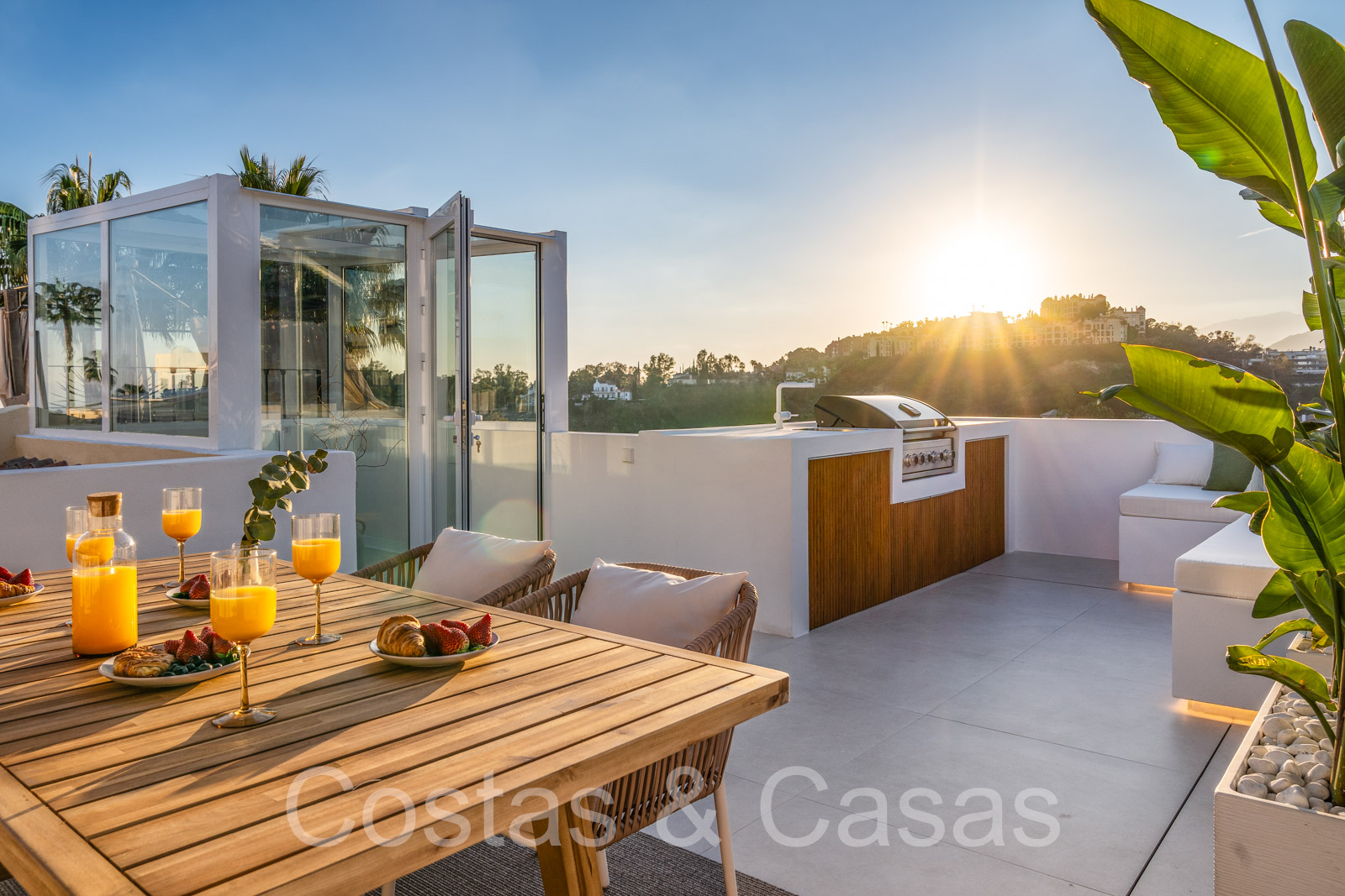 898.000 €Listo para entrar a vivir, moderno y elegante apartamento con jardín privado y vistas al mar en venta en el este de Marbella