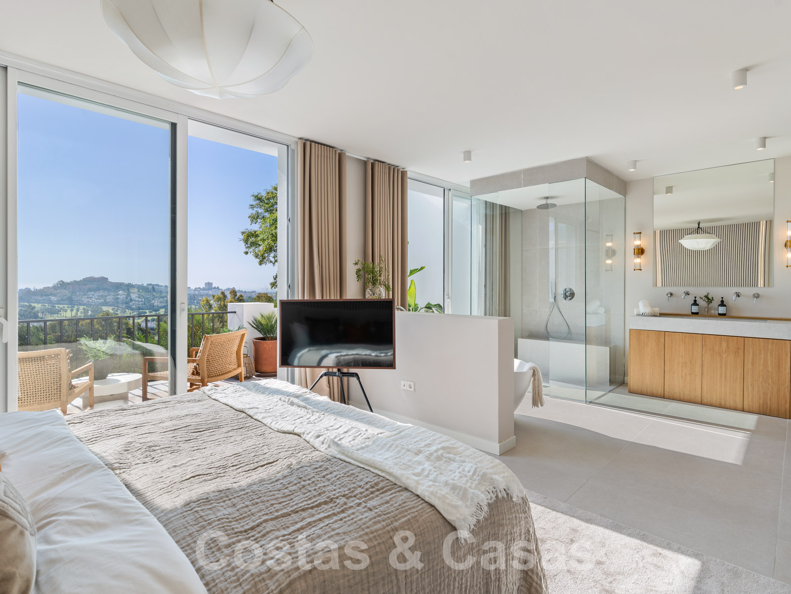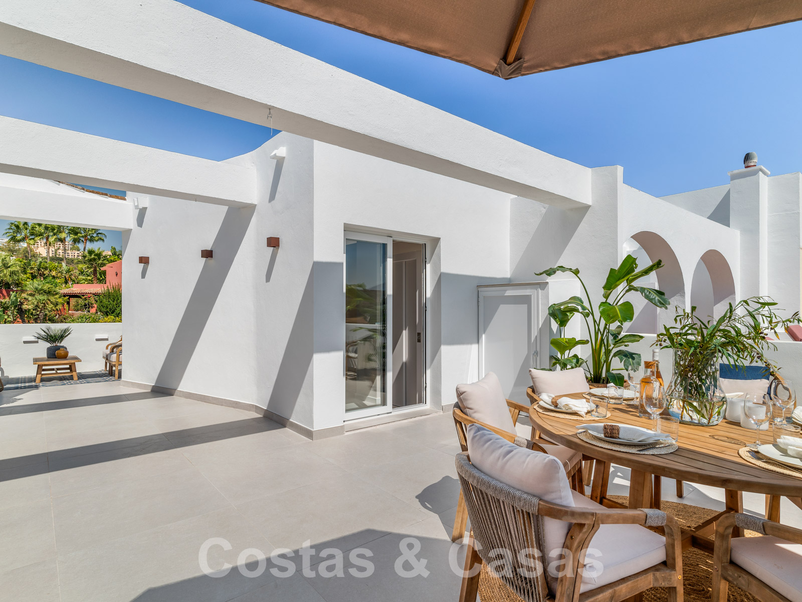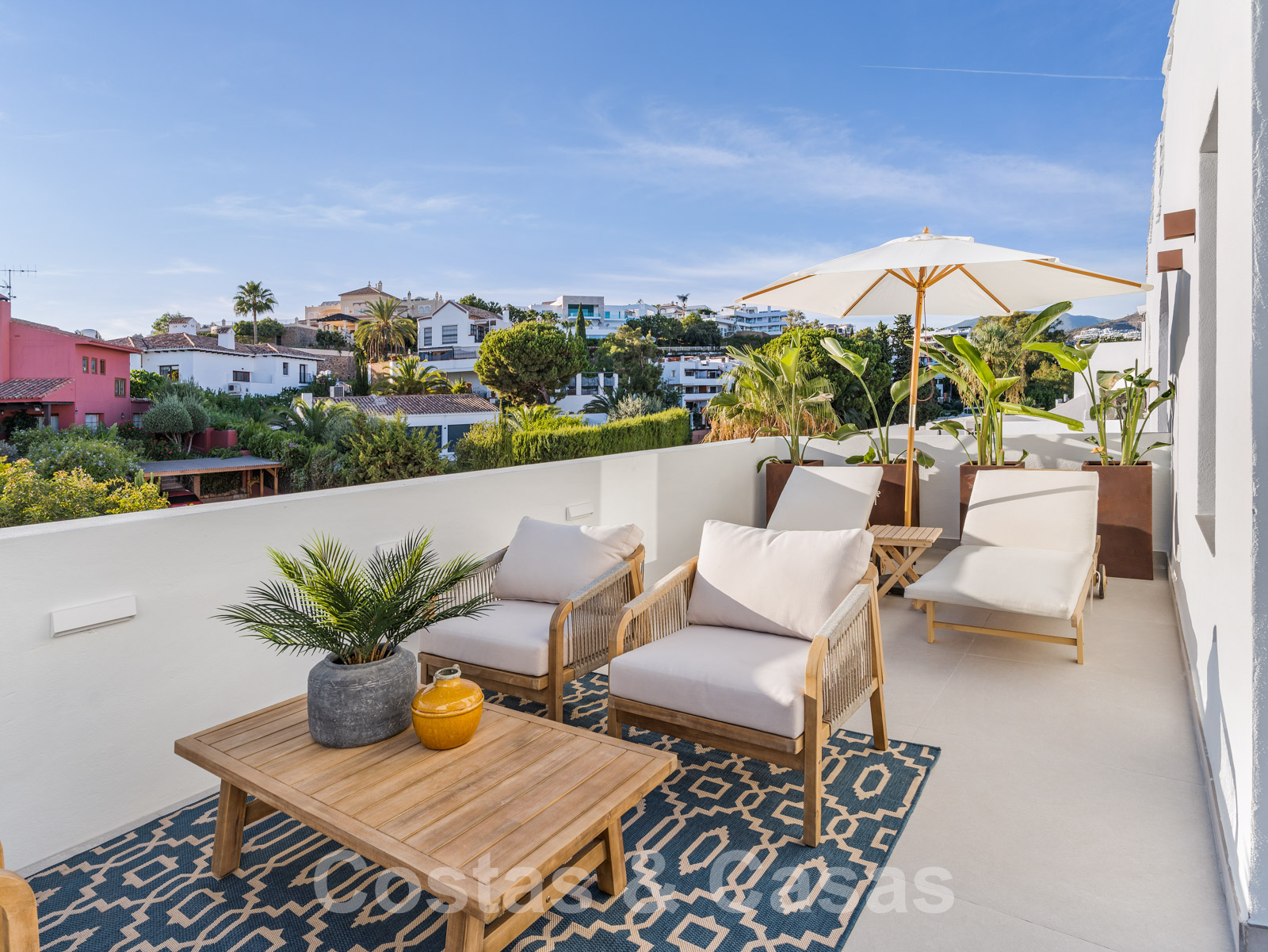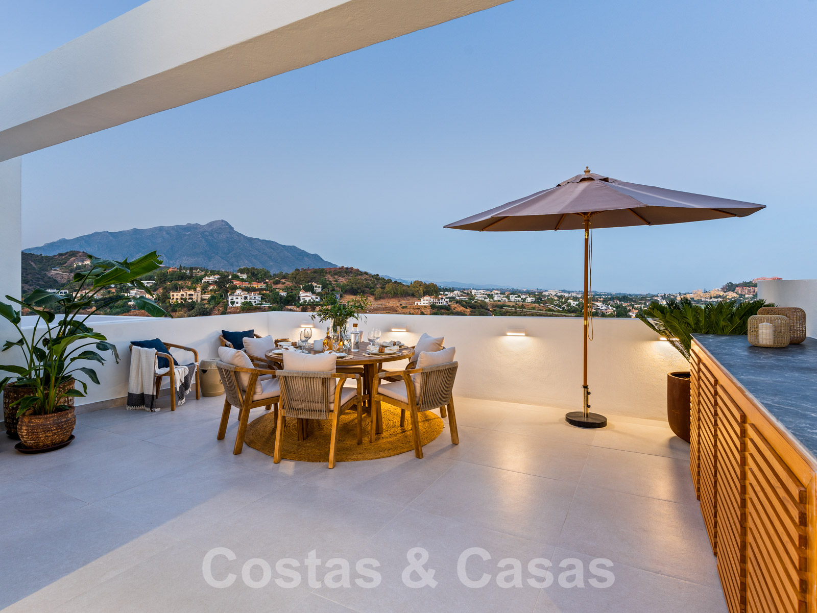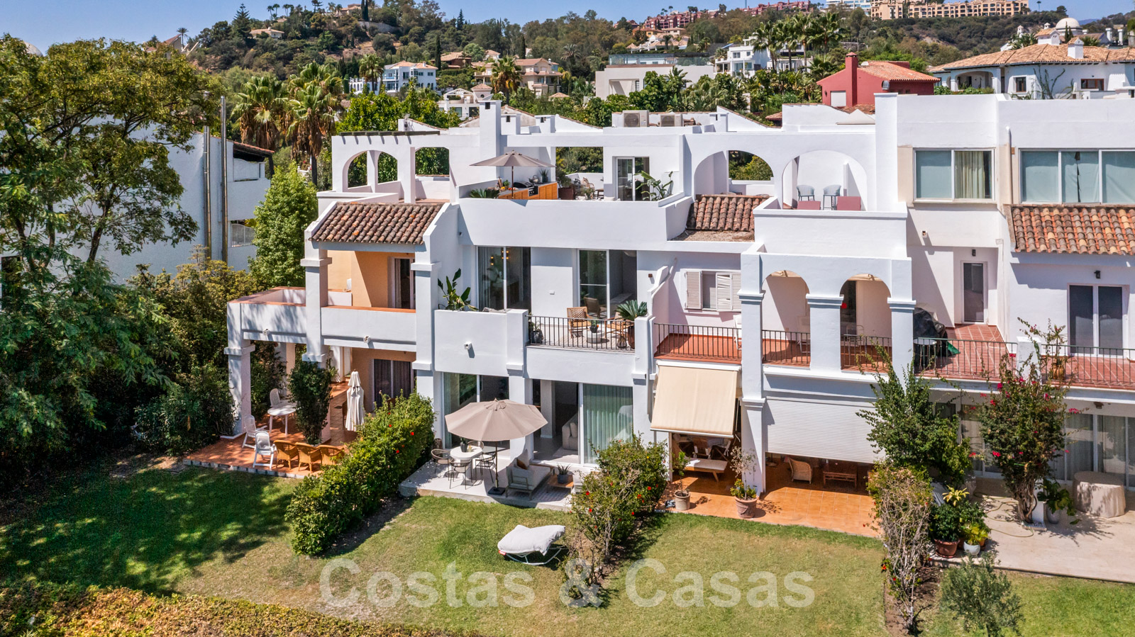 Amplia casa adosada, totalmente renovada con un alto nivel de calidad. Utilización de materiales de primera calidad y acabados refinados. Elegante diseño interior con concepto escandinavo. Diseño interior con distribución abierta. Orientación sureste. Sublimes vistas panorámicas del paisaje montañoso, hacia el mar Mediterráneo. Cocina totalmente equipada con isla y barra de desayuno. Espacio abierto con sala de estar y comedor integrado. Altas ventanas correderas proporcionan un interior luminoso y ofrecen acceso al jardín y a la terraza. 4 dormitorios, 4 baños. El dormitorio principal ofrece un cuarto de baño abierto y acceso a una terraza privada. En la última planta hay un amplio solárium equipado con zona de barbacoa y espacio suficiente para instalar instalaciones de comedor o salón. Garaje para 1 coche.