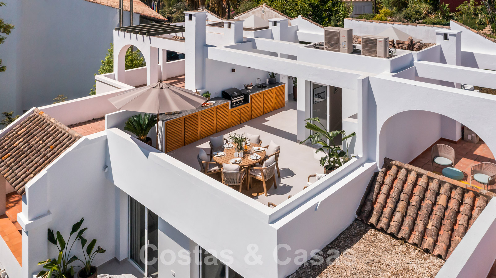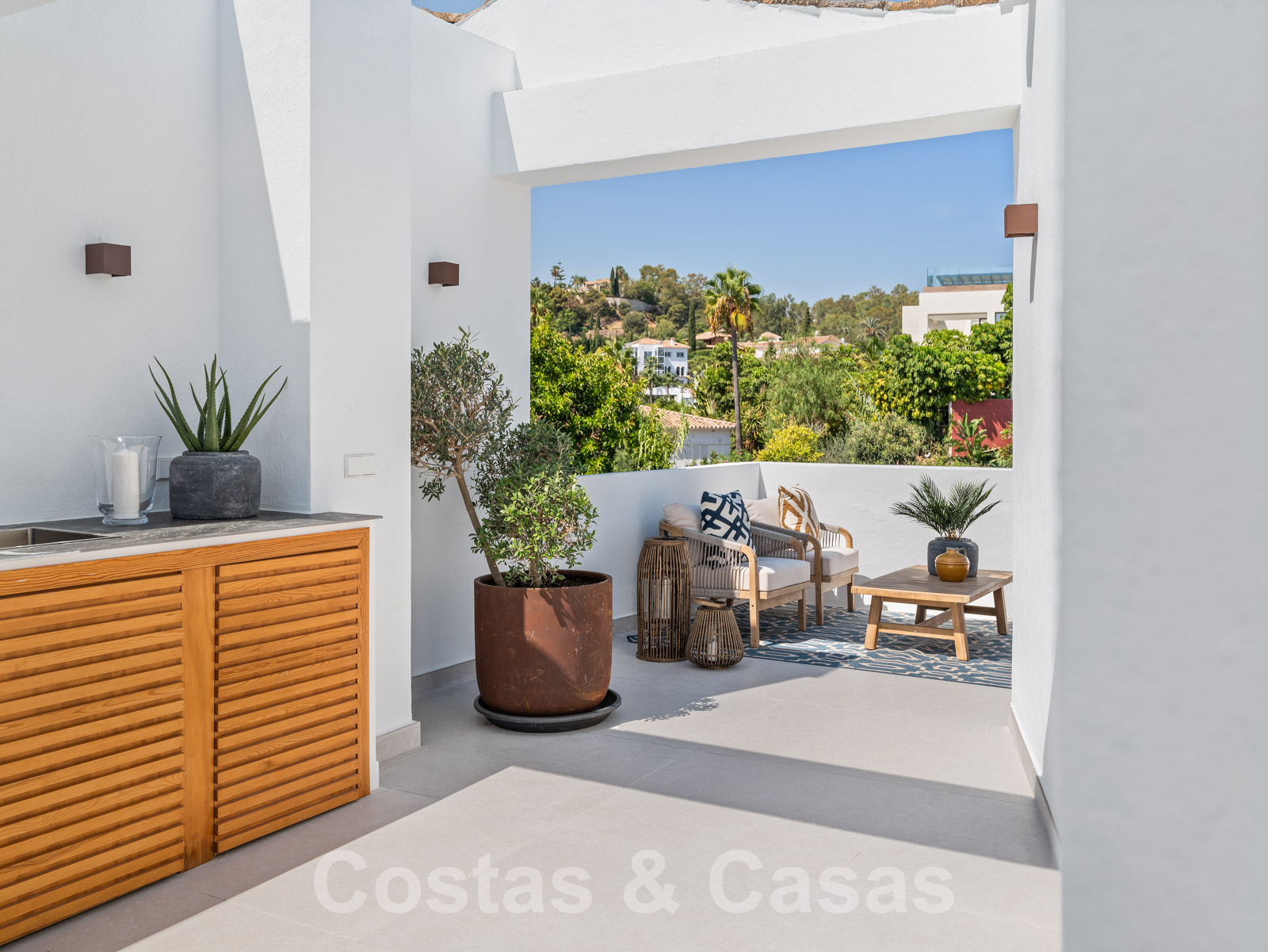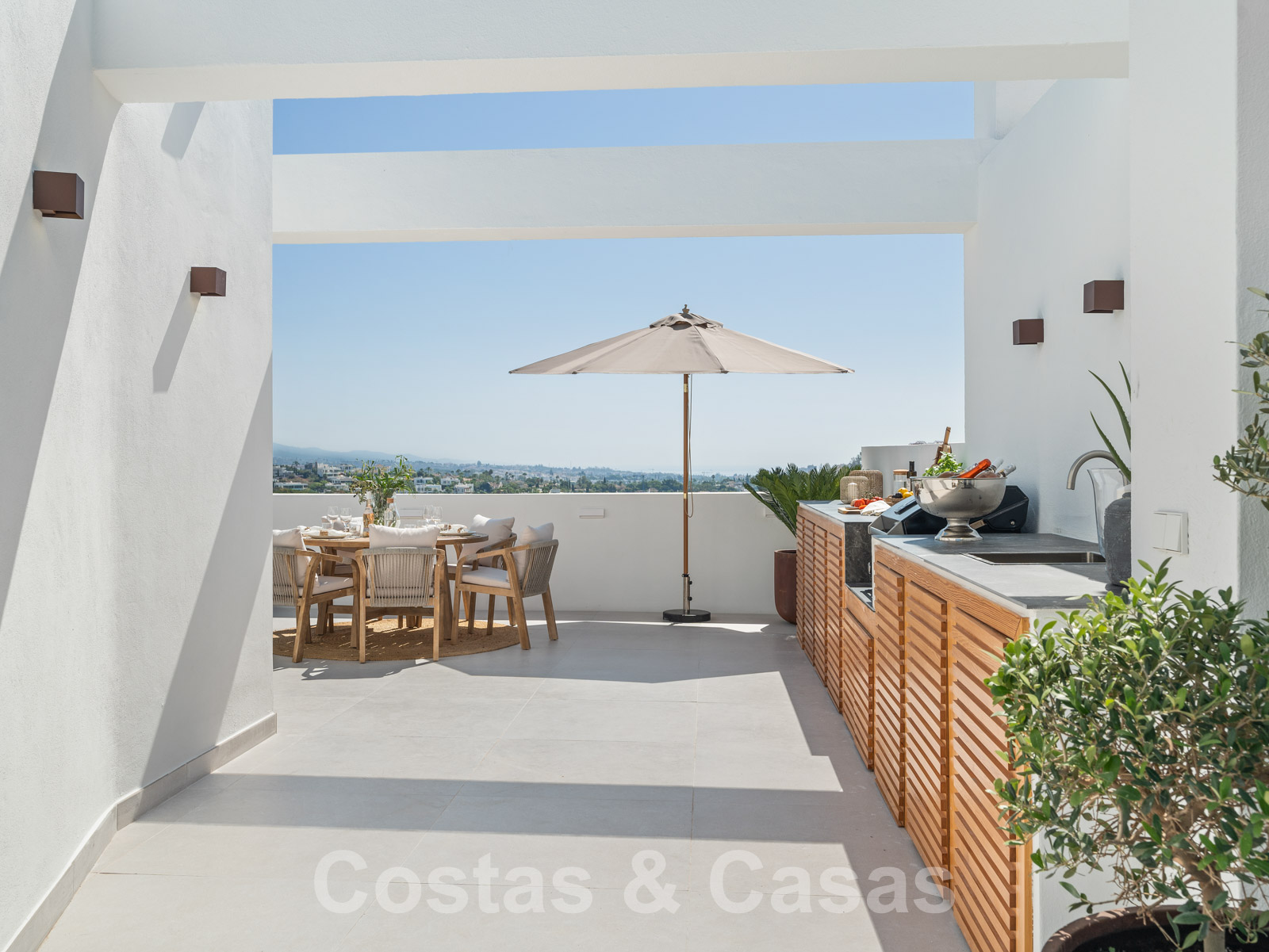 Amplio solárium con cocina exterior.