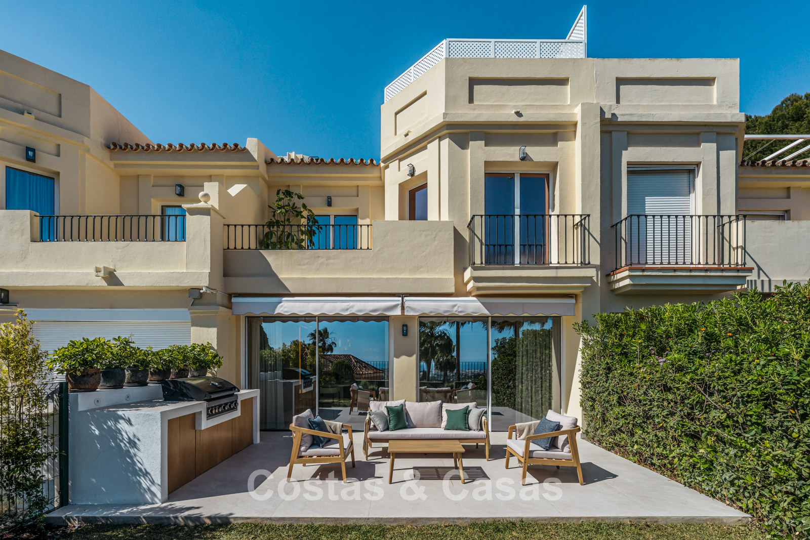 Elegante casa adosada reformada con vistas panorámicas al mar en venta en La Quinta, Benahavis - Marbella