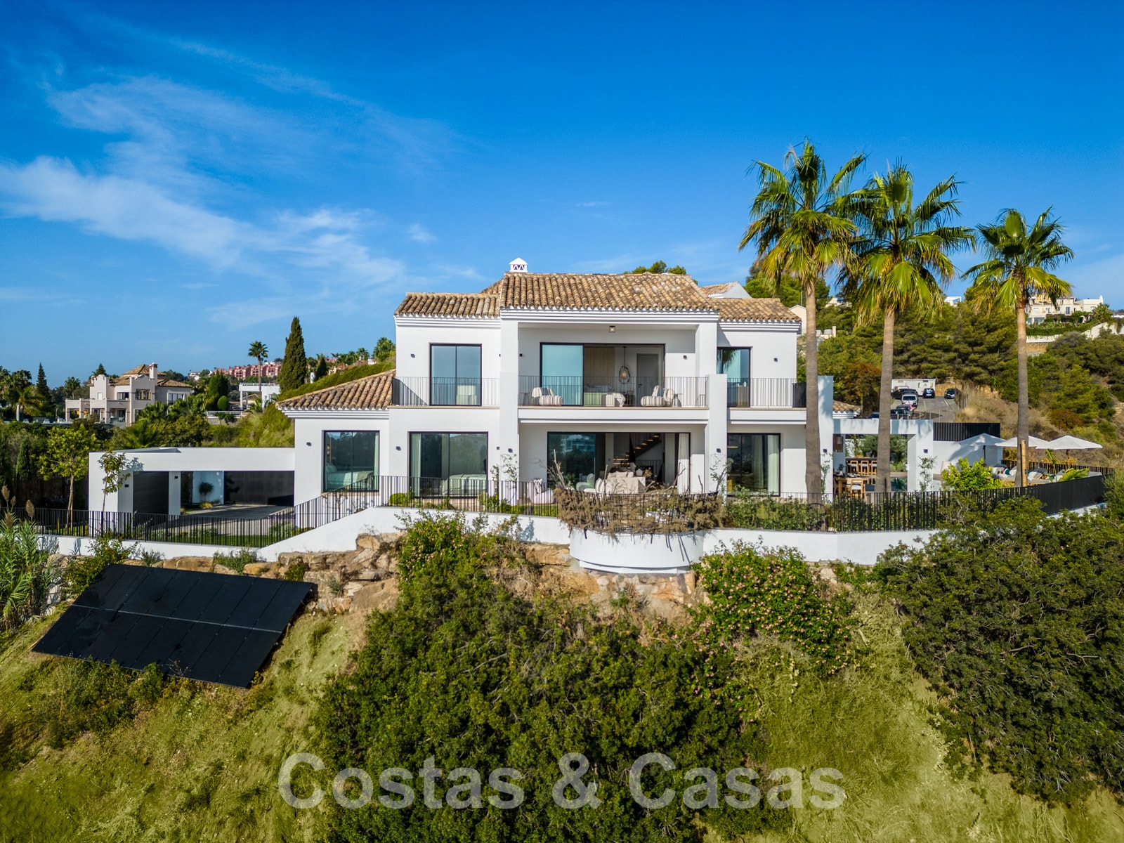 Barandillas de cristal alrededor de las terrazas. Aire acondicionado Daikin. Suelo radiante. Electrodomésticos de cocina Gaggenau. Sistema de audio Sonos. Sistema domótico Gira. Bodega Cavanova. Persianas motorizadas. Placas solares con garantía de 12 años y 25 años, lo que hace que la casa sea autosuficiente en el consumo. El excedente se puede vender. Iluminación exterior. Sistema de alarma con cámaras CCTV.