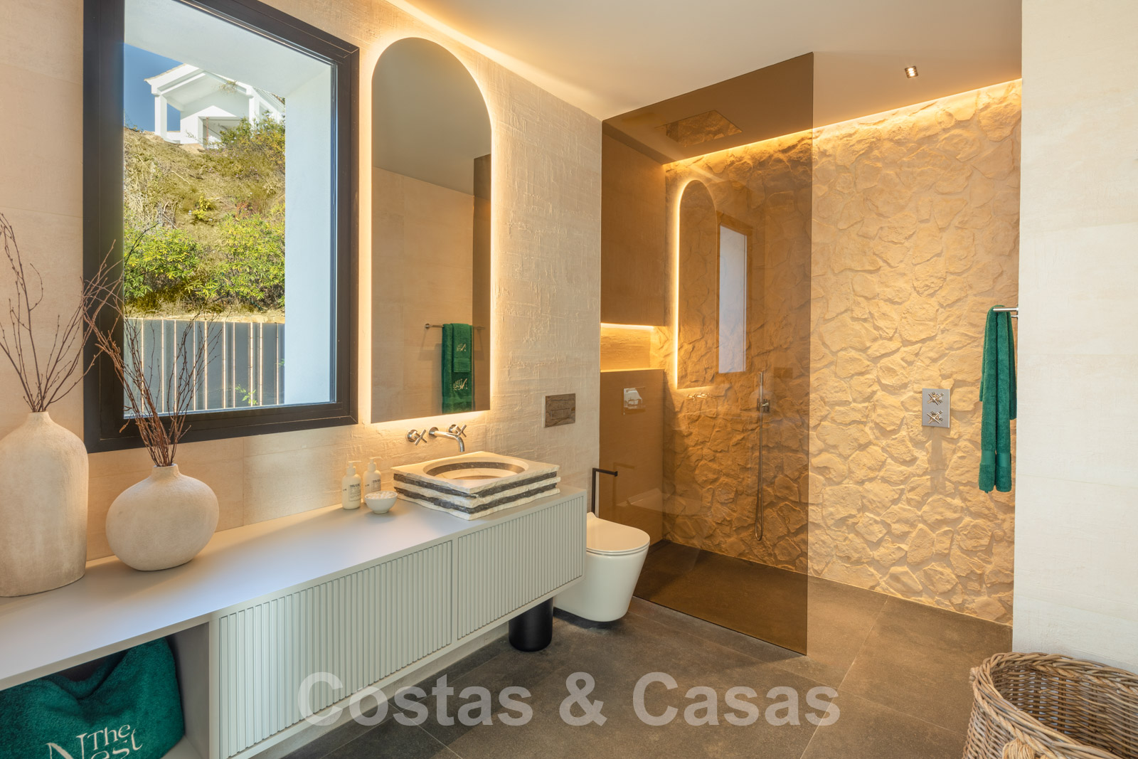 Situado en una posición elevada, en una zona residencial aislada y segura en las colinas de La Quinta, rodeado de vegetación. A poca distancia en coche de los servicios locales con una variedad de excelentes restaurantes y bares. El centro de Marbella y Puerto Banús se encuentran a 10 minutos en coche.