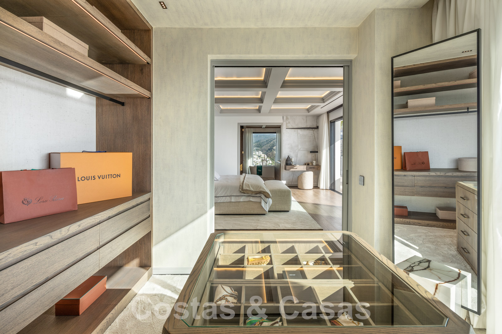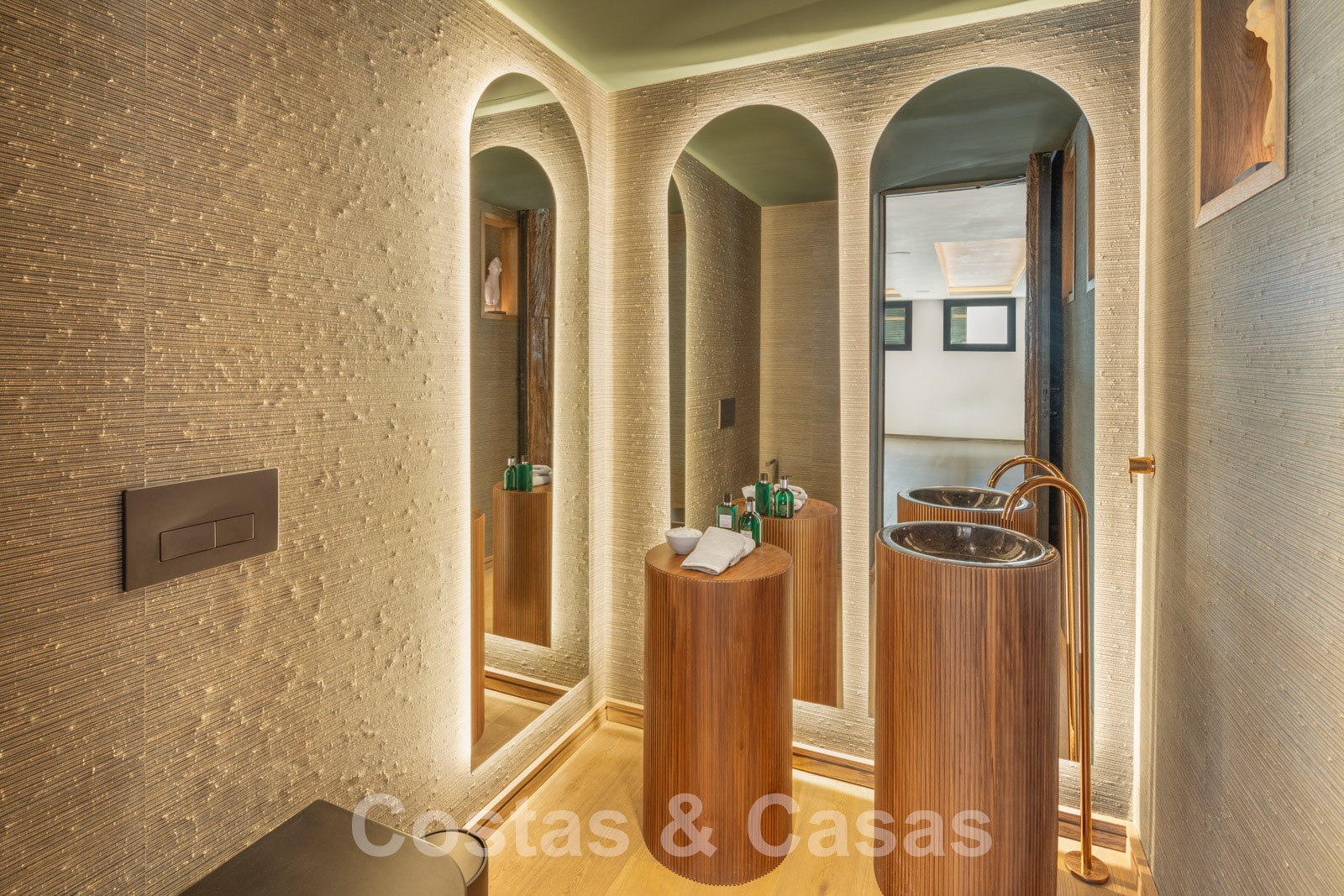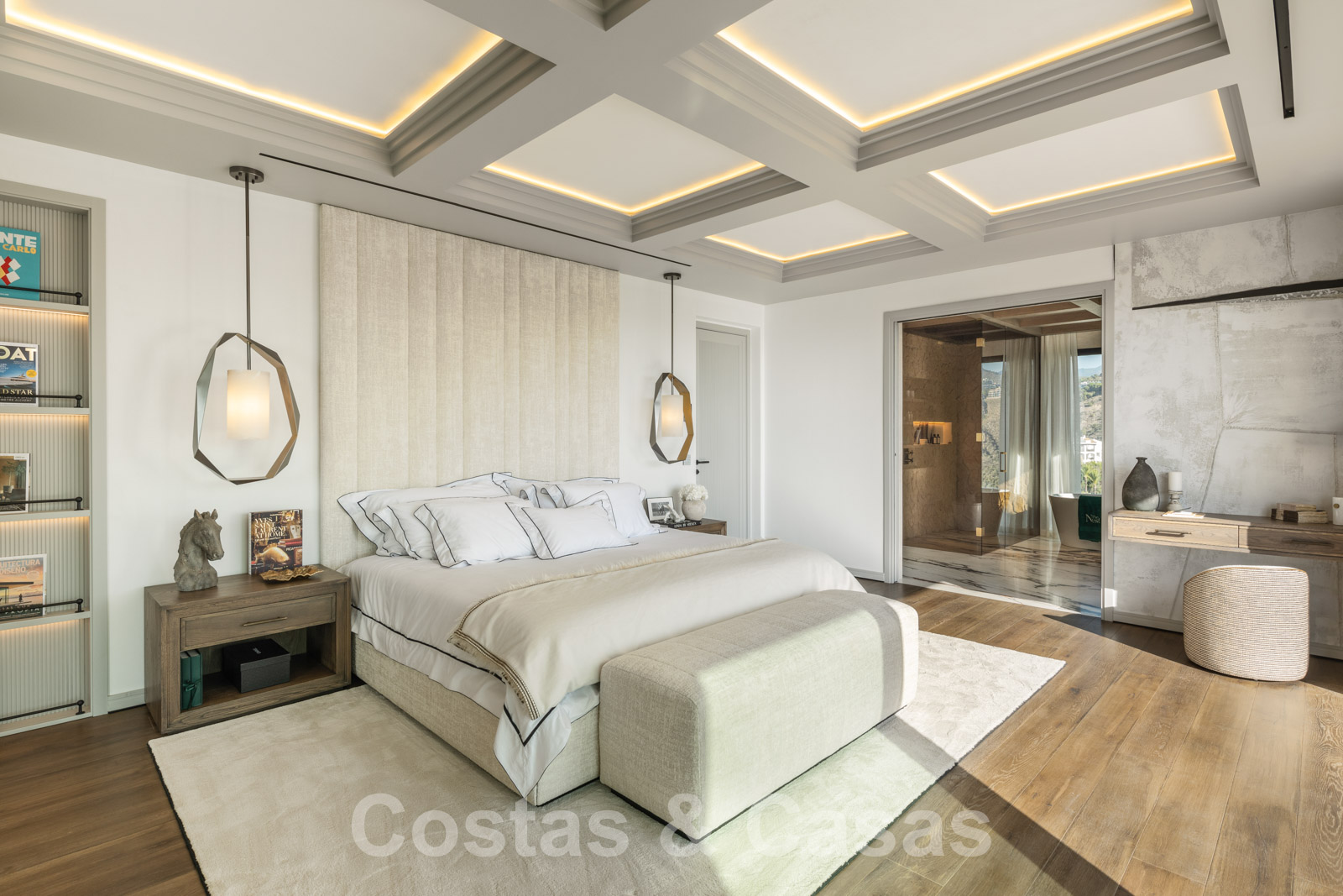 Villa independiente con arquitectura española atemporal. Utilizando materiales de primera clase con un ojo específico para un acabado refinado. Interior completamente a medida con tejidos de las marcas Dedar y Ralph Lauren. Una puerta motorizada da acceso al camino de entrada y cochera. Amplio hall de entrada con guardarropa y aseo de invitados. Una escalera arquitectónicamente iluminada conecta las 3 plantas residenciales. Sala de estar de planta abierta con sala de TV y comedor integrado. Cocina de diseño Clive Christian totalmente equipada con isla central de mármol. Gracias a las altas ventanas correderas con marcos empotrados, prácticamente todas las habitaciones disfrutan de una generosa iluminación. Amplia suite principal con suelos de madera, un lujoso cuarto de baño y vestidor. En la planta inferior: gimnasio totalmente equipado, zona de spa con hammam, ducha doble y aseo de invitados, bodega, zona recreativa con sala de TV, bar de vinos, sala de juegos y dormitorio de invitados en suite. Suelos de gres porcelánico (120x120cm) y parquet de roble. Trastero, lavadero. Garaje para 2 coches.