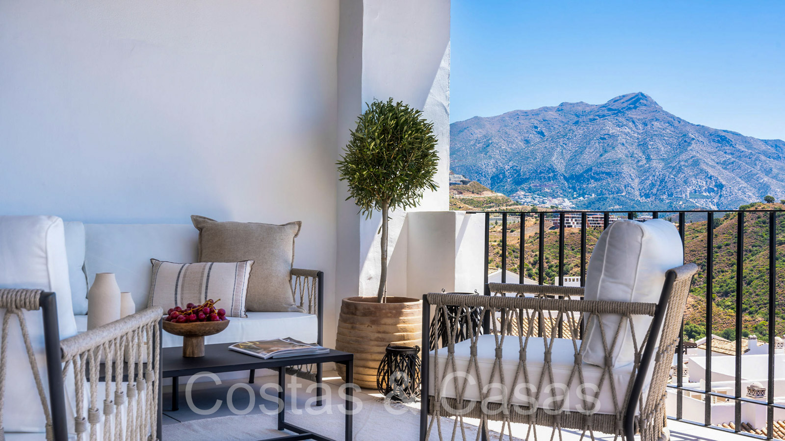 Amplio apartamento en “última planta” reformado con materiales de primera calidad. Orientación sur. Vistas al valle, al paisaje de montaña y al mar Mediterráneo. Una terraza semicubierta está equipada con un lounge y una zona de barbacoa. Diseñado con atención a un acabado superior. Las ventanas corredizas altas con marcos empotrados proporcionan un flujo perfecto entre los espacios interiores y exteriores y también generan abundante luz natural. Cómoda distribución para optimizar el espacio y la funcionalidad. Práctica cocina comedor, equipada con electrodomésticos de alta calidad y acabados elegantes. 3 dormitorios, 3 baños y aseo independiente. Suelos de madera de alta calidad en forma de espiga. Trastero. Aparcamiento privado para 1 coche.