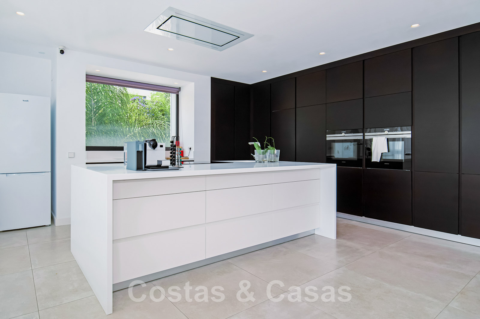 Cocina abierta de diseño, totalmente equipada y con isla de cocción.