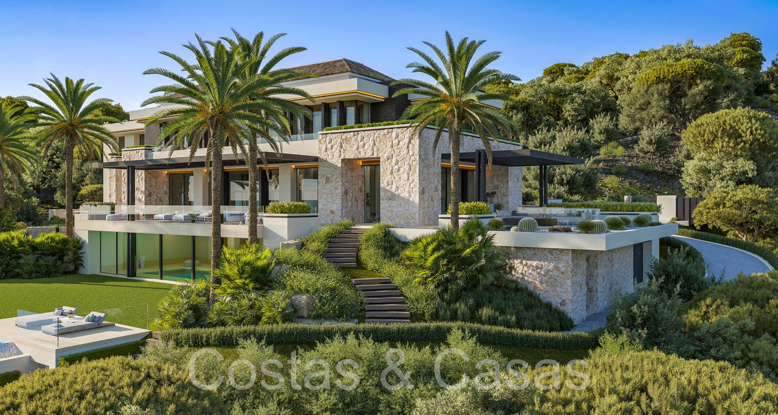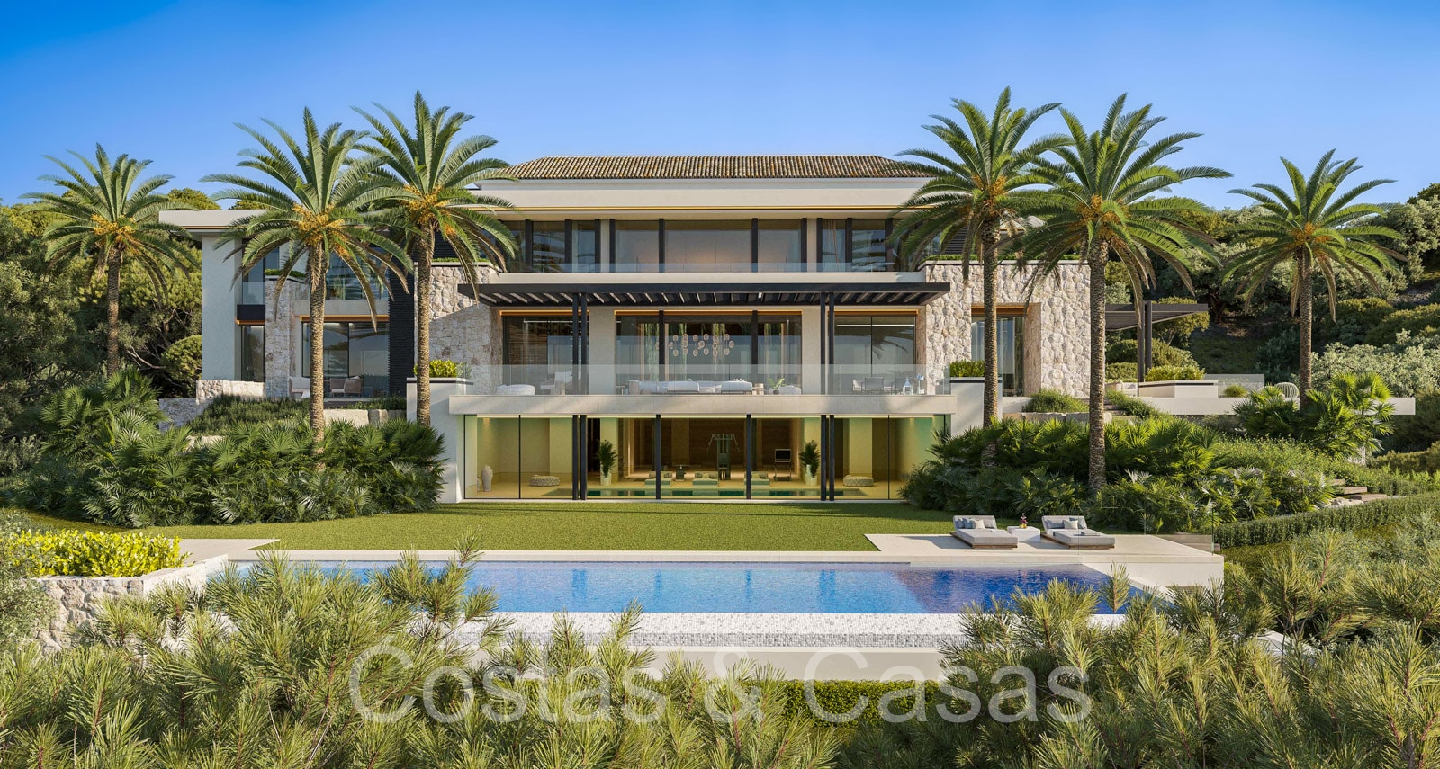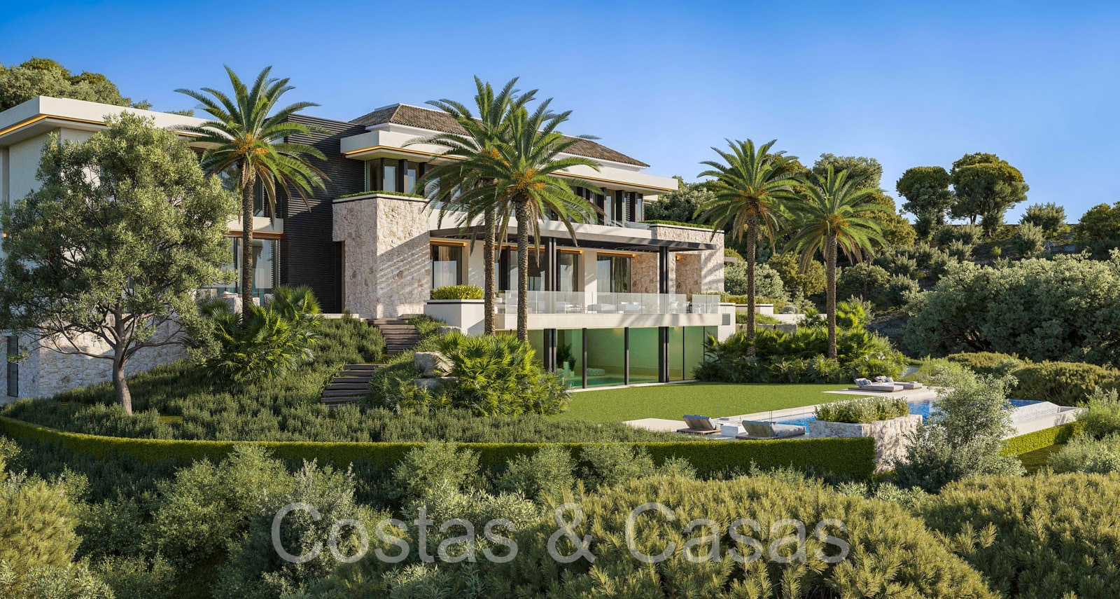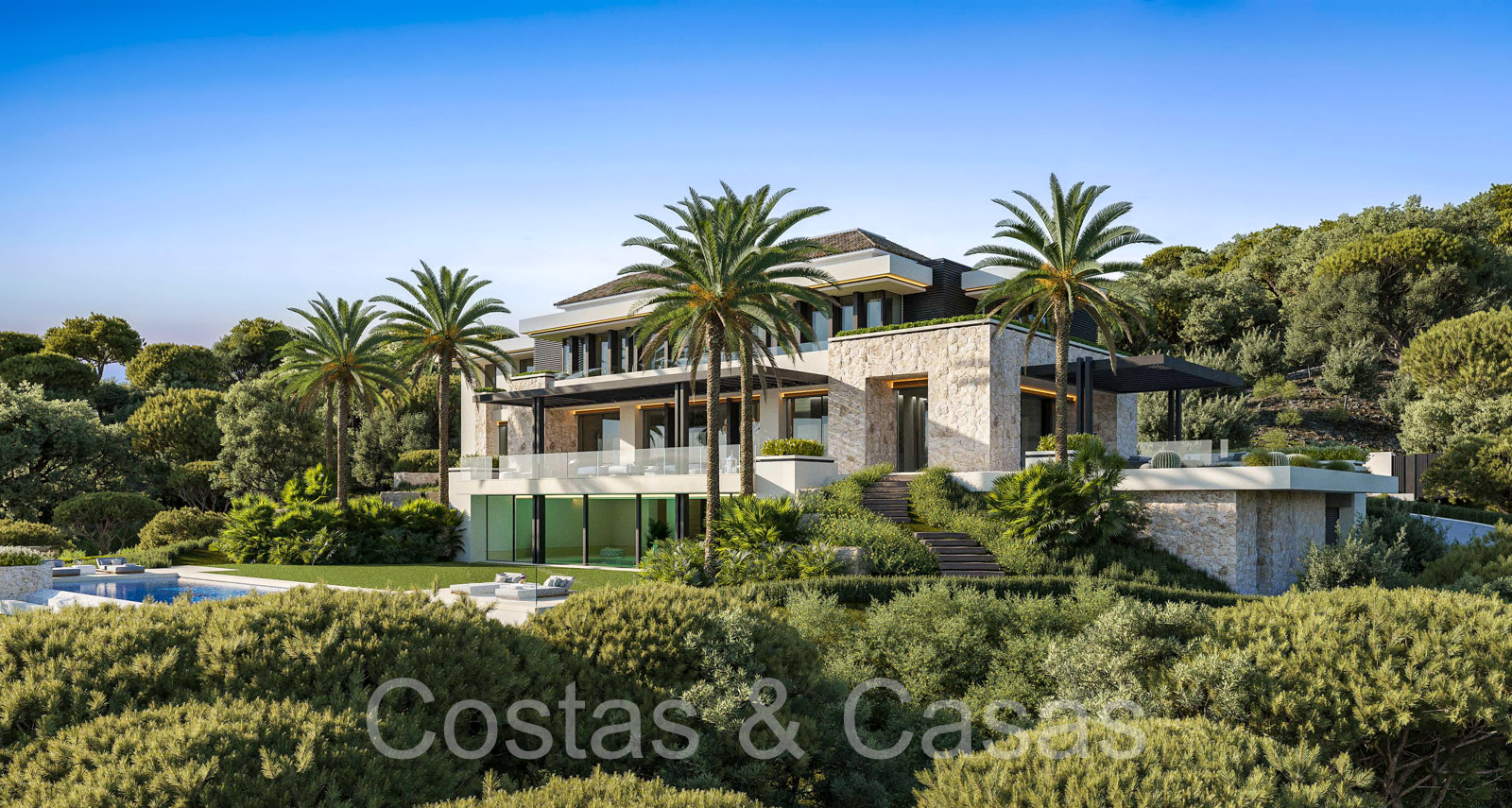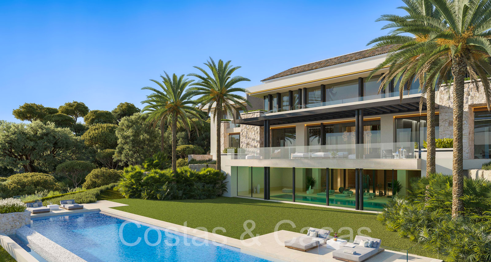 Lujosa villa independiente de estilo arquitectónico mediterráneo moderno. Diseñada según los más altos estándares del mercado y la tecnología más innovadora. Le damos la bienvenida en el vestíbulo de entrada superior y con carácter, con techo de doble altura. Los ventanales corredizos de suelo a techo en toda la villa proporcionan un interior muy luminoso. Múltiples áreas para sentarse donde podrá relajarse con amigos y familiares. Preciosa cocina de diseño de 62m2 con isla a medida. Esto está conectado 2ª cocina, la despensa y la entrada del personal. Cuarto de servicio. 8 dormitorios, 9 baños y 5 aseos independientes. Gimnasio equipado con ducha independiente y zona para cambiarse. Instalaciones de spa con piscina cubierta, sauna finlandesa, baño de vapor e instalaciones lounge. 2da sala de televisión. Sala multifuncional con salón de TV y zona de juegos. Casa de invitados interior con acceso privado, amueblada con un dormitorio, baño, salón con cocina y comedor. Áreas técnicas. Cuarto de lavado y trastero. Garaje interior para 4 coches. Aparcamiento privado adicional para 2 coches. Una plataforma giratoria en la entrada de la villa para facilitar el aparcamiento.