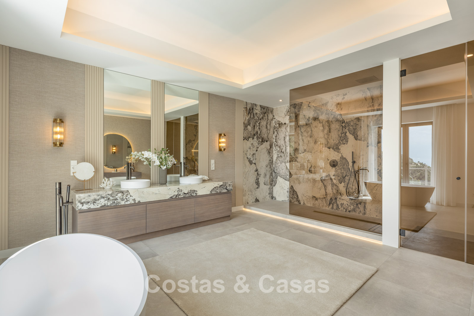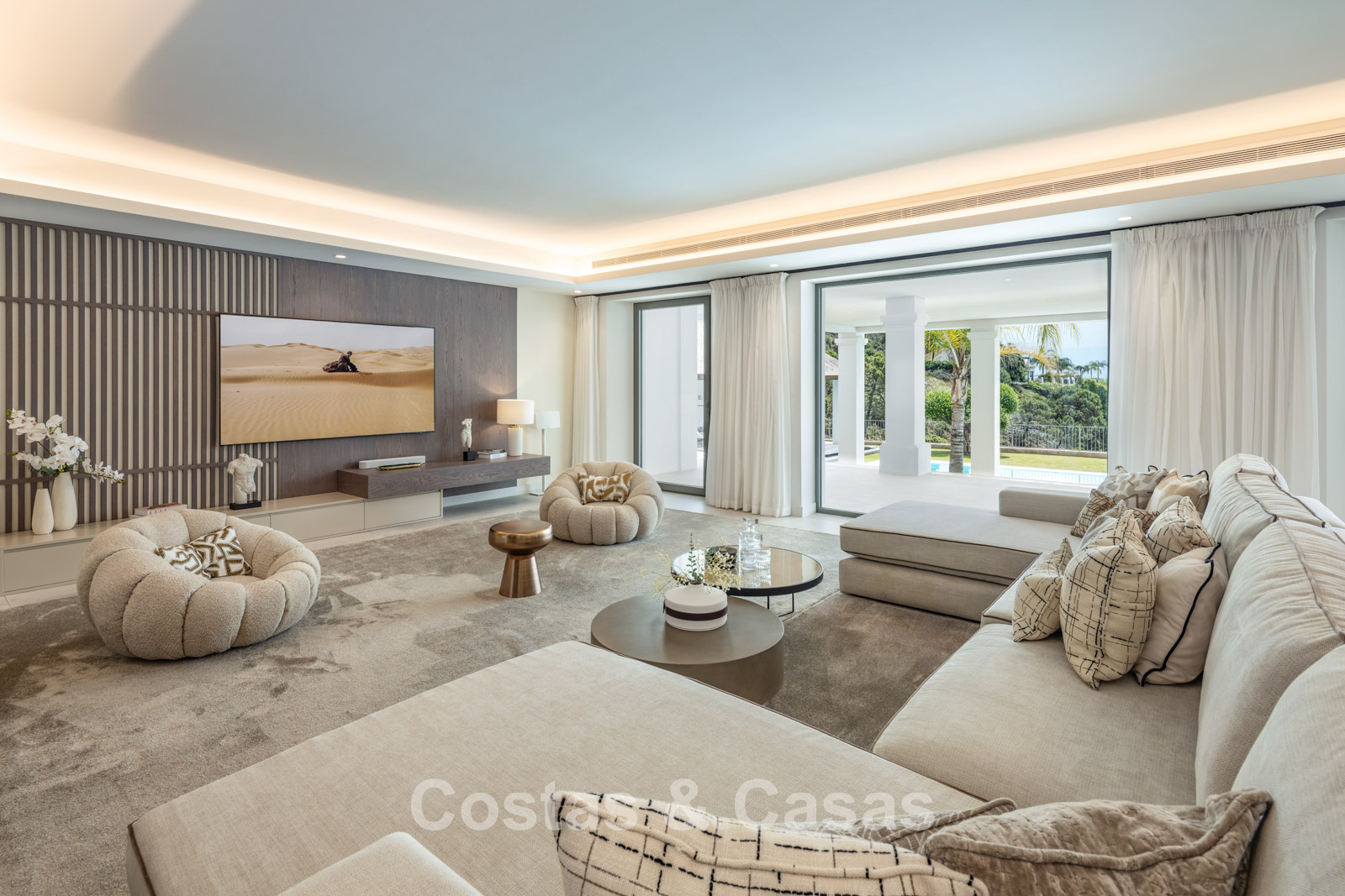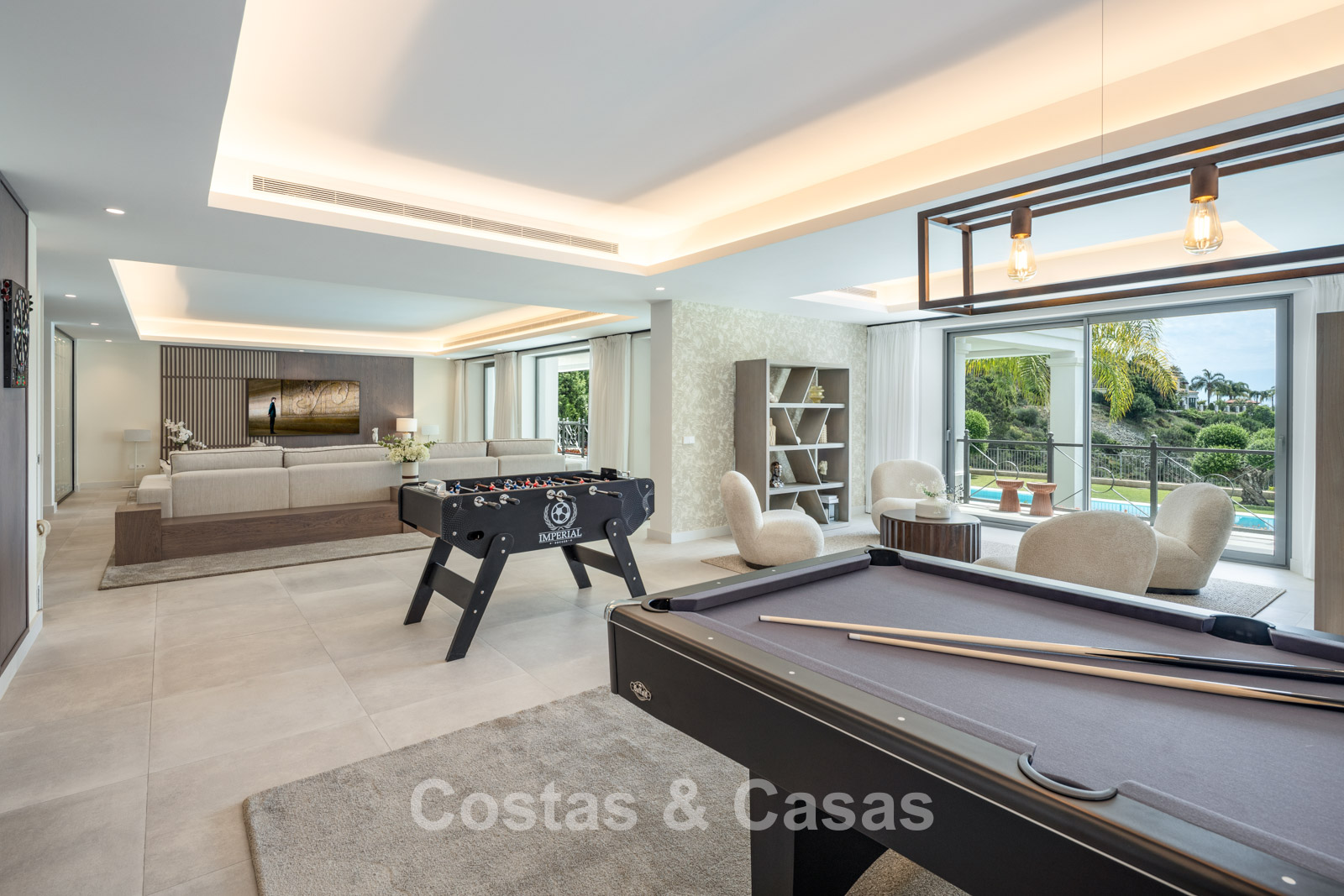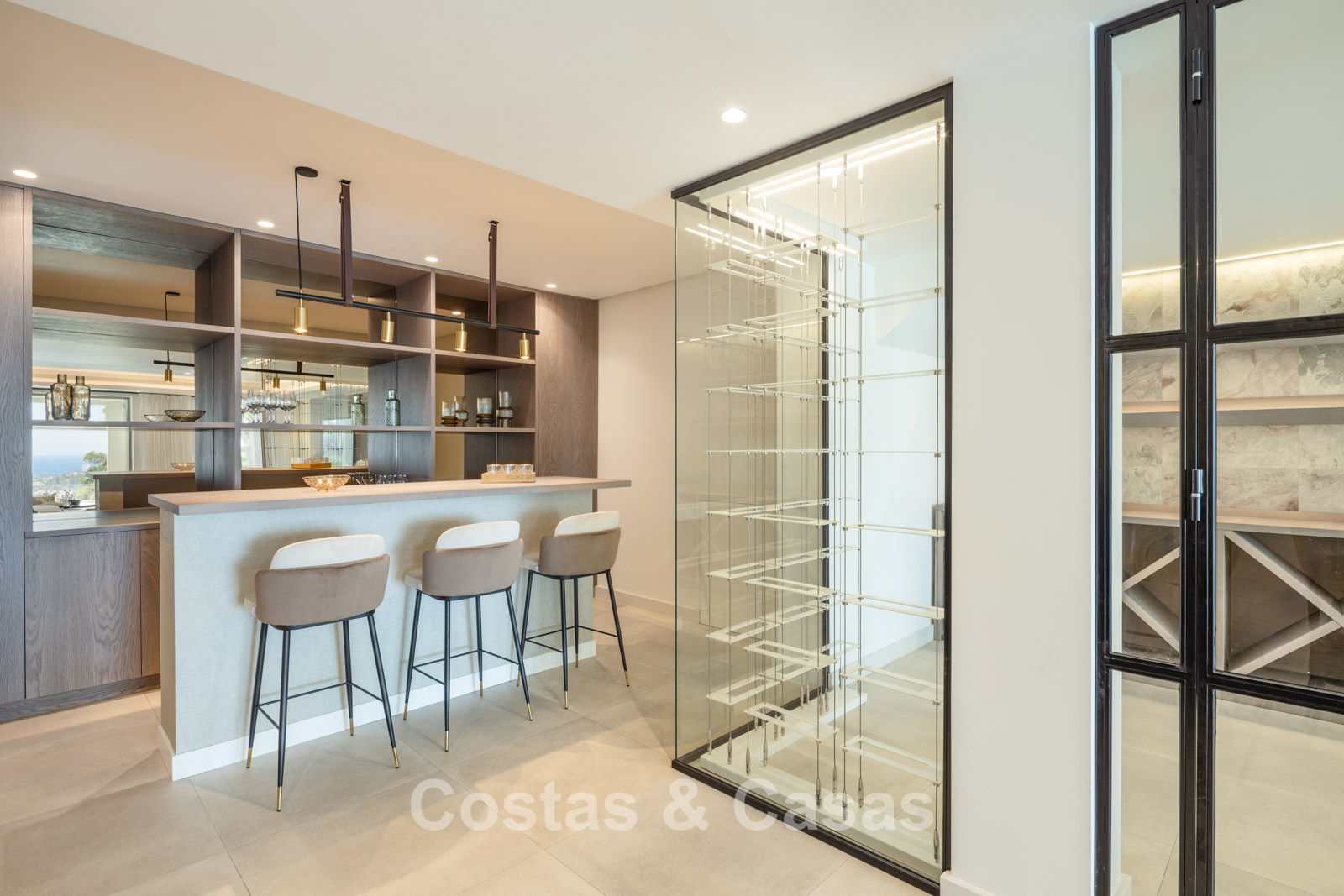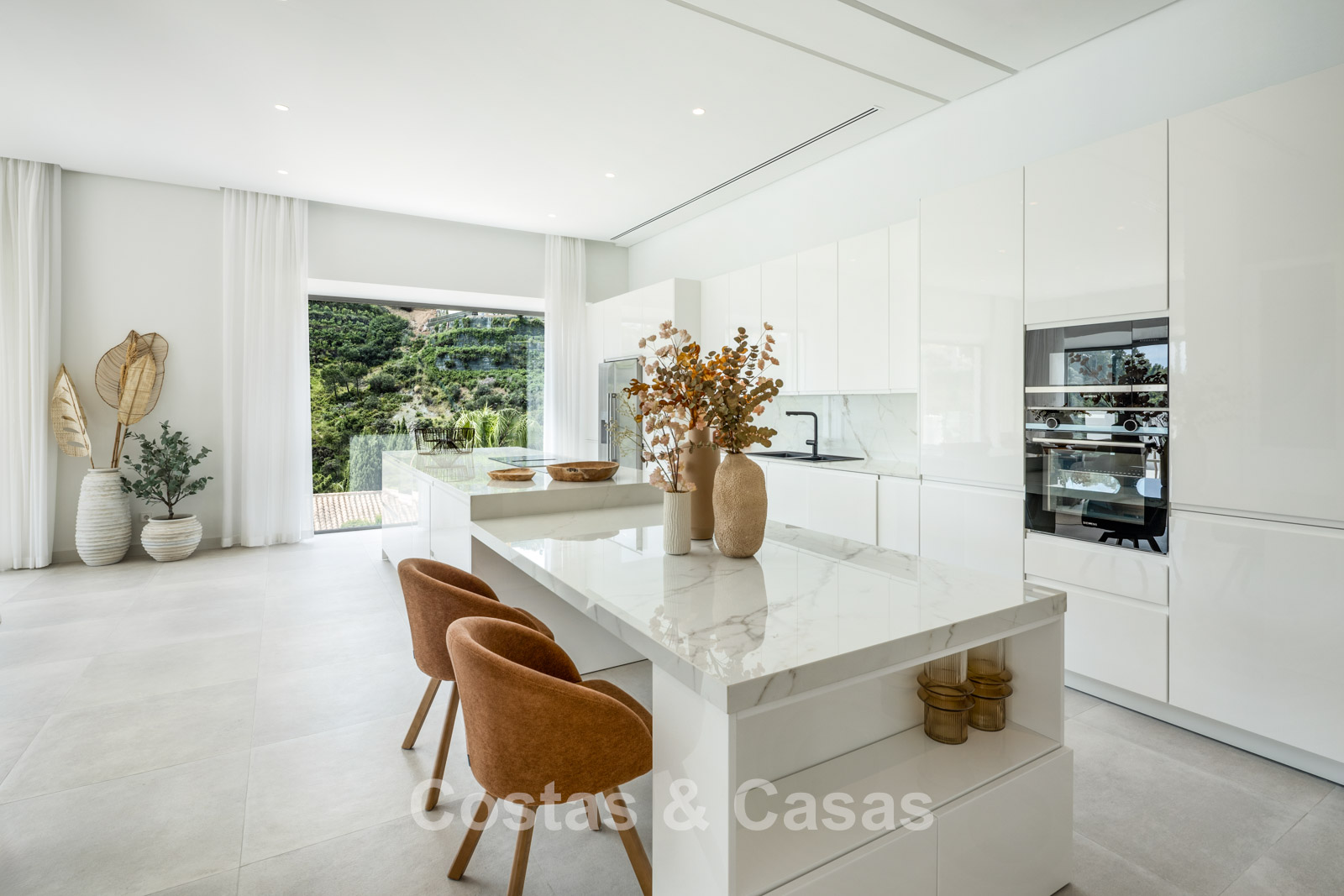 Villa independiente con una refinada combinación de arquitectura andaluza moderna y tradicional. Diseñada con excelente artesanía, materiales sostenibles y un diseño a medida. El impresionante recibidor tiene techos de doble altura. Las altas ventanas crean una transición fluida entre el interior y el exterior, permitiendo la entrada de abundante luz natural. El elegante y moderno interior irradia un diseño de lujo, con materiales refinados y toques elegantes. Un amplio espacio habitable combina una elegante sala de estar con un moderno comedor. La cocina, hecha a medida, está totalmente equipada con electrodomésticos Siemens y cuenta con una elegante isla de mármol con comedor integrado. Un segundo comedor adyacente. Un total de 5 dormitorios, 7 baños y 2 aseos independientes. La planta inferior, con acceso directo desde la piscina, se divide en dos alas independientes. El ala este es sinónimo de relajación y bienestar. Encontrará una piscina cubierta climatizada, un spa, un gimnasio totalmente equipado y una sala de masajes y tratamientos de bienestar. El ala oeste está completamente dedicada al entretenimiento, incluyendo un cine privado, una sala de juegos o relajación, un elegante bar, una bodega y diversas opciones de almacenamiento. Lavadero. Trastero. Cuarto técnico. Suelos de madera gris. Garaje interior para 2 coches. Aparcamiento adicional en la parcela para más de 4 coches.
