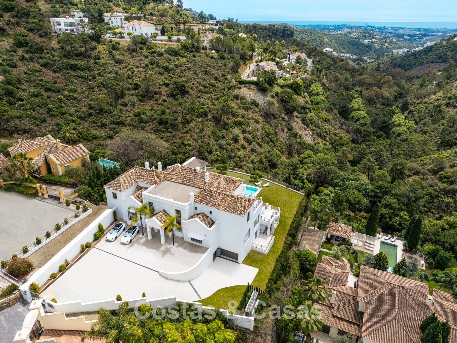 Esta propiedad se encuentra en una tranquila zona residencial en las colinas de Benahavís, dentro de la exclusiva y segura urbanización de El Madroñal. El Madroñal ofrece un oasis de paz y privacidad, rodeado de naturaleza, a menos de 10 minutos en coche de San Pedro, Puerto Banús y el mar Mediterráneo. Servicios diarios como supermercados, restaurantes, bar, panadería y carnicería se encuentran a 3 minutos en coche. El pintoresco pueblo de Benahavís, a solo 10 minutos en coche, es conocido como la joya culinaria de la Costa del Sol, con una impresionante concentración de restaurantes de alta calidad. Además, hay numerosos y acogedores bares de tapas y bodegas con mucho ambiente. Para los amantes del golf, la ubicación es perfecta: el famoso Valle del Golf de Nueva Andalucía y prestigiosos campos de golf como Los Arqueros y El Higueral se encuentran a poca distancia.